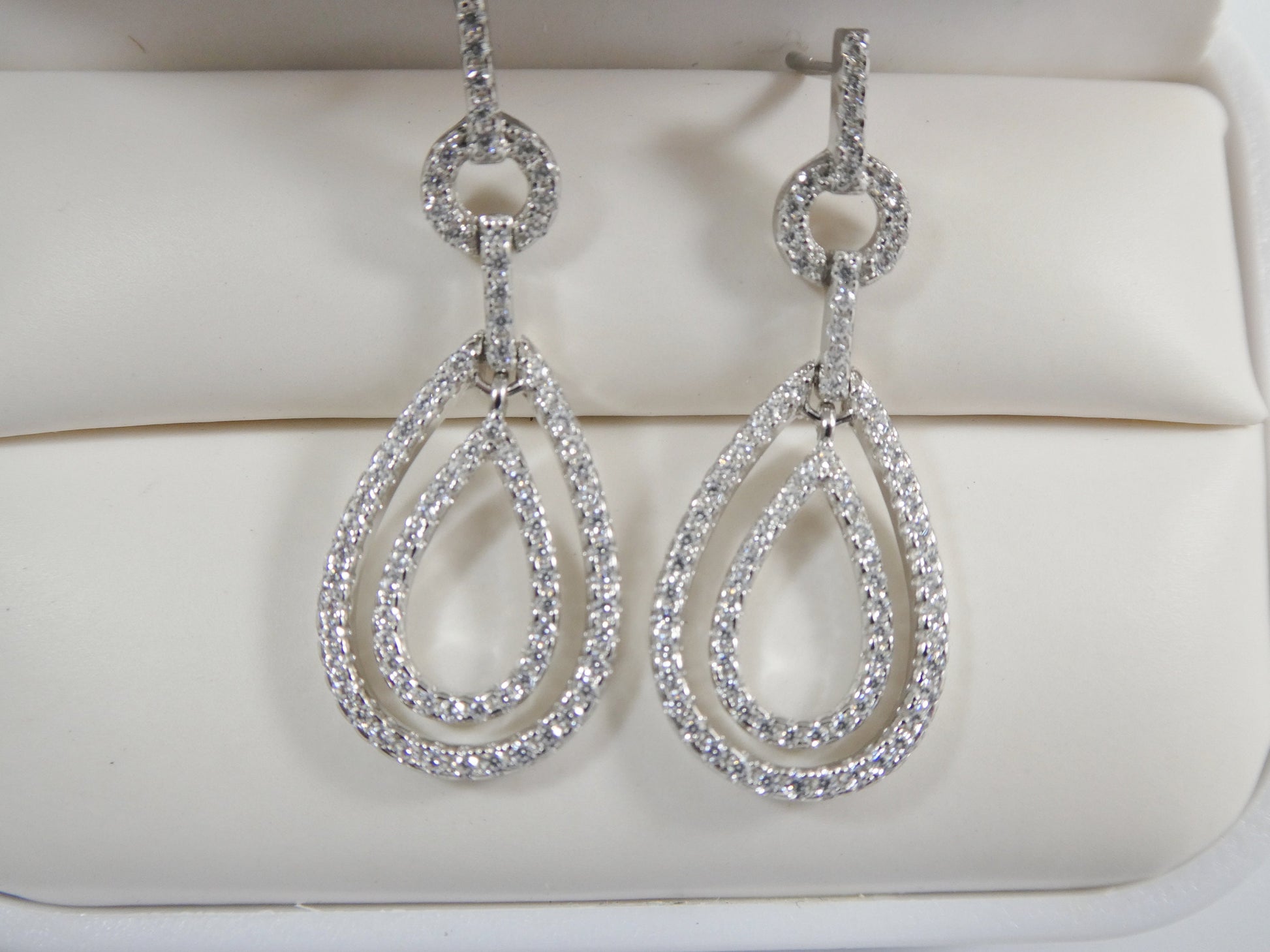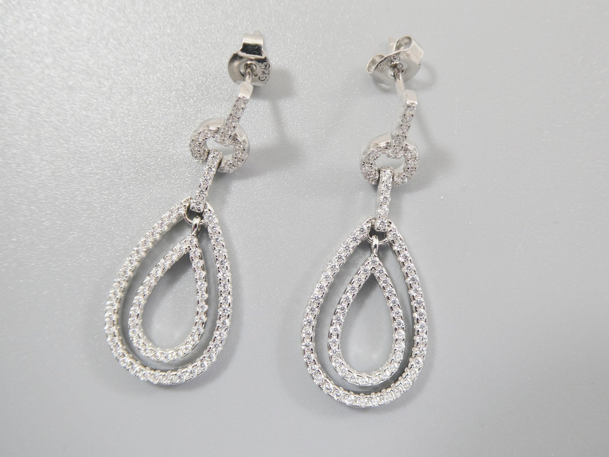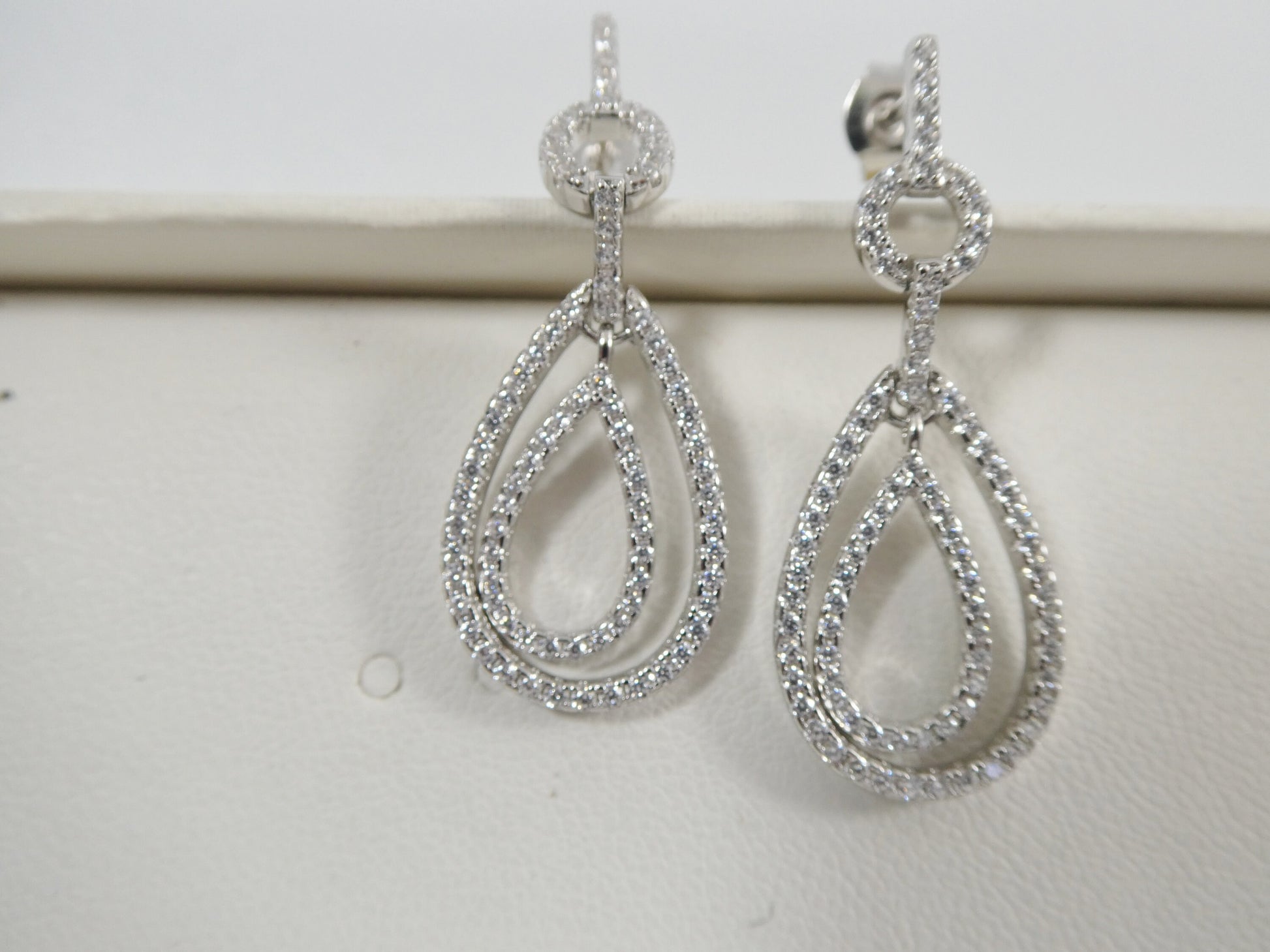 BRAND NEW NEW RELEASE REAL 925 STERLING SILVER 14K WHITE GOLD COLOR TONE FINISH DROP EARRING / WHITE GOLD FINISH RODIUM PLATED FOR LASTING OVER HIGH QUALITY HIGH POLISH GREAT PRICE AAA SHINY CUBIC ZIRCONIA STONE LUXURY ATTREACTIVE LOOK COME IN NICE GIFT BOX MAKE IT GREAT GIFT FOR ANY OCCASION