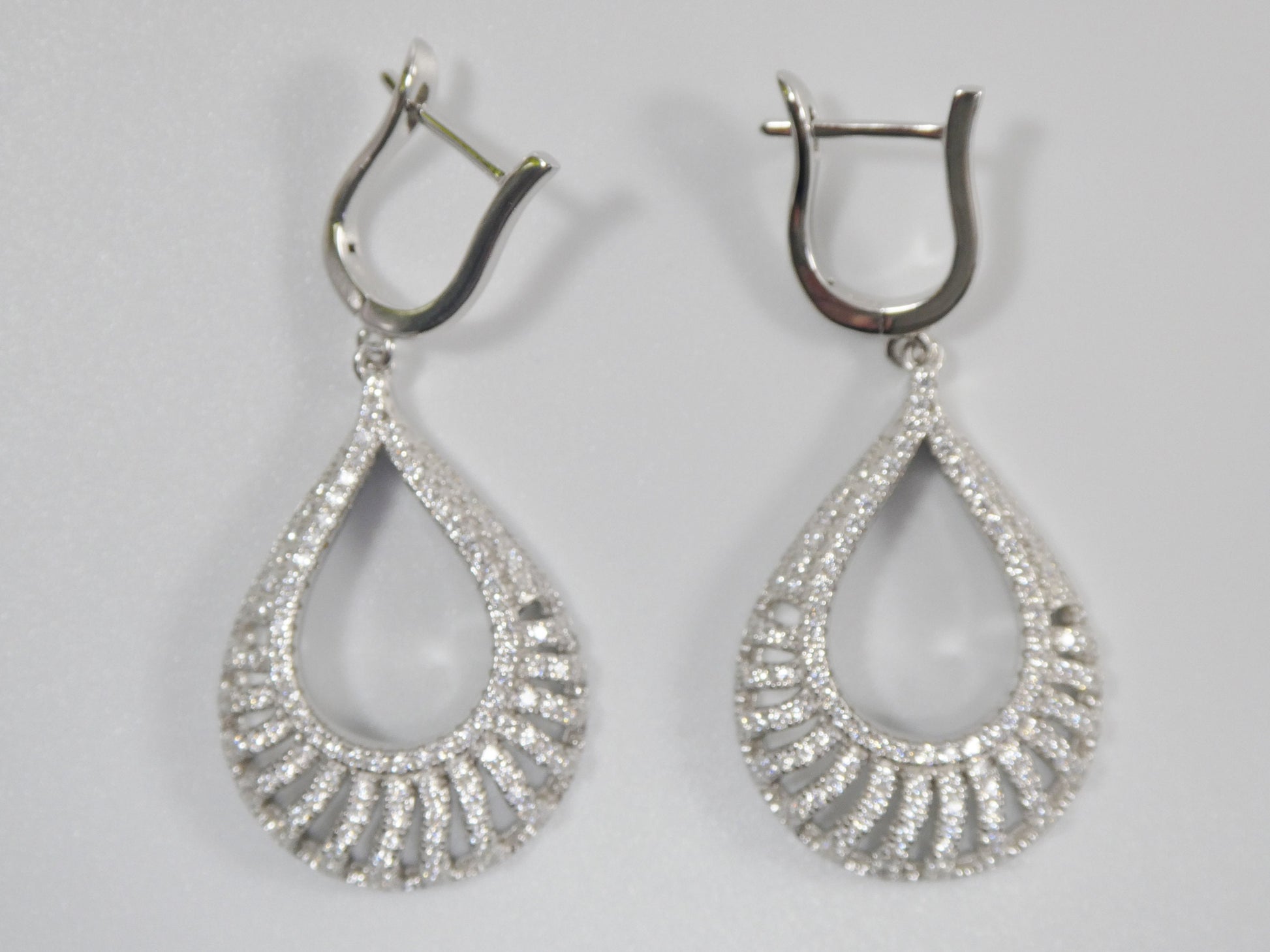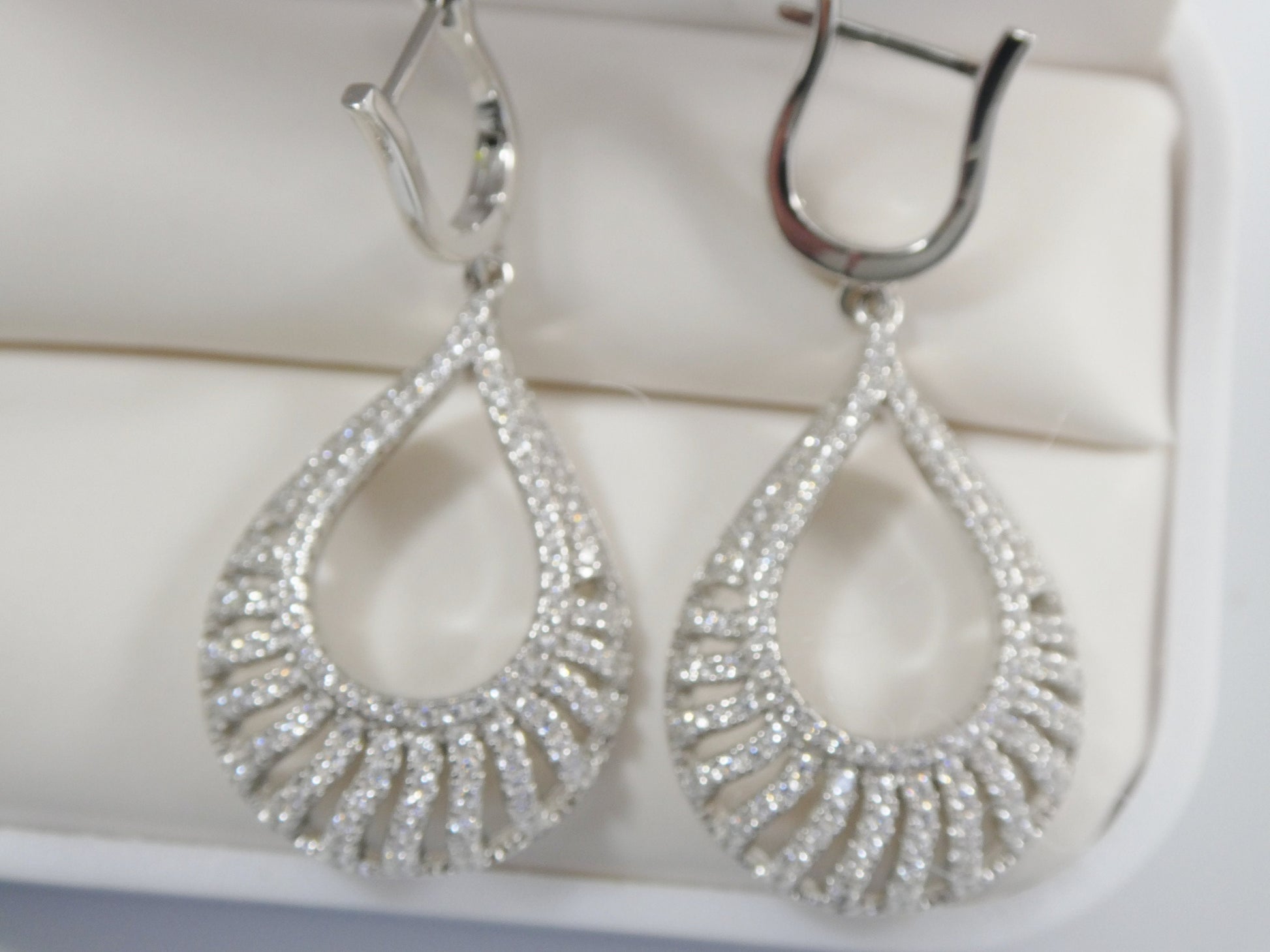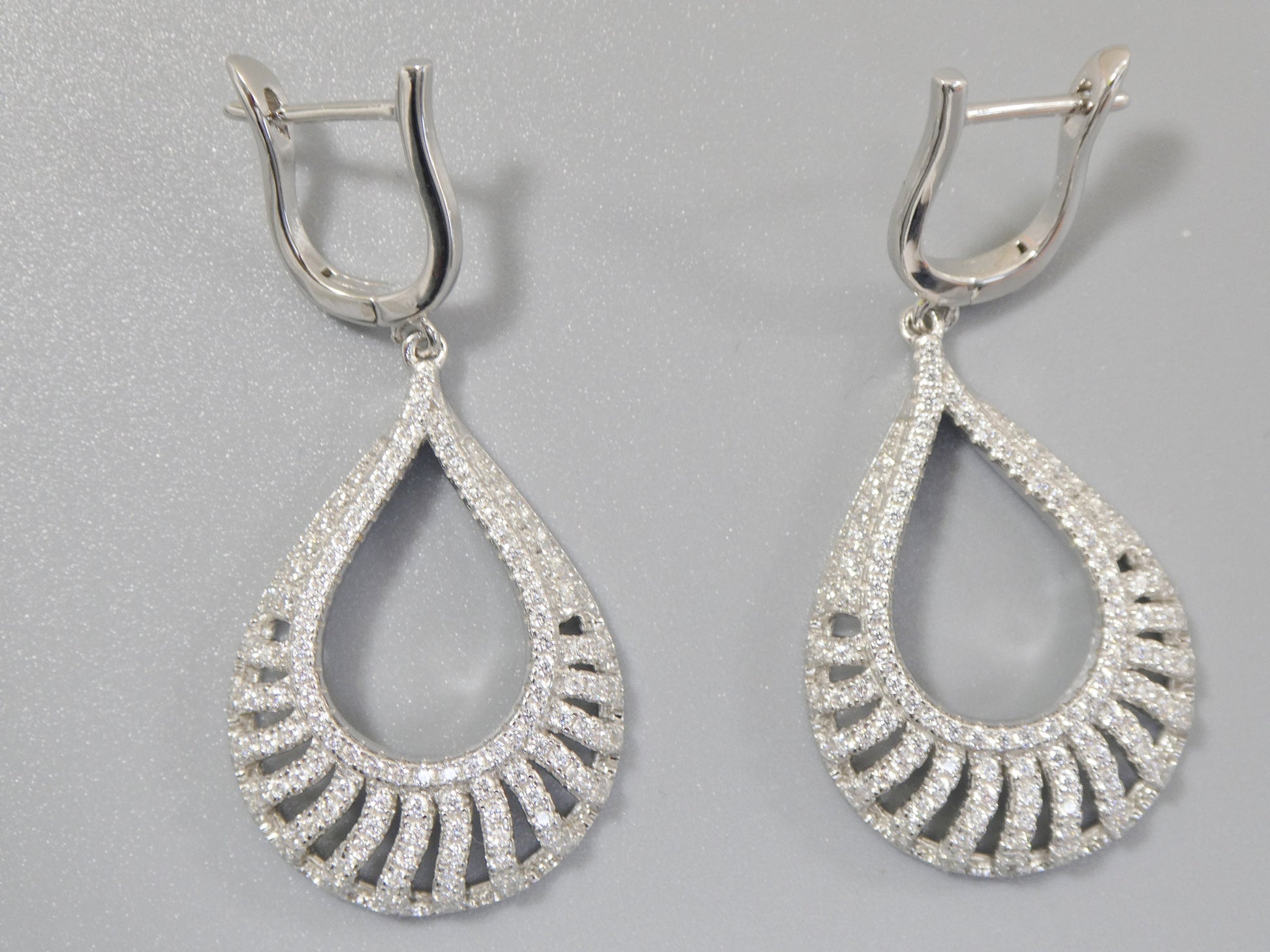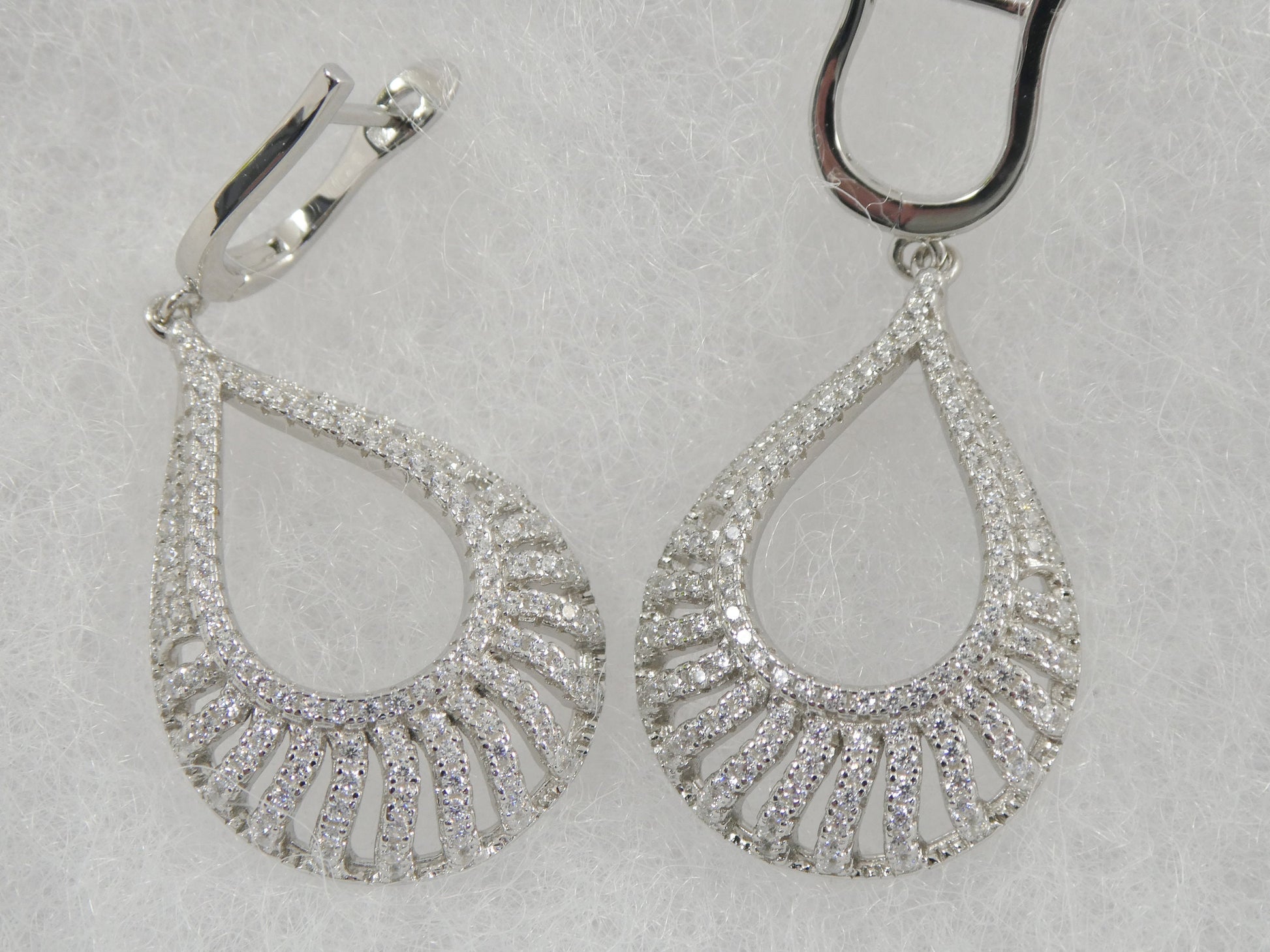 real 925 sterling silver micro pave setting 14k white gold color finish drop earring