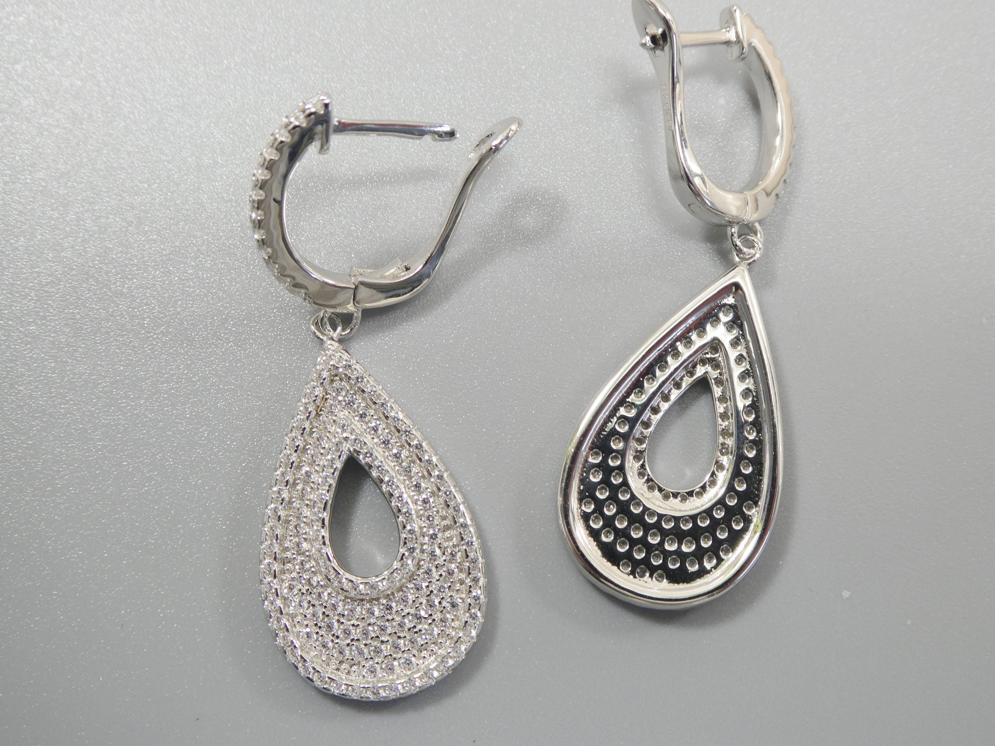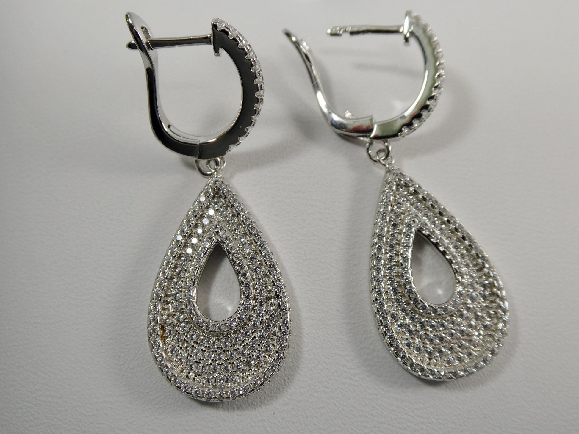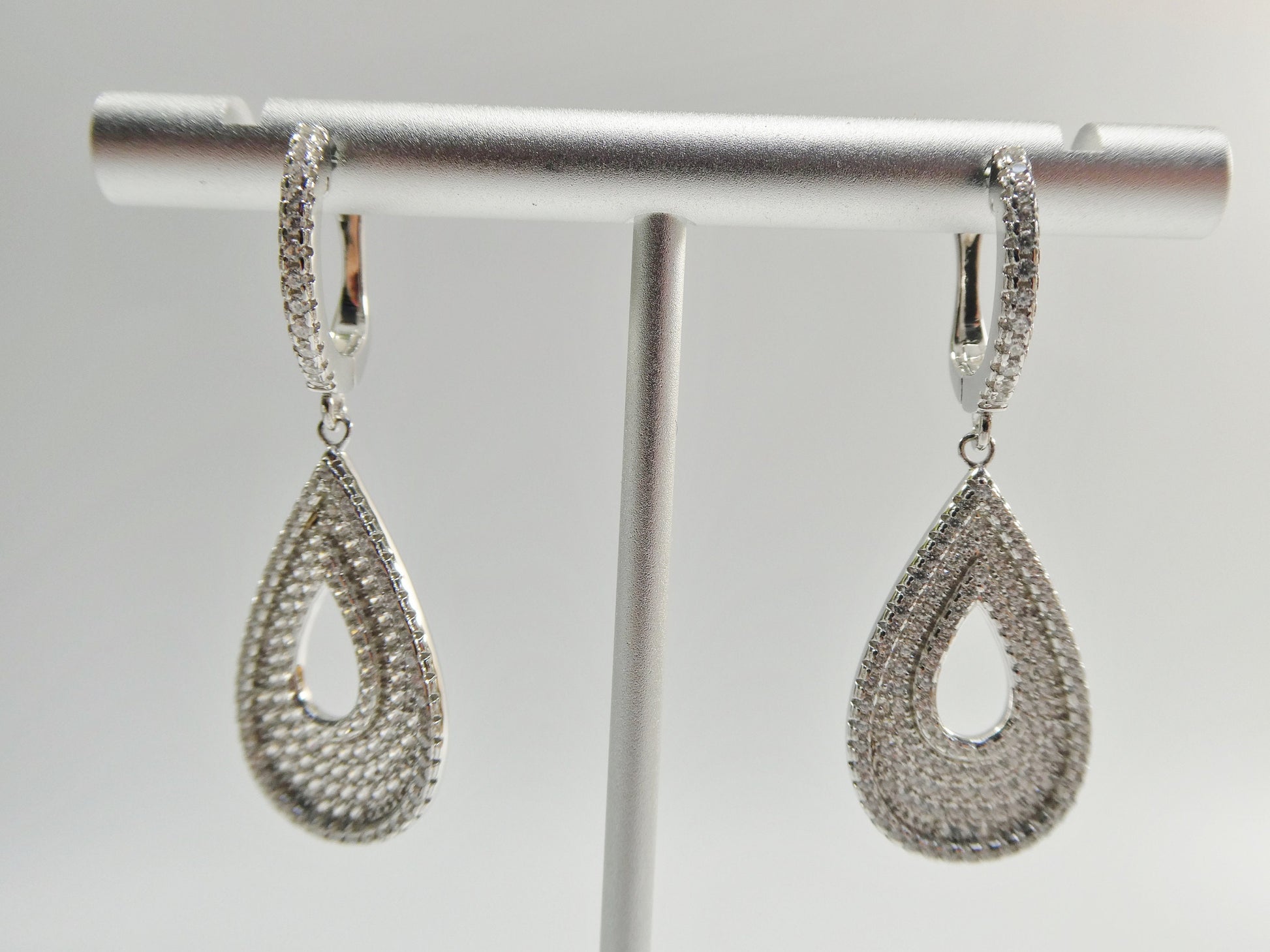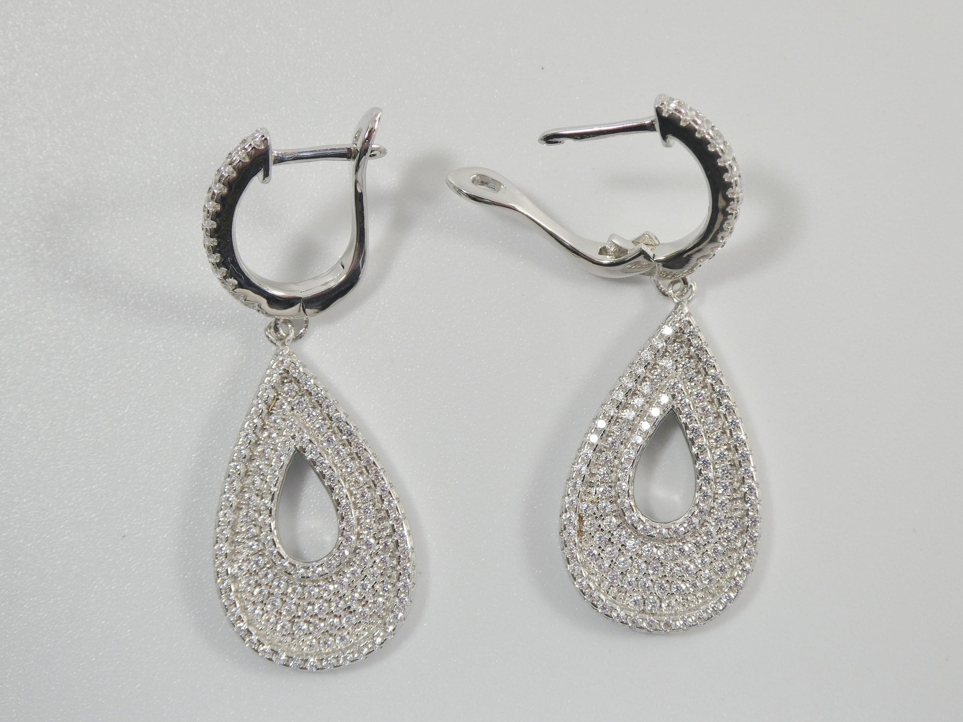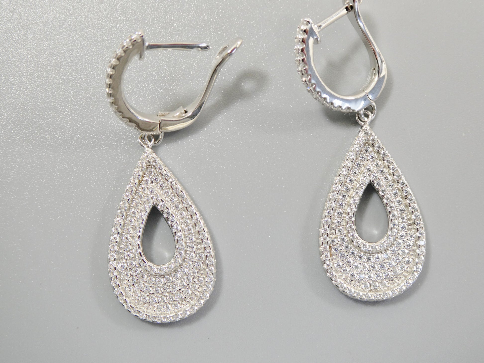 real 925 sterling silver micro pave setting 14k white gold color finish drop earring