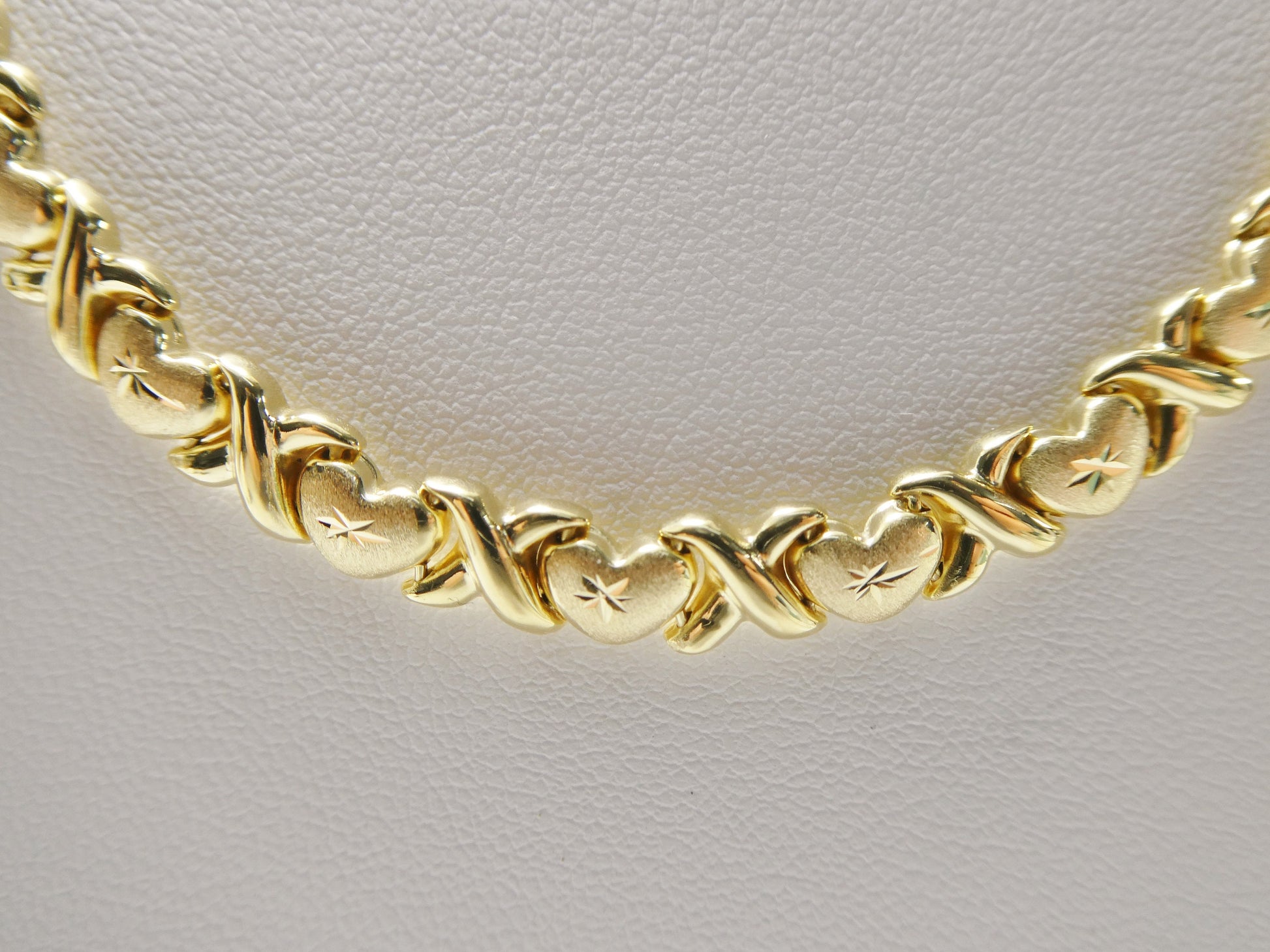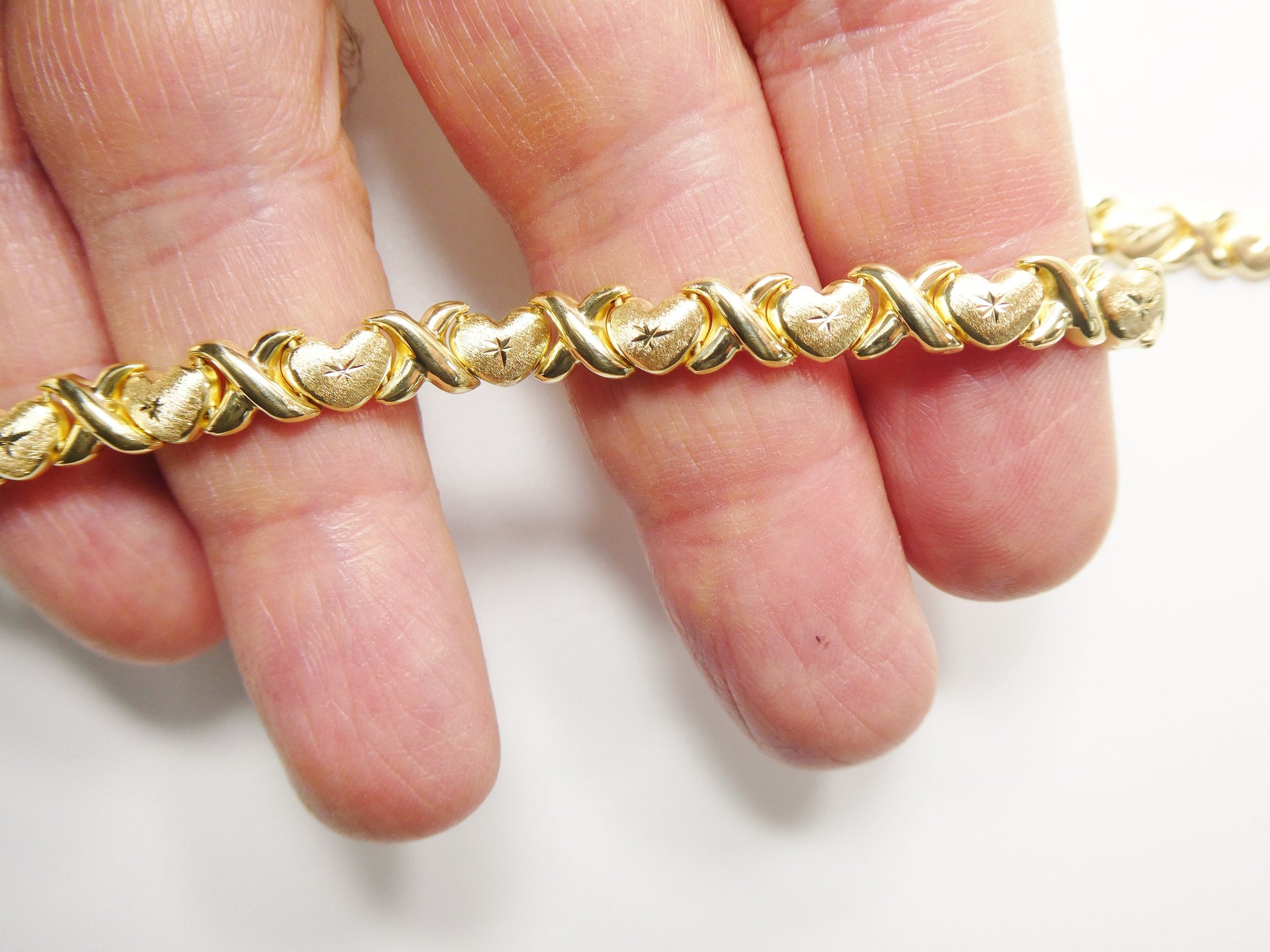 REAL 925 STERLING SILVER MINI XO HEART HUGS AND KISSES SET NECKLACE AND BRACELET 14K GOLD YELLOW FINISH 17 INCH NECKLACE 7 INCH BRACELET AND COME IN 20 INCH NECKLACE GREAT FINISH GREAT PRICE