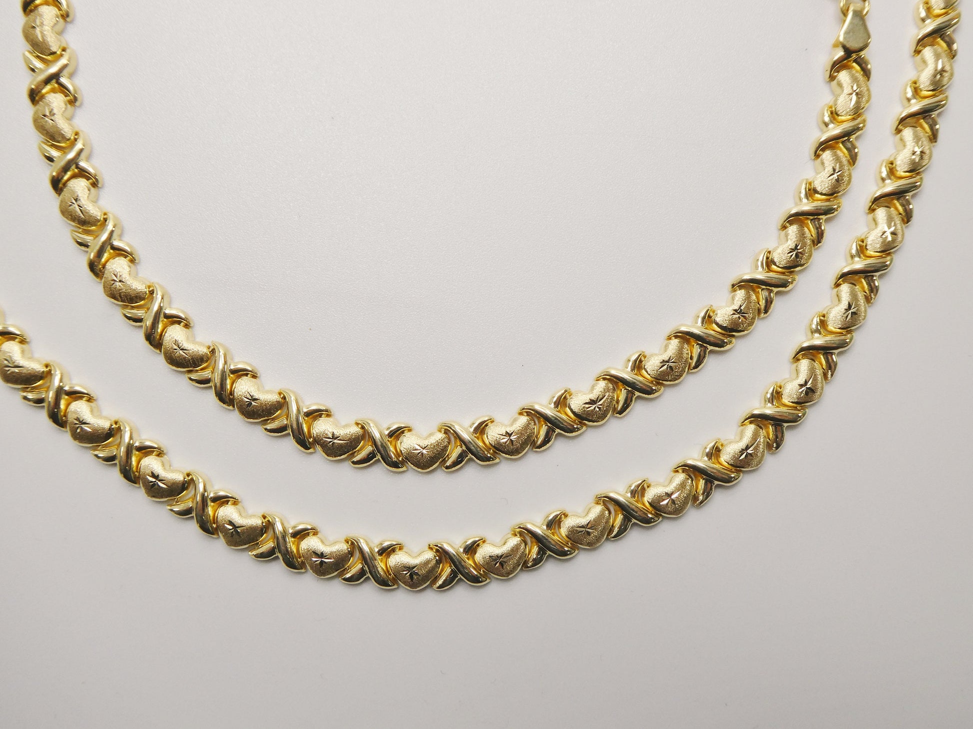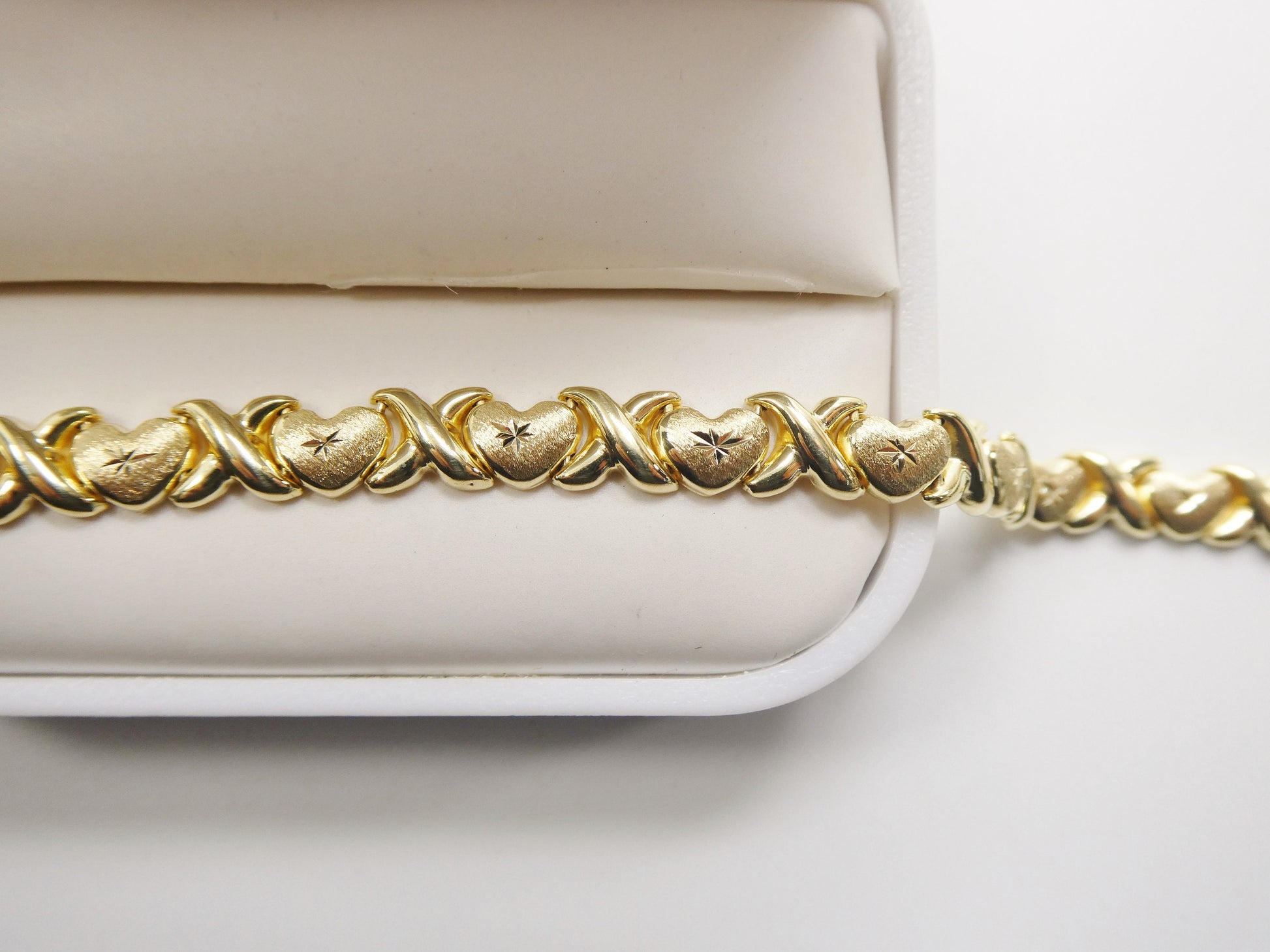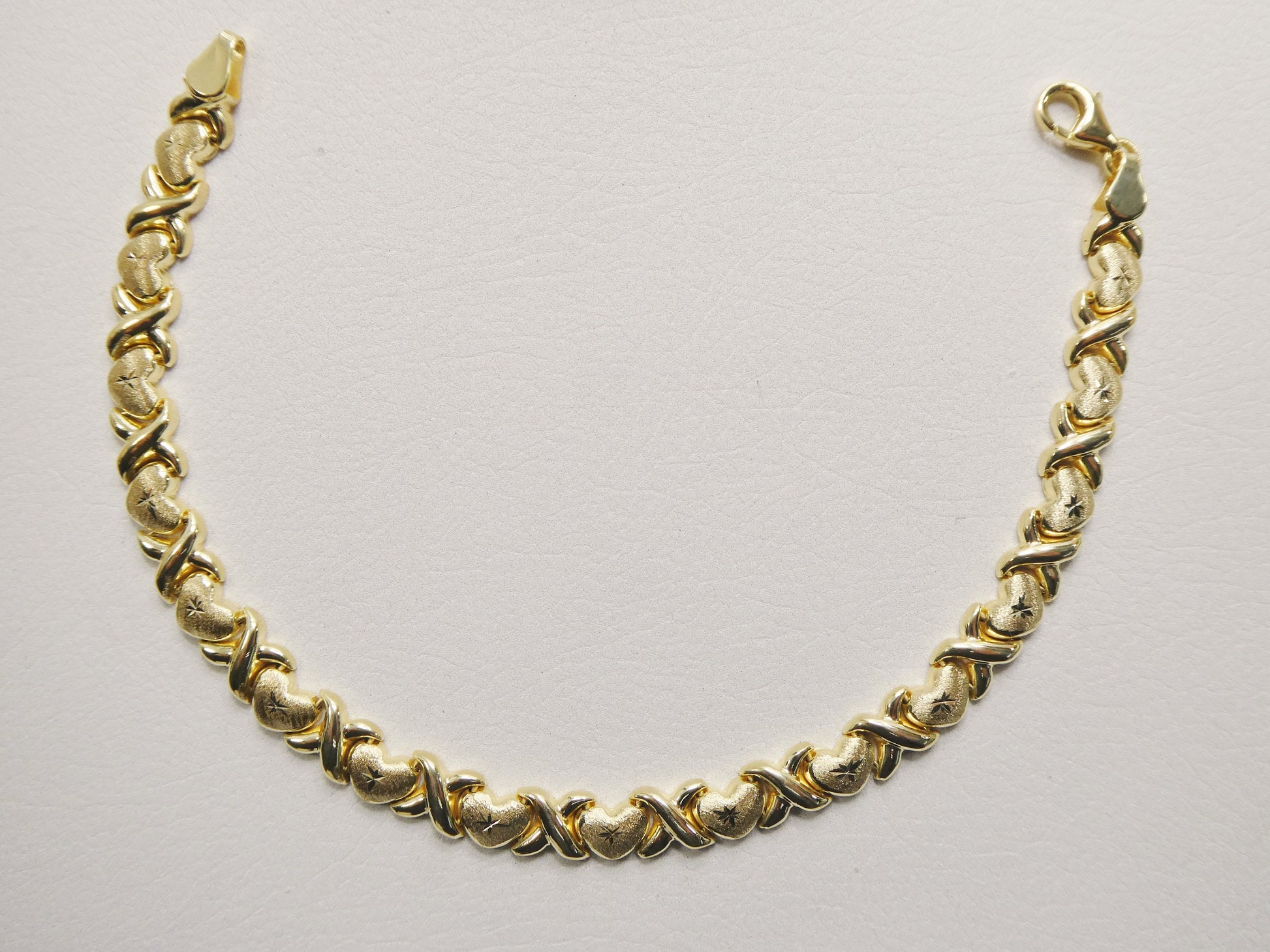 real 925 sterling silver mini xo heart hugs and kisses stampato set necklace and bracelet 14k gold color finish