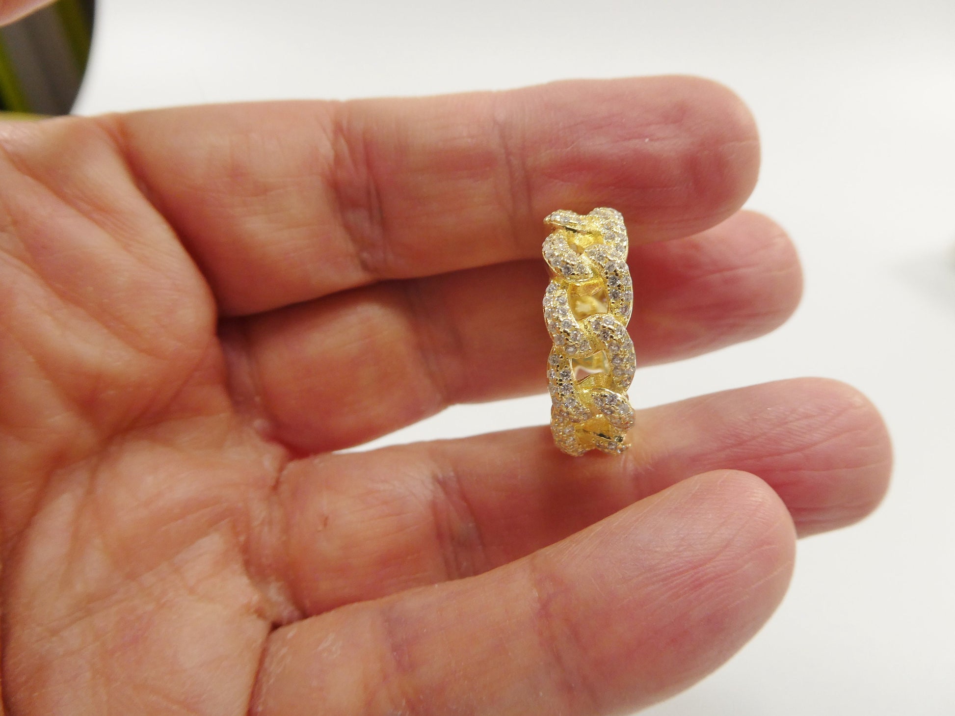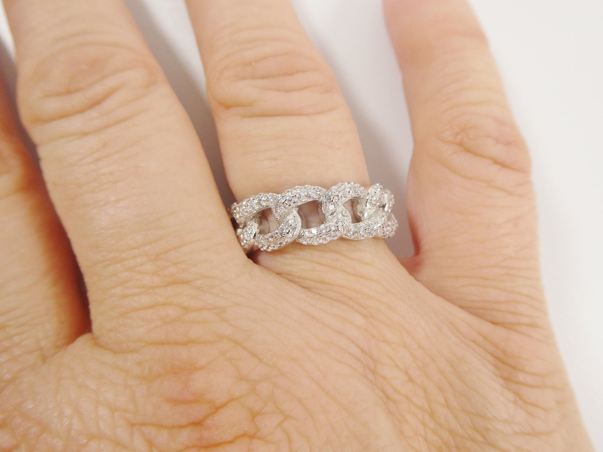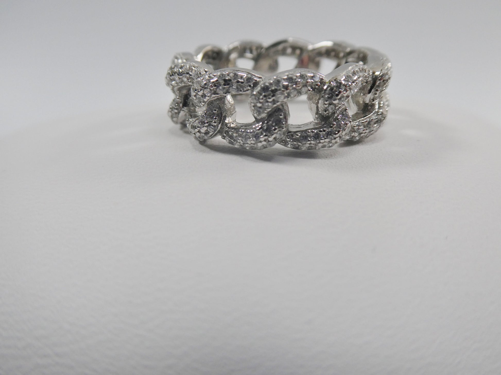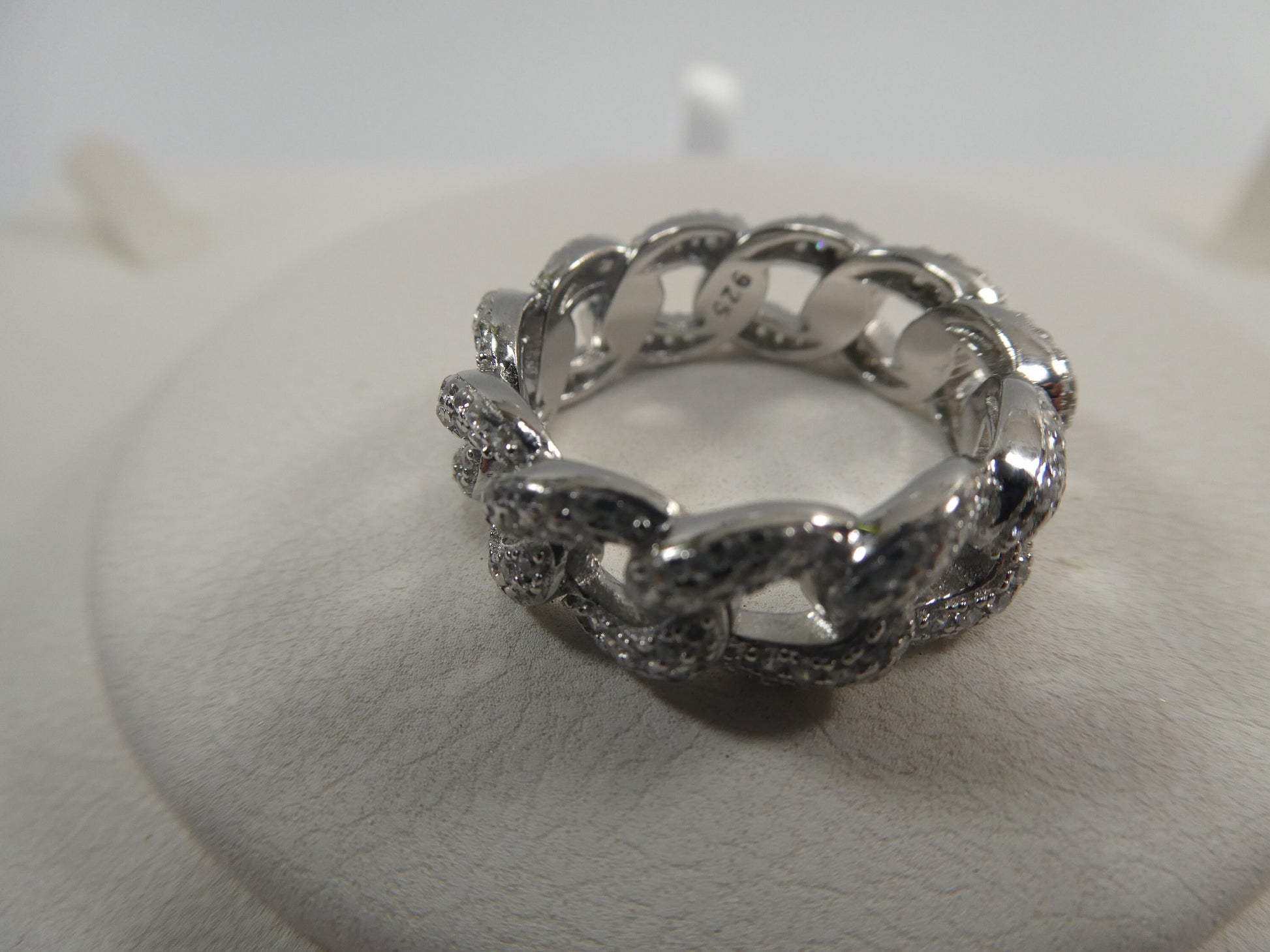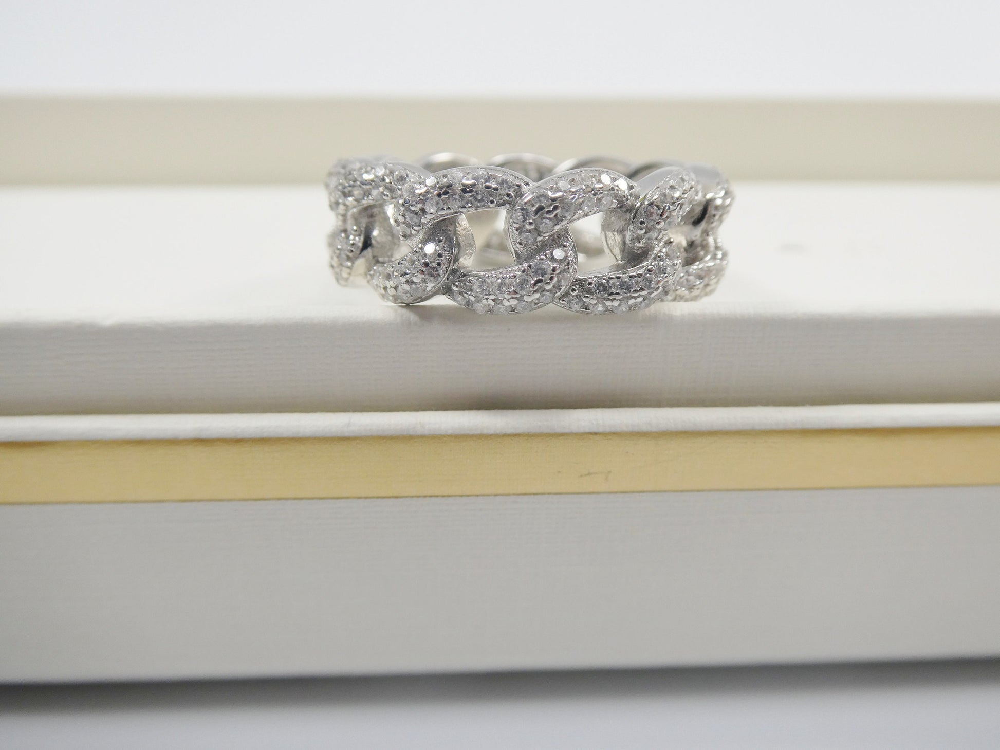 real 925 sterling silver Monaco curb link full icy prong setting ladies ring