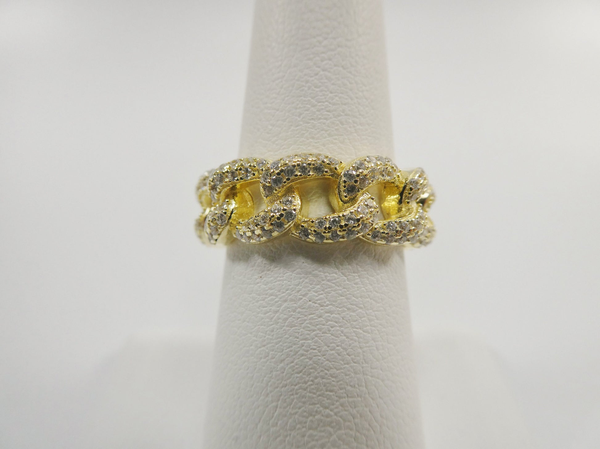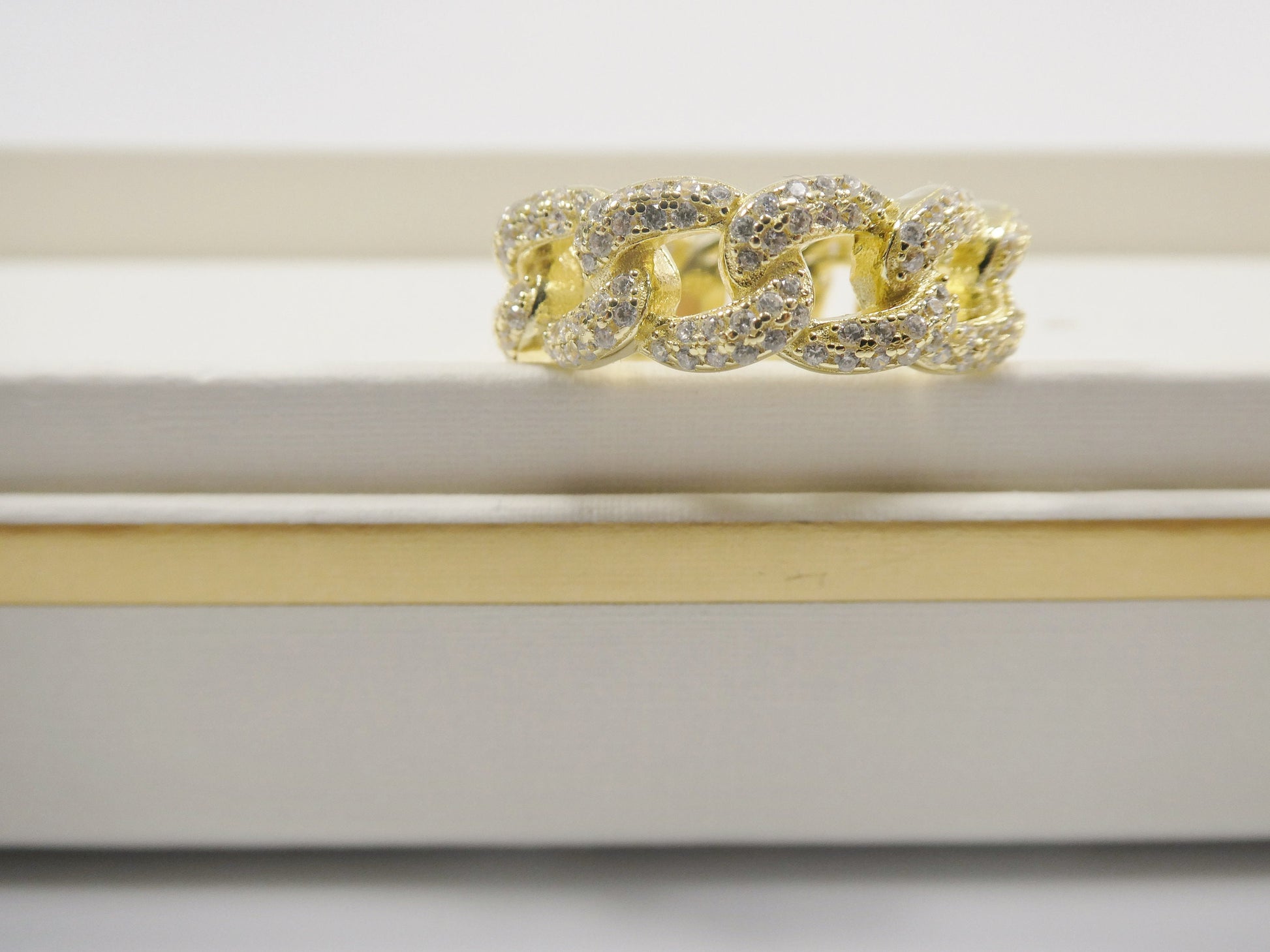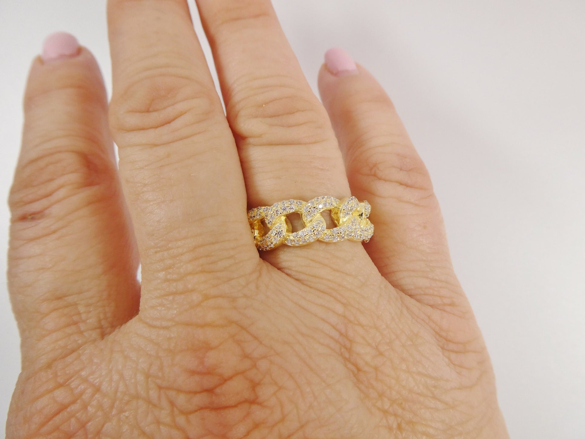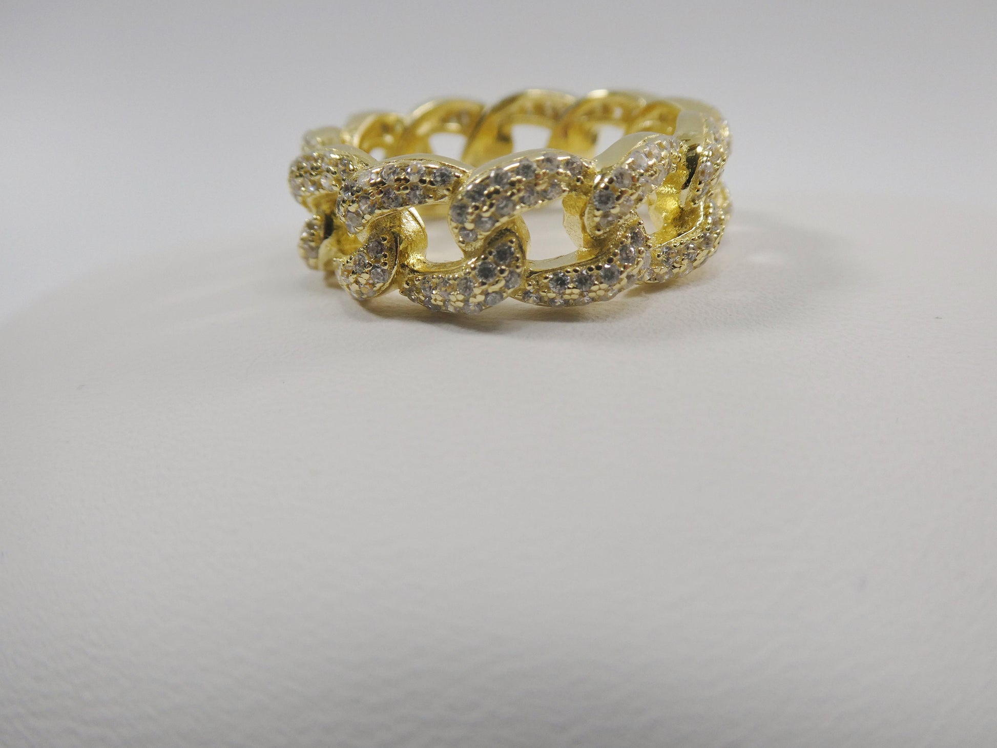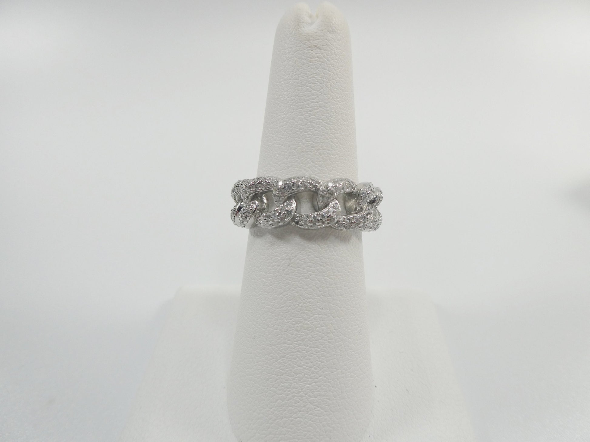 real 925 sterling silver Monaco curb link full icy prong setting ladies ring