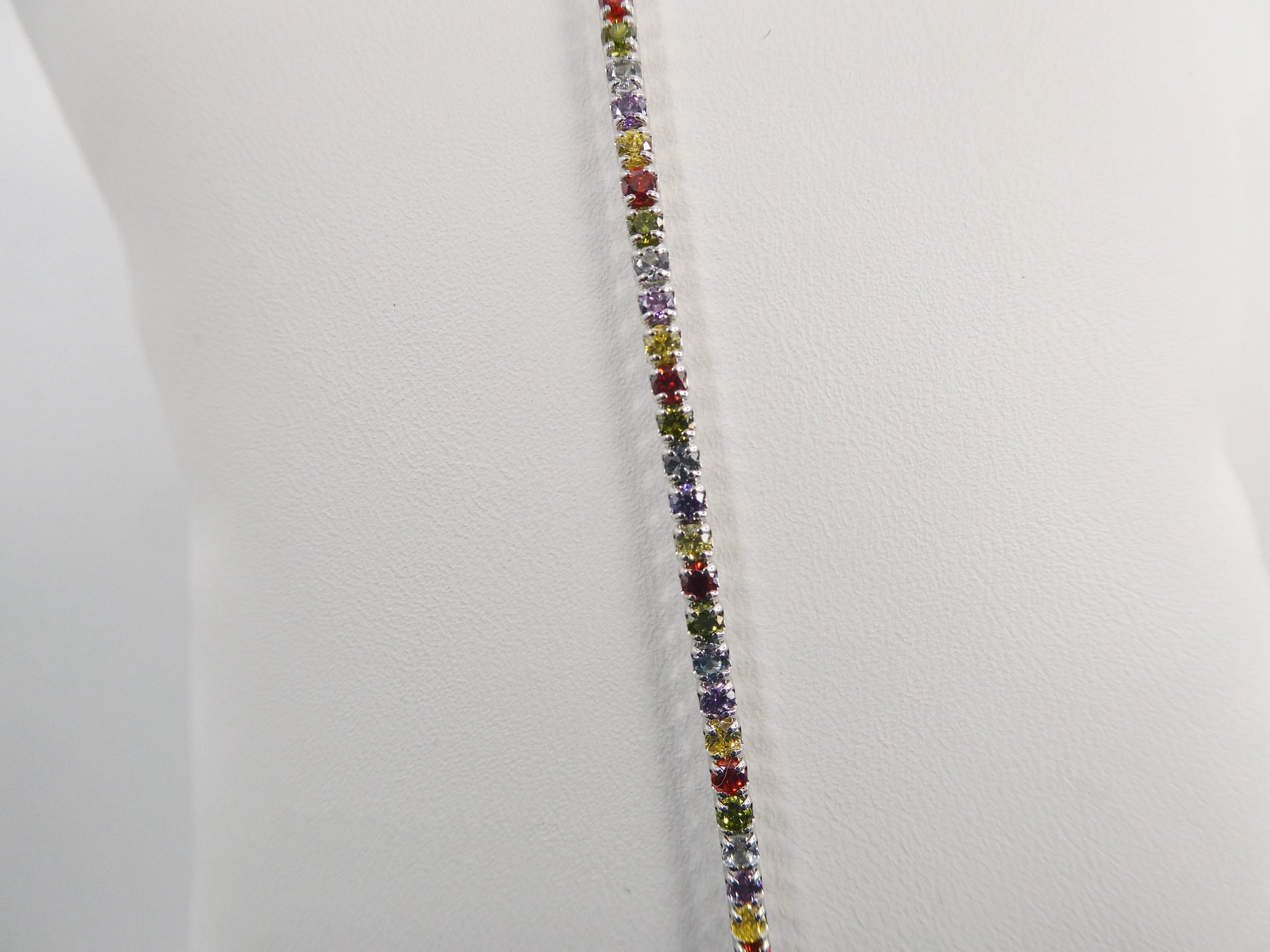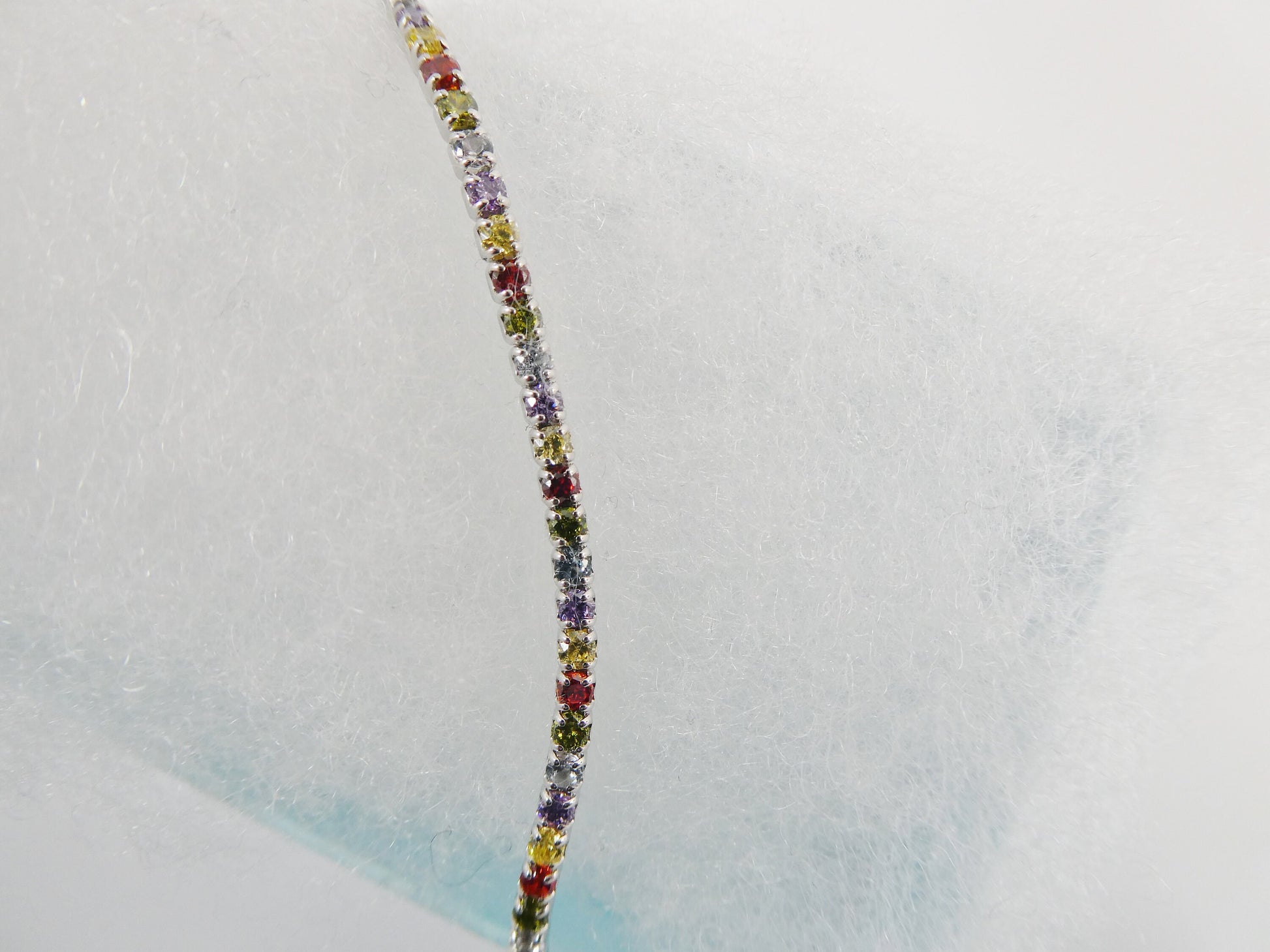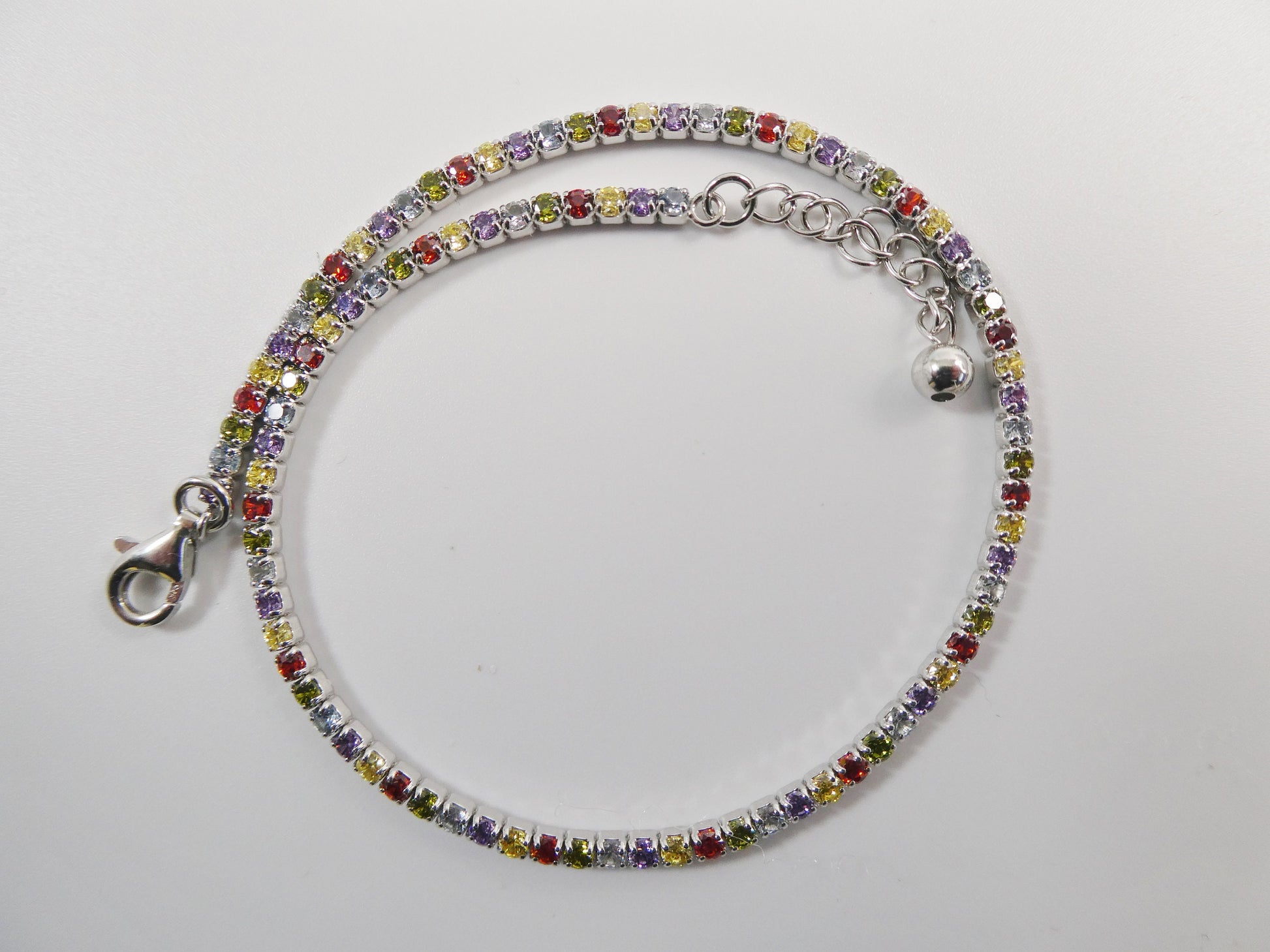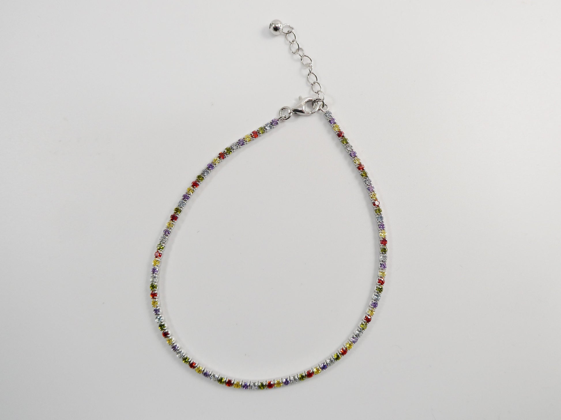 Real 925 sterling silver multi-color rainbow anklet tennis bracelet with extension