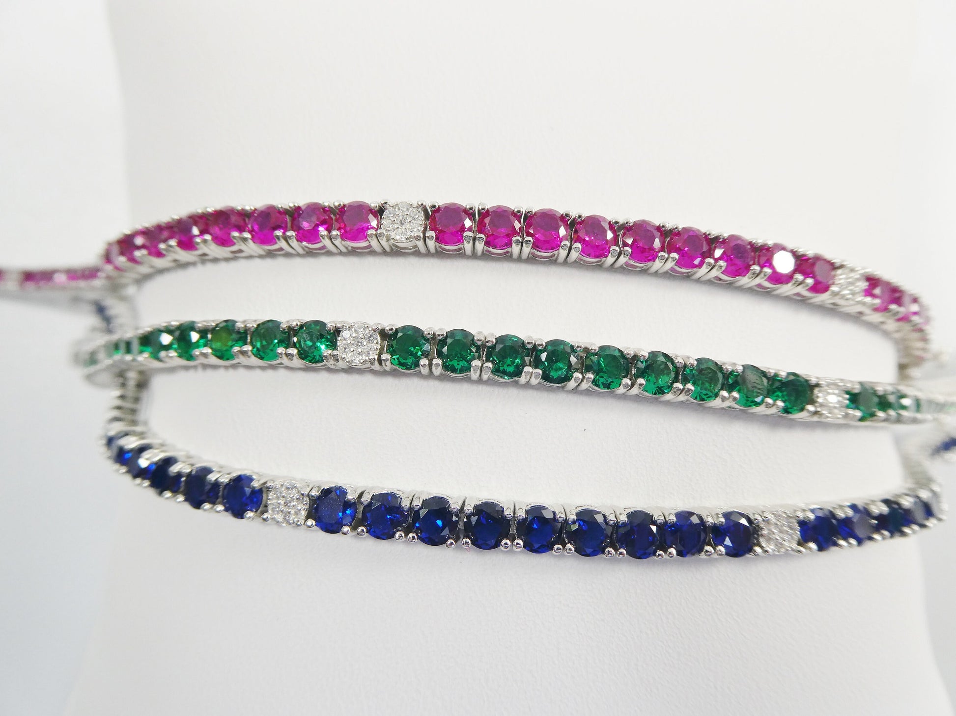 Real 925 sterling silver sapphire spinel tennis bracelet box lock clasp