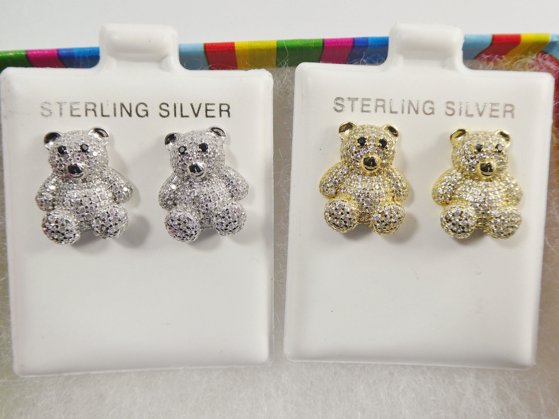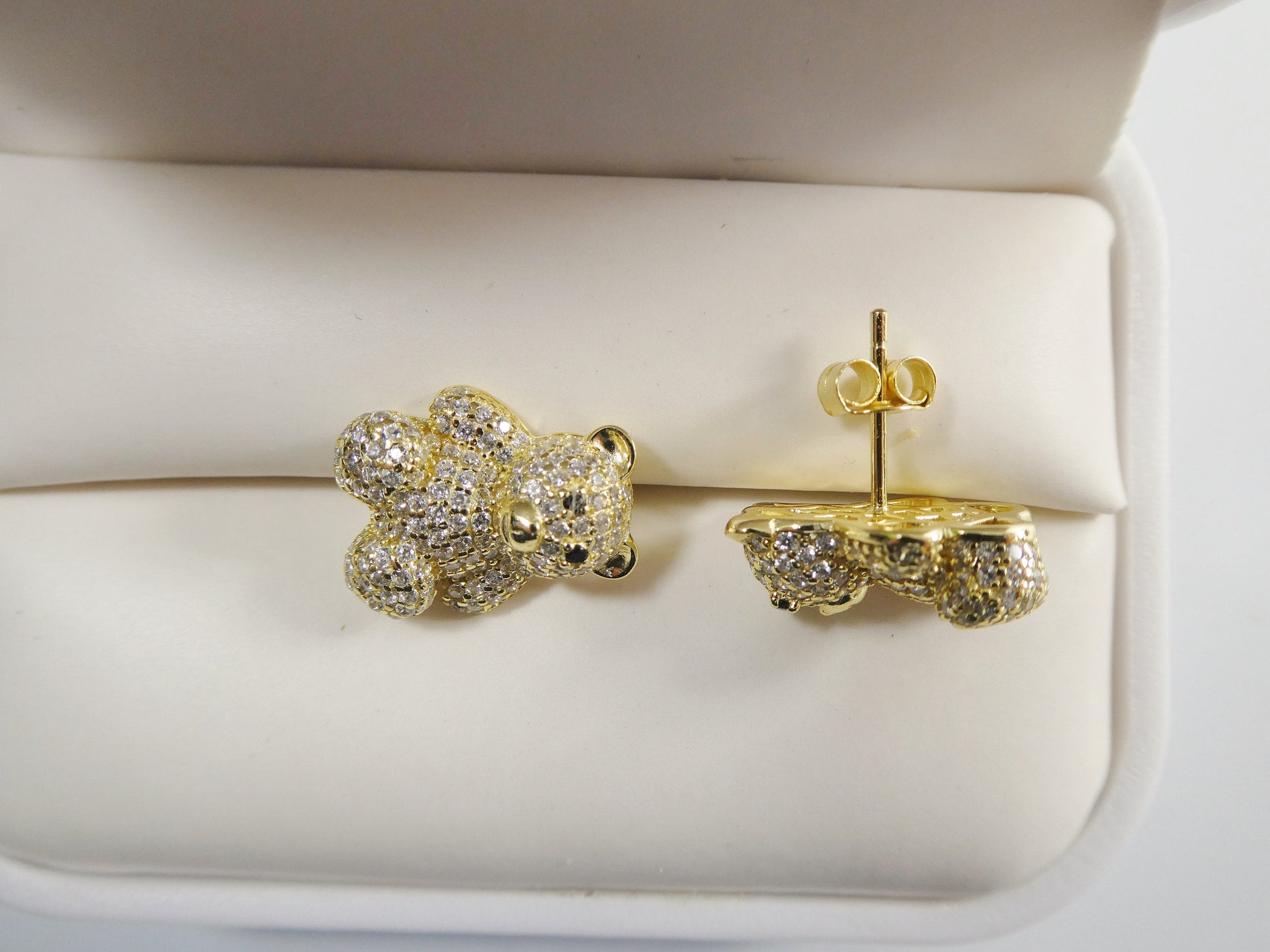 BRAND NEW NEW RELEASE SMALL TEDDY BEAR EARRING 14K YELLOW GOLD COLOR TONE FINISH / WHITE GOLD FINISH RODIUM PLATED FOR LASTING OVER REAL 925 STERLING SILVER EARRING HIGH QUALITY HIGH POLISH GREAT GOLD COLOR FINISH LUXURY ATTREACTIVE LOOK COME IN NICE GIFT BOX MAKE IT GREAT GIFT FOR ANY OCCASION