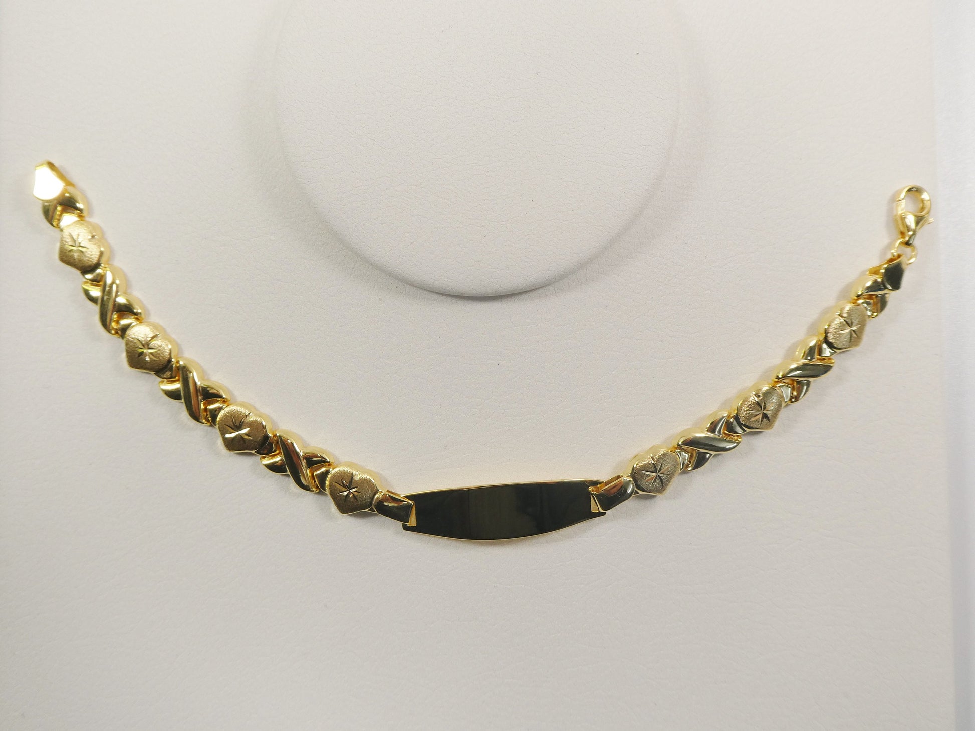real 925 sterling silver stampato x heart ID bracelet 14k yellow gold finish