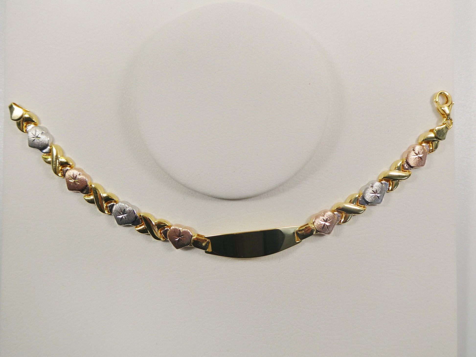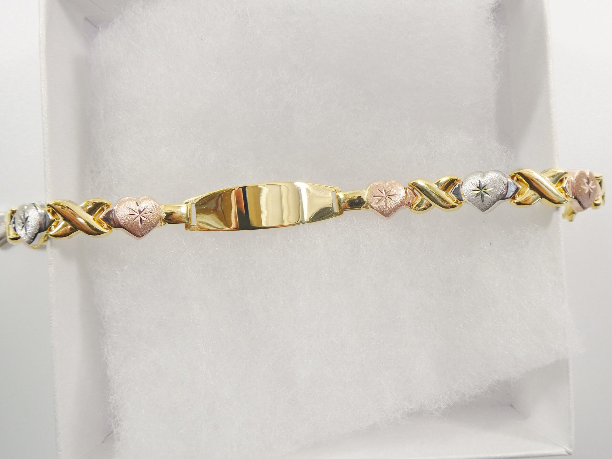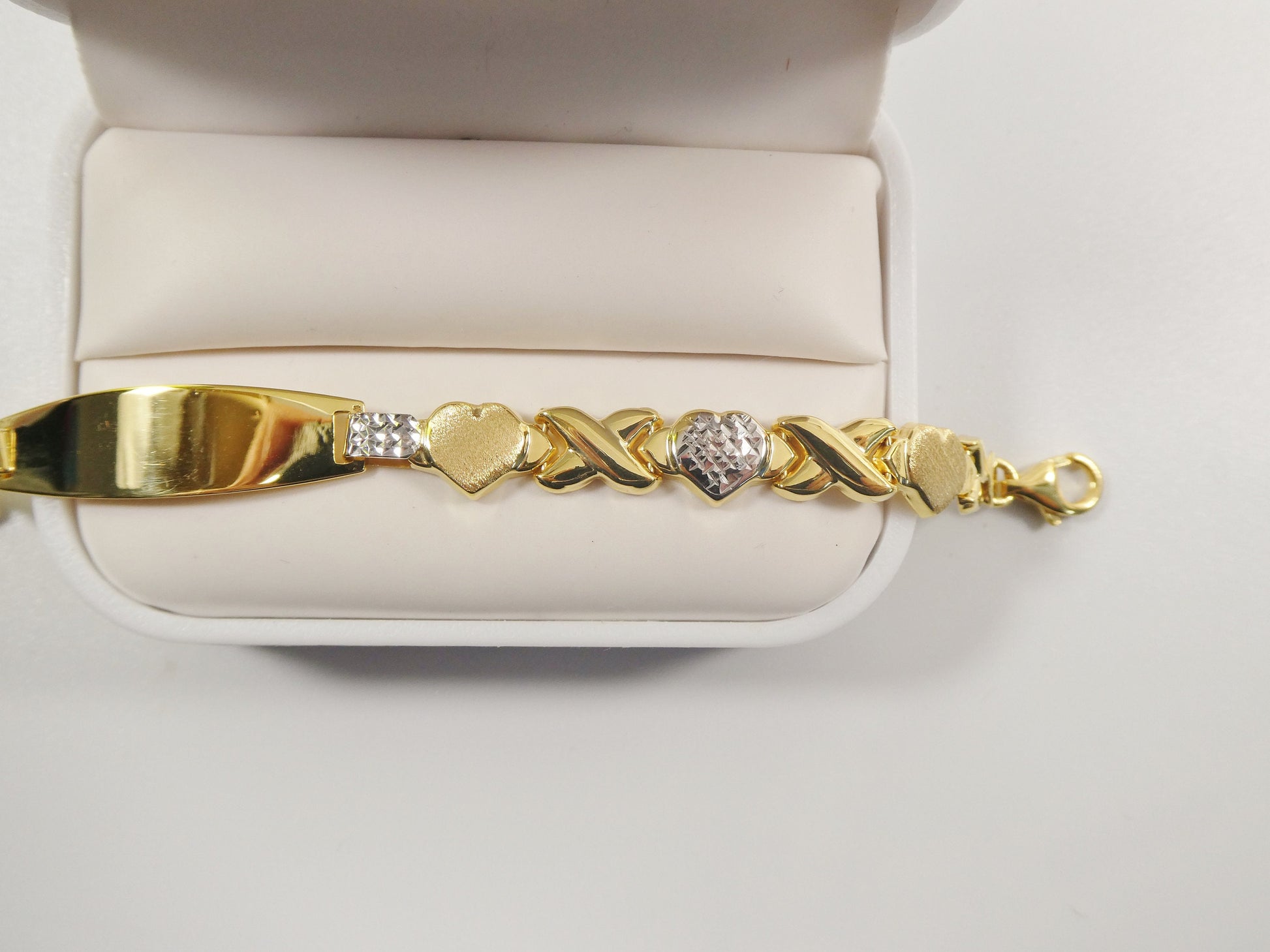 REAL 925 STERLING SILVER X HEART FRIENDSHIP ID BRACELET 14K YELLOW GOLD FINISH /ALL YELLOW / TRI COLOR /