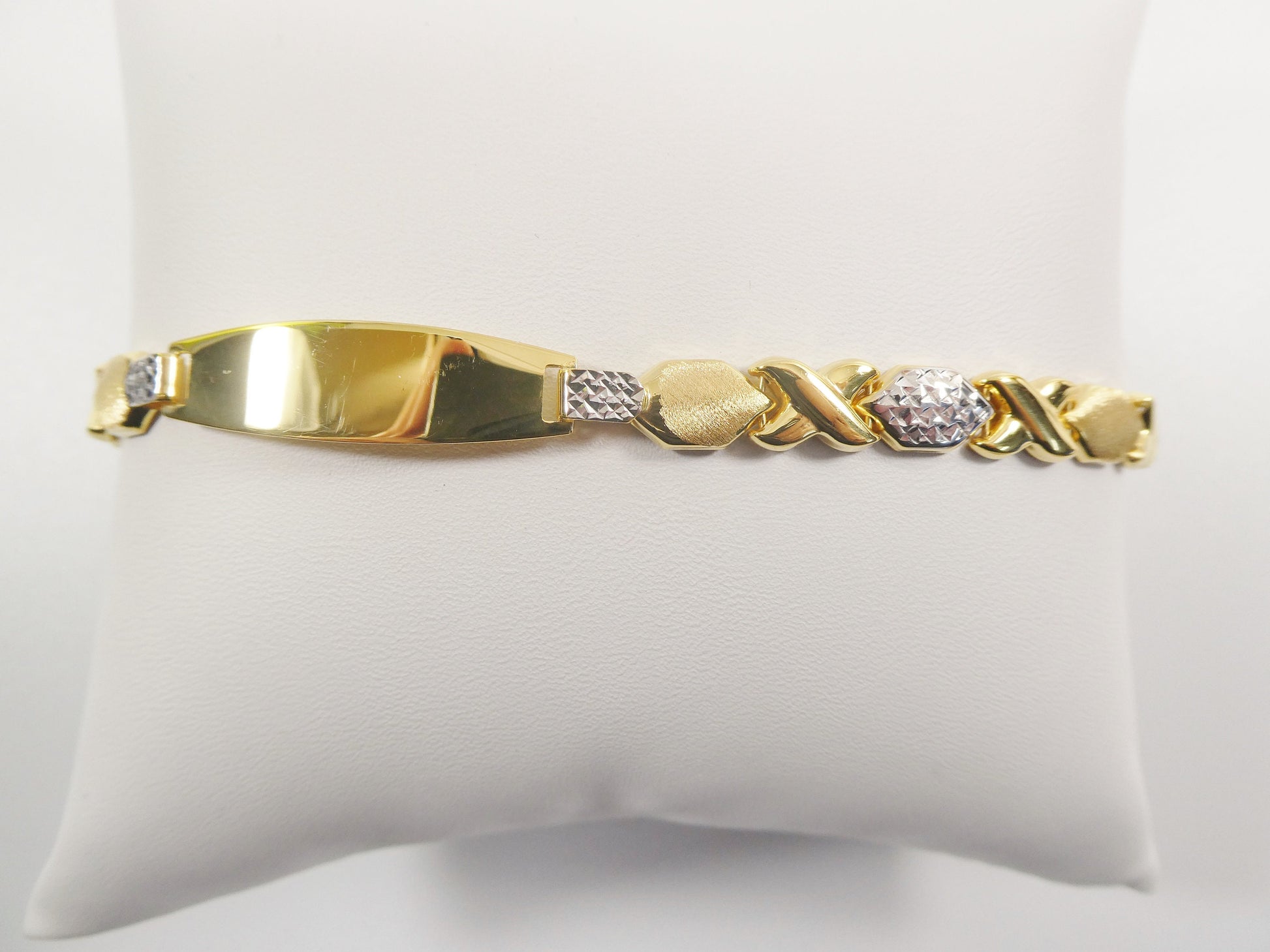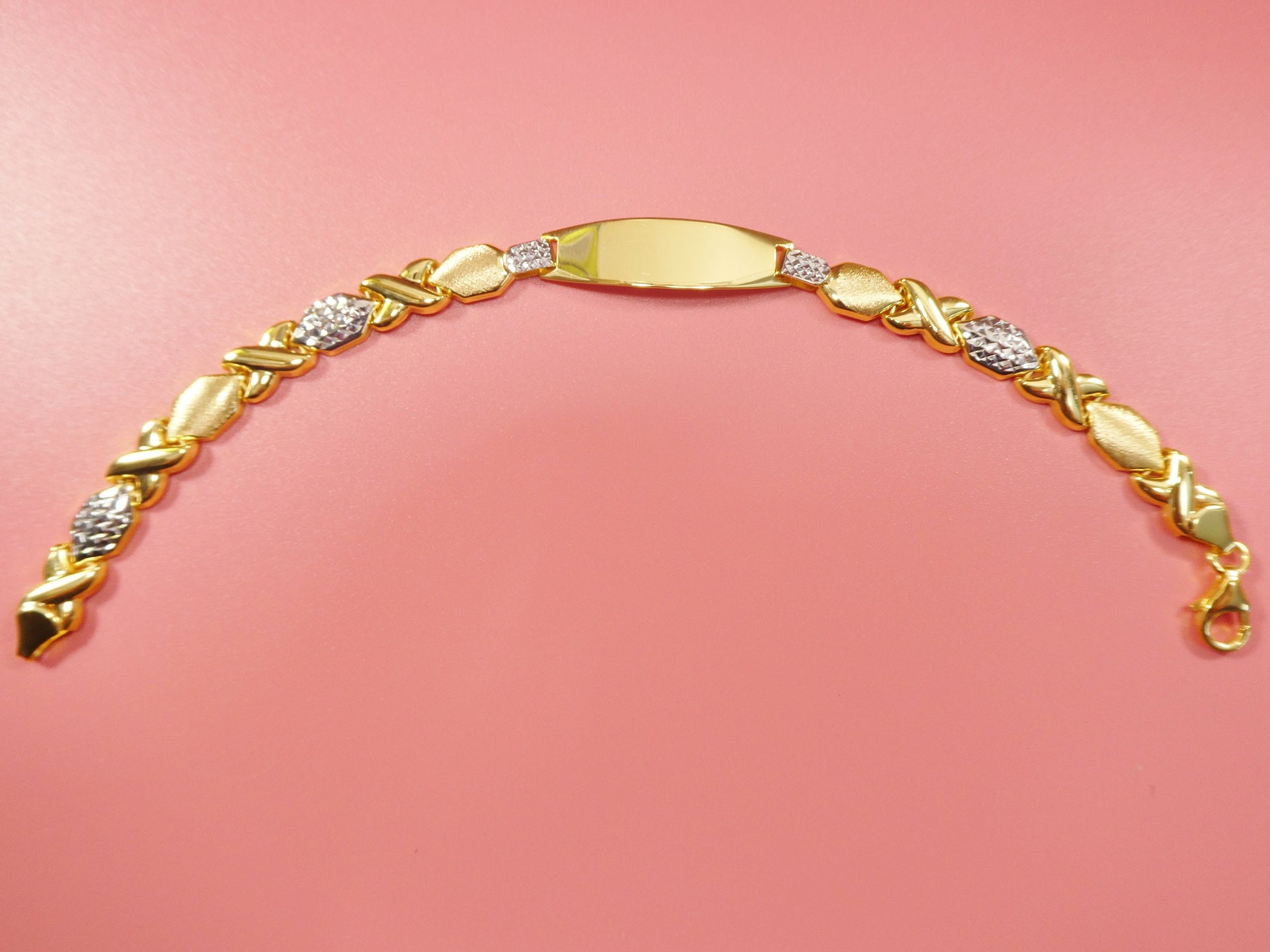 real 925 sterling silver stampato XOXO ID bracelet 14k yellow gold finish