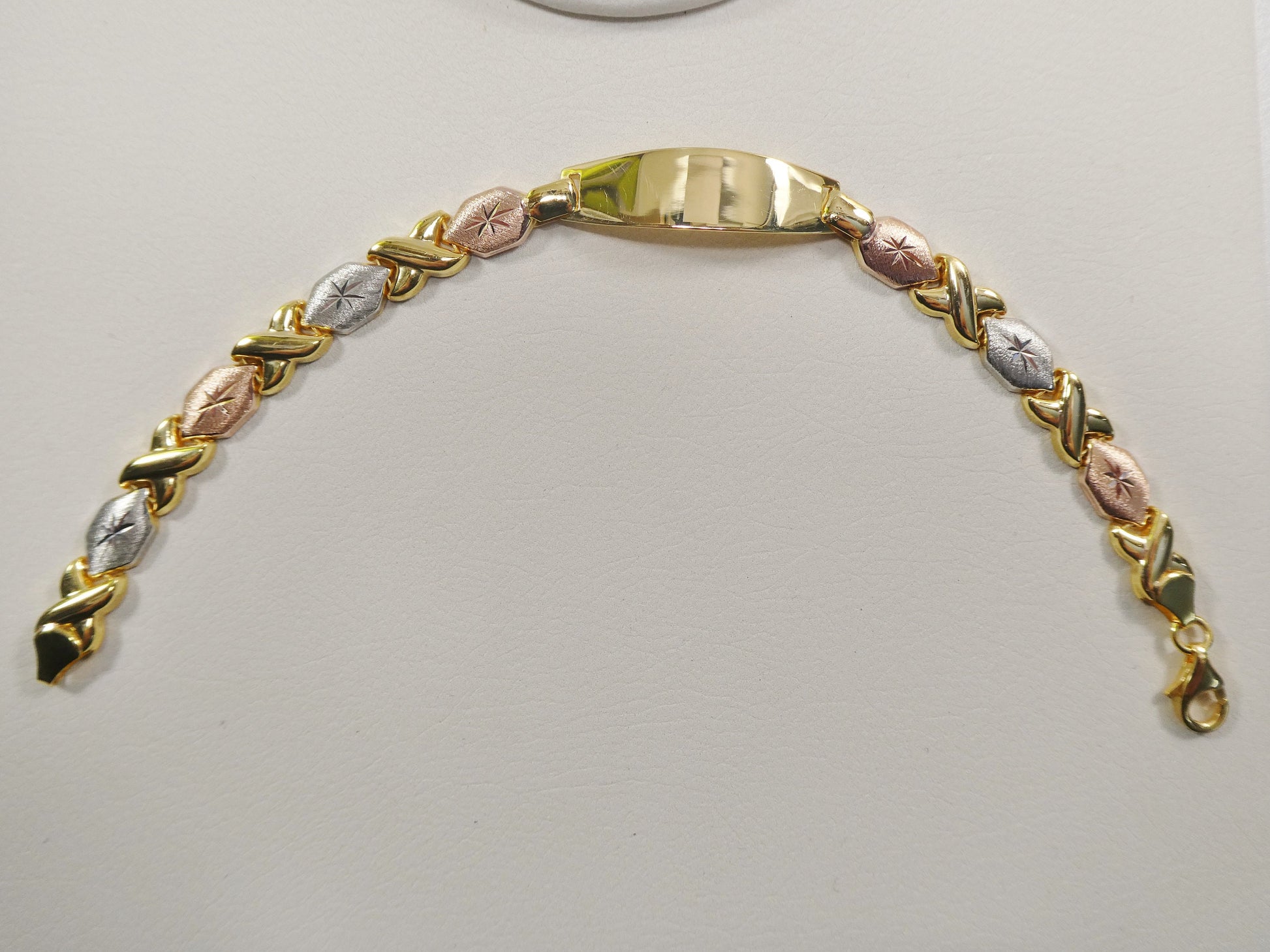 REAL 925 STERLING SILVER XOXO FRIENDSHIP ID BRACELET 14K YELLOW GOLD FINISH /ALL YELLOW / TRI COLOR /