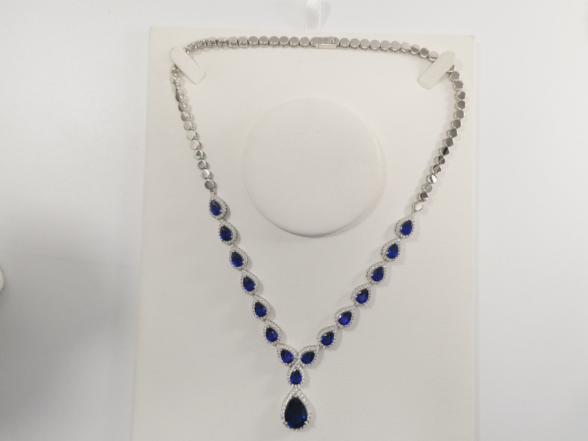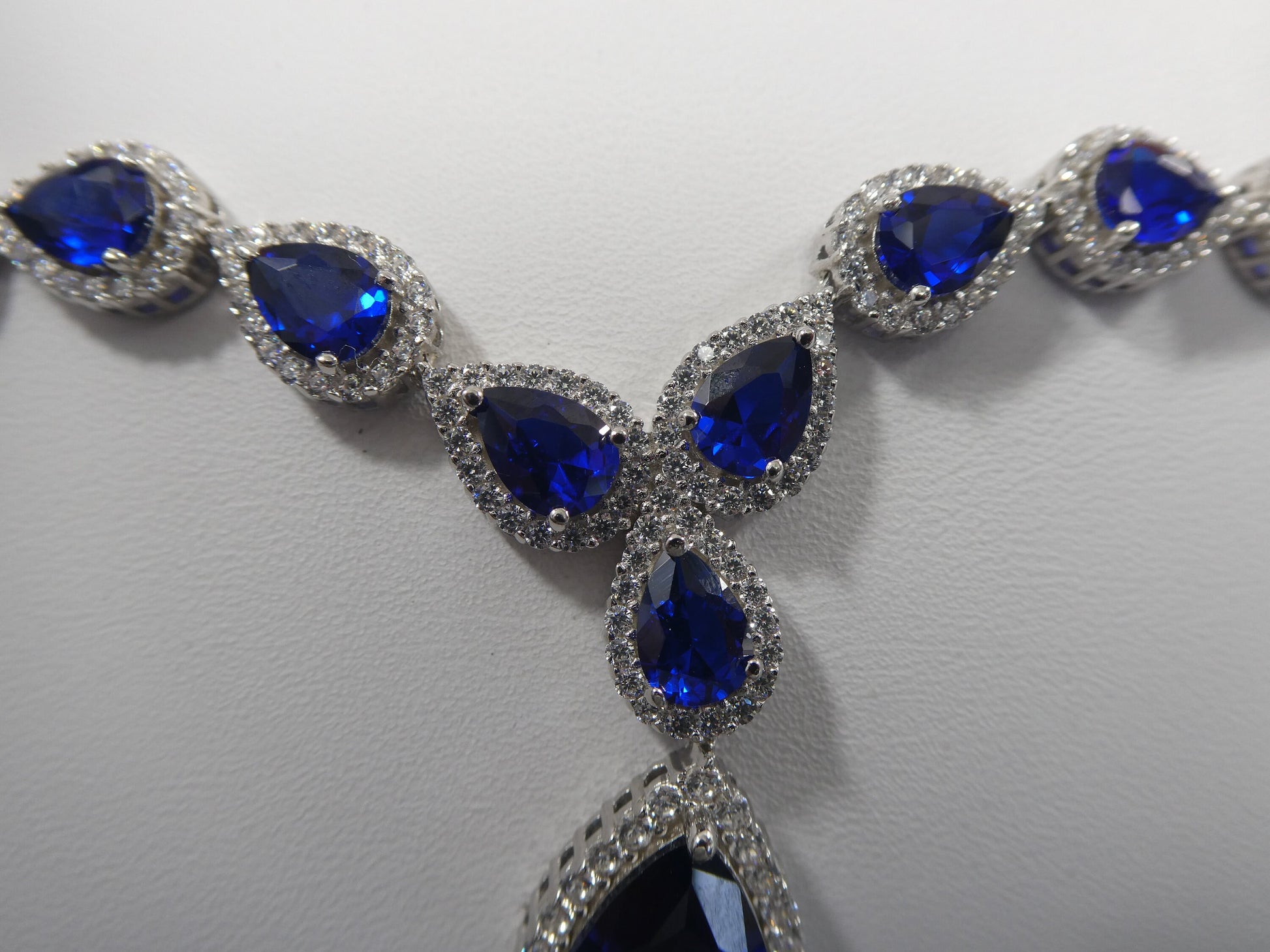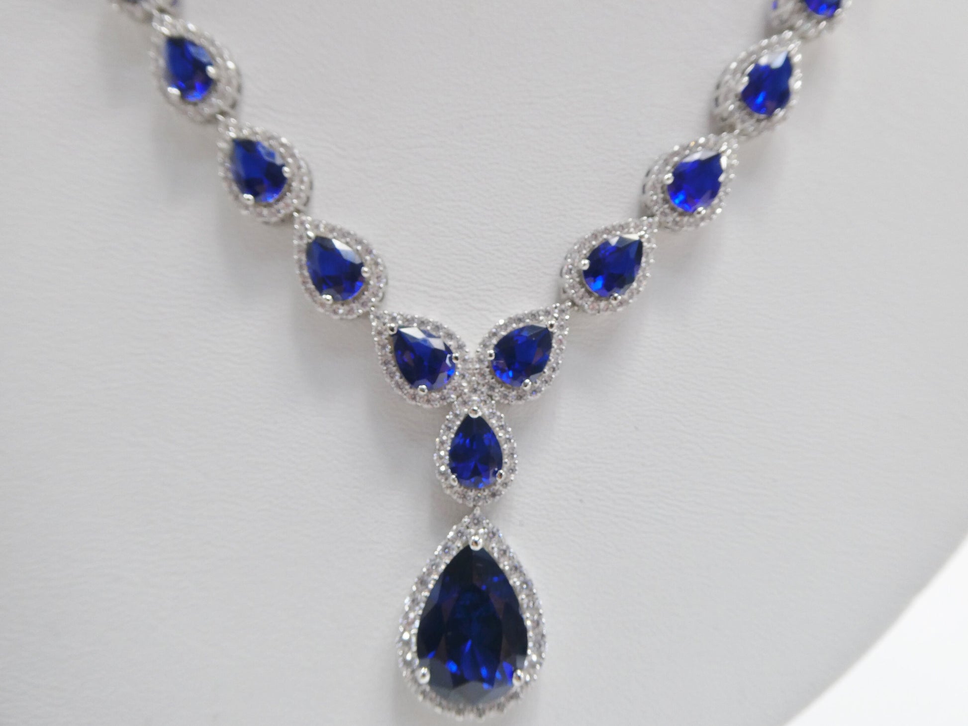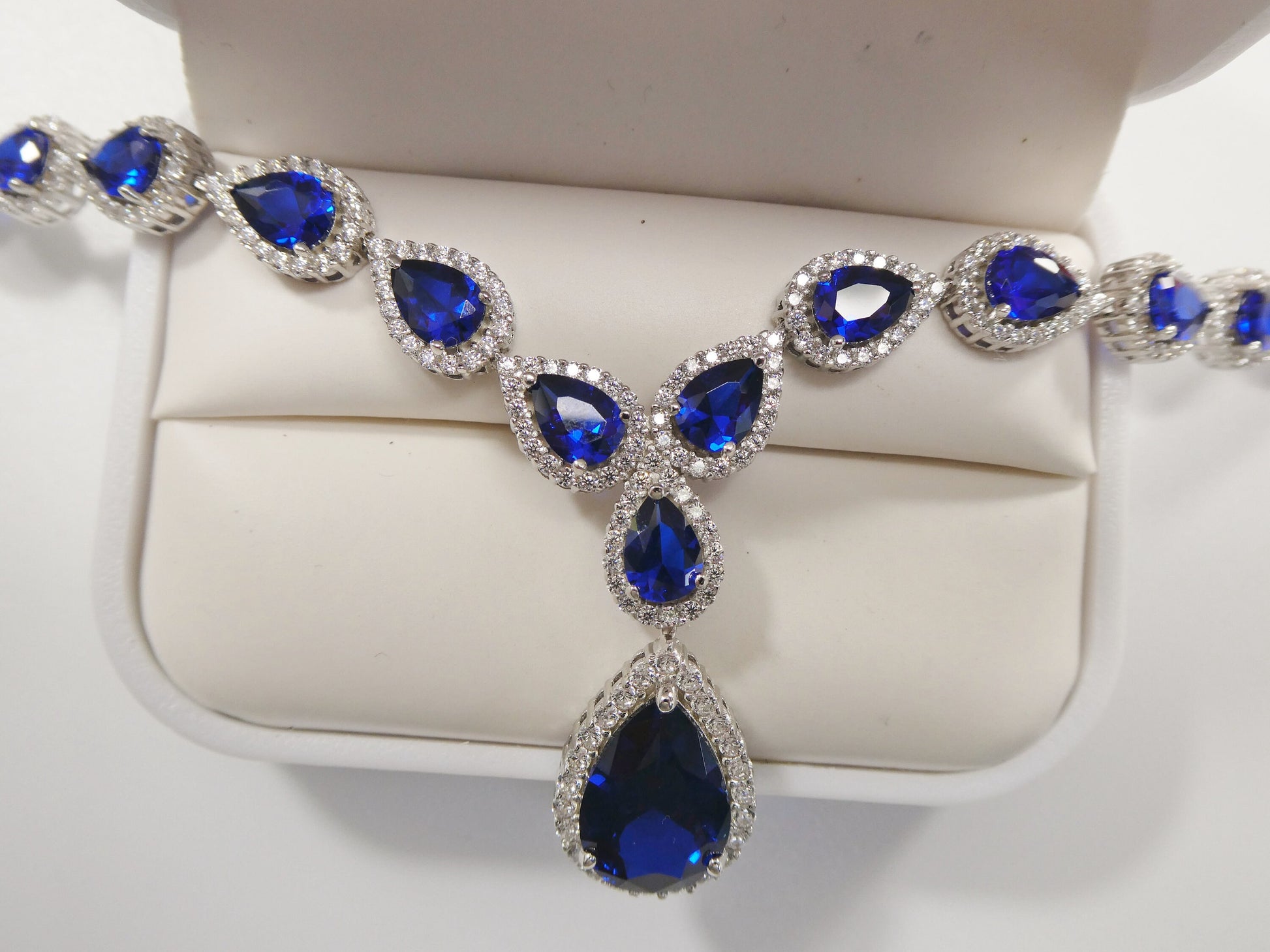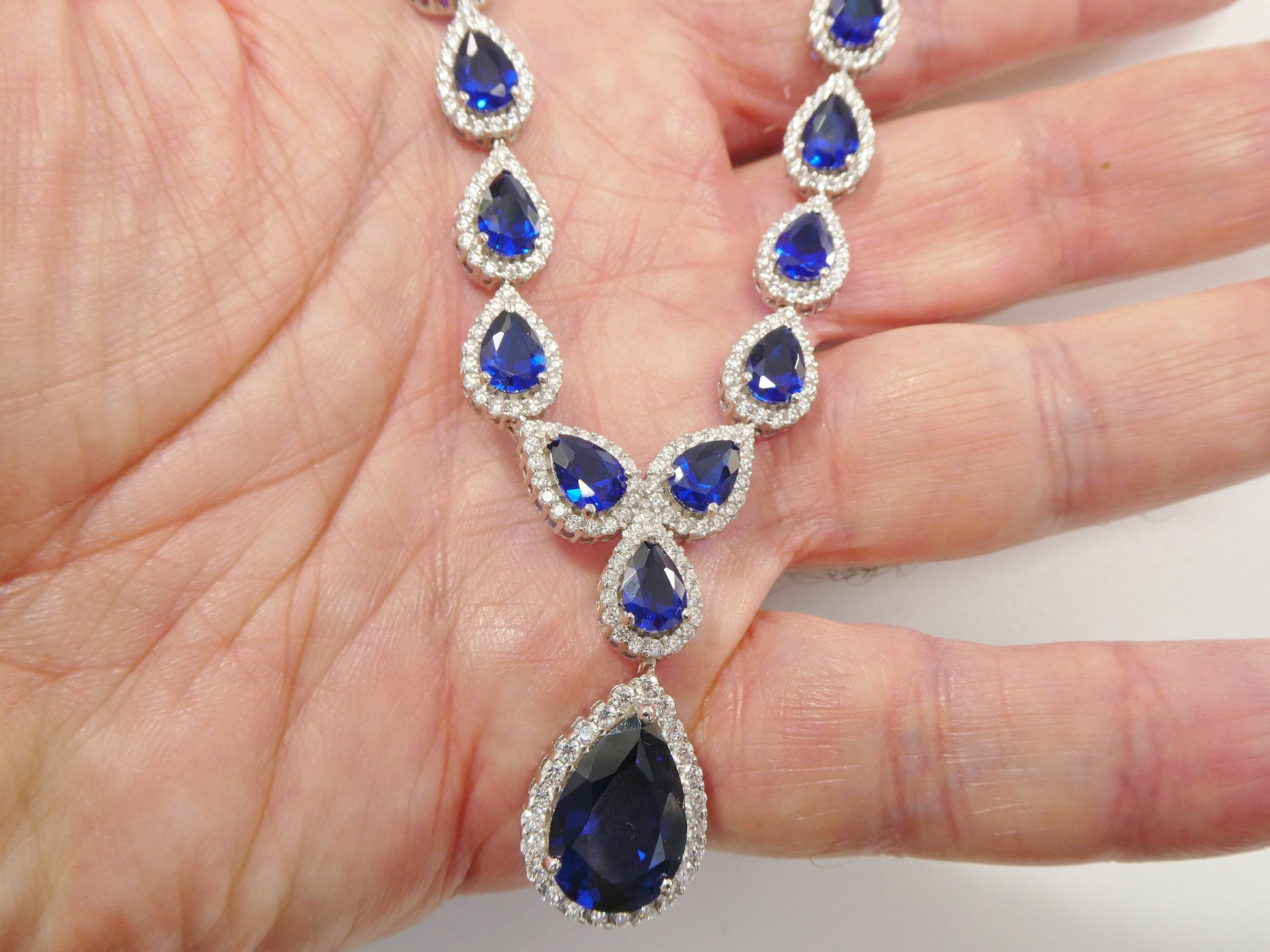 REAL 925 STERLING SILVER TEARDROP BLUE SAPPHIRE STONE SEPTEMBER BIRTHSTONE STUNNING NECKLACE CUBIC ZIRCONIA STONE WOMEN NECKLACE 17 INCH HANDMADE NECKLACE DURABEL AND SOLID BEAUTIFUL COLOR SKILLFULLY CRAFTED REAL 925 STERLING SILVER MARK AND STAMP HIGH QUALITY HIGH POLISH GREAT PRICE COME IN NICE GIFT BOX MAKE GREAT GIFT GOE ANY OCCASION