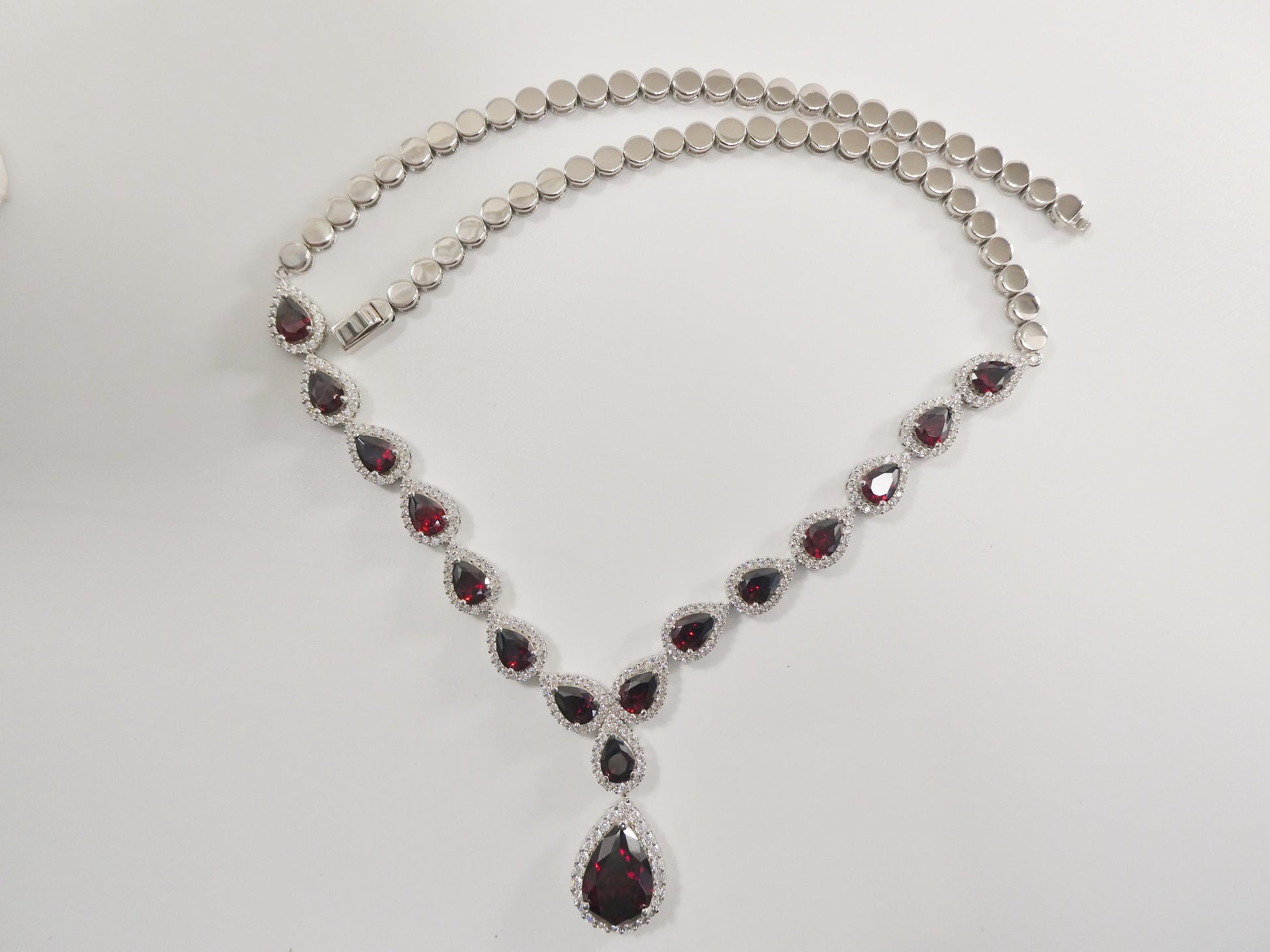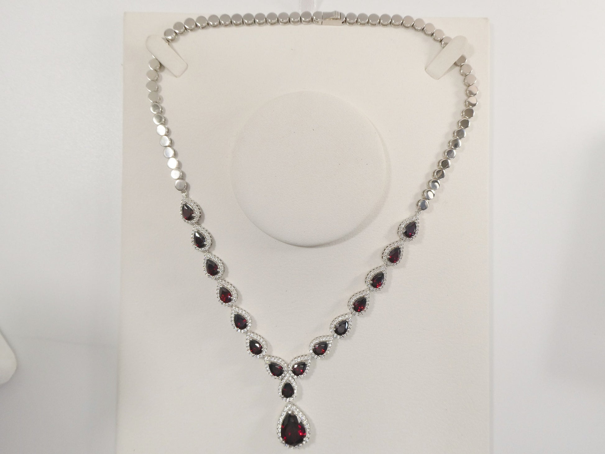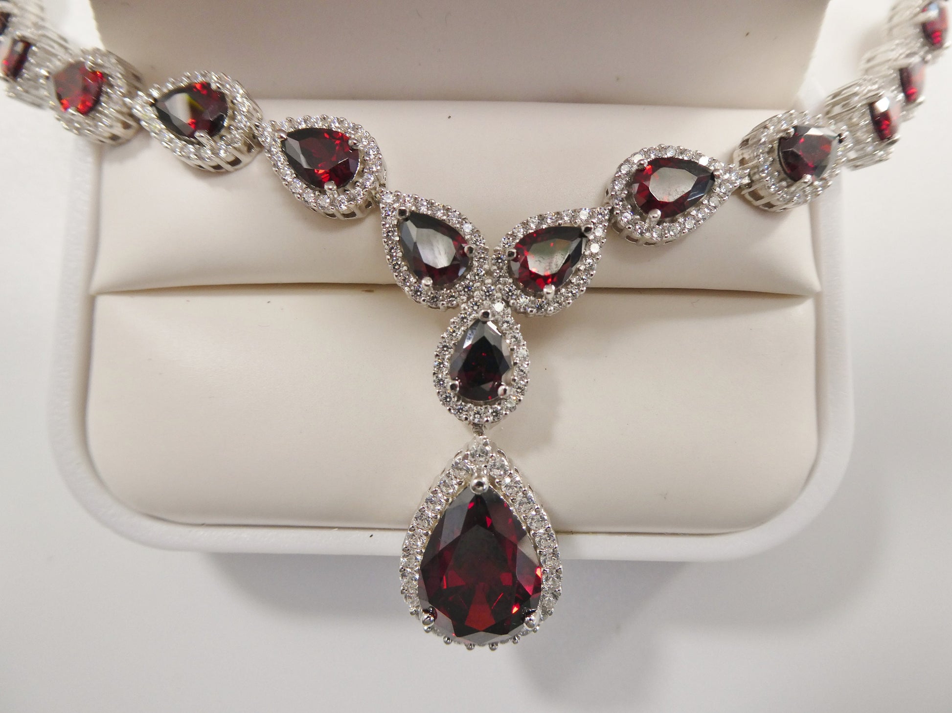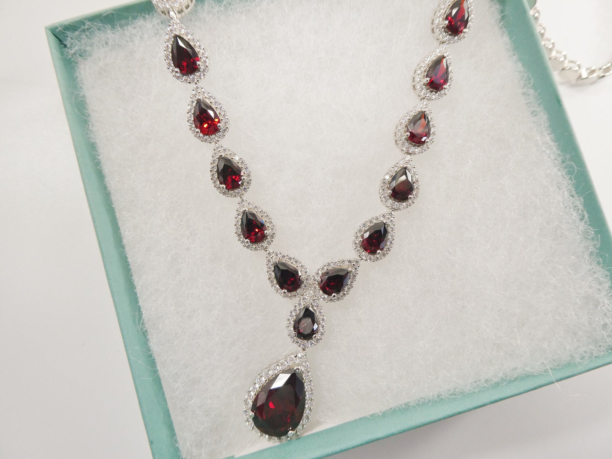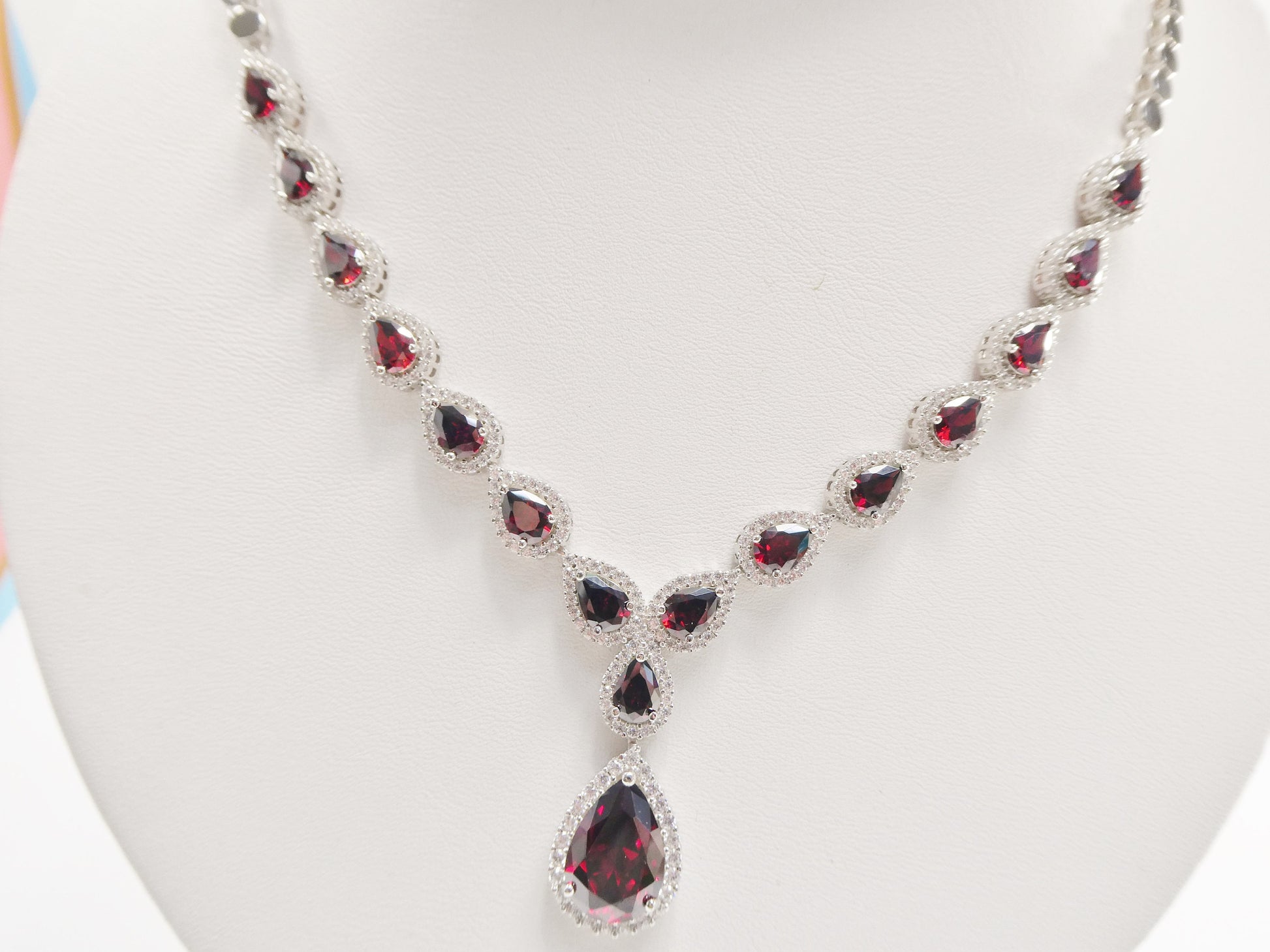 REAL 925 STERLING SILVER TEARDROP RED GARNET STONE JANUARY BIRTHSTONE STUNNING NECKLACE CUBIC ZIRCONIA STONE WOMEN NECKLACE 17 INCH HANDMADE NECKLACE DURABEL AND SOLID BEAUTIFUL COLOR SKILLFULLY CRAFTED REAL 925 STERLING SILVER MARK AND STAMP HIGH QUALITY HIGH POLISH GREAT PRICE COME IN NICE GIFT BOX MAKE GREAT GIFT GOE ANY OCCASION
