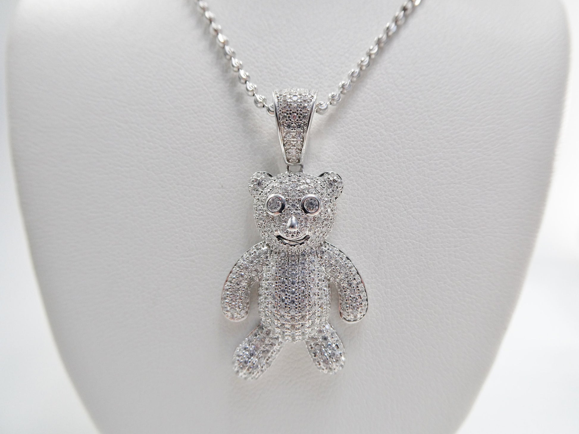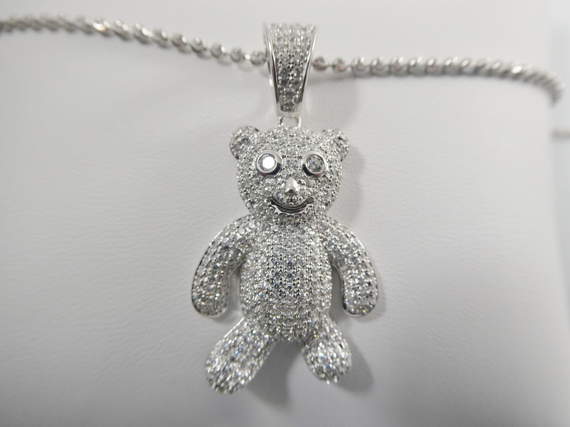 real 925 sterling silver teddy bear pendent and 2mm 18 inch moon cut chain