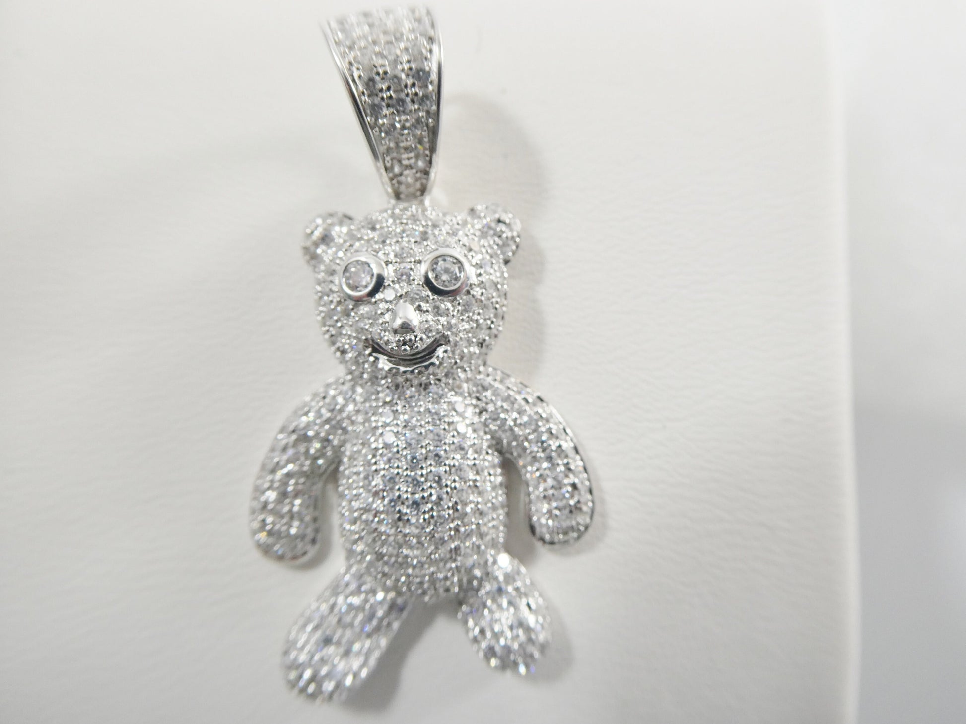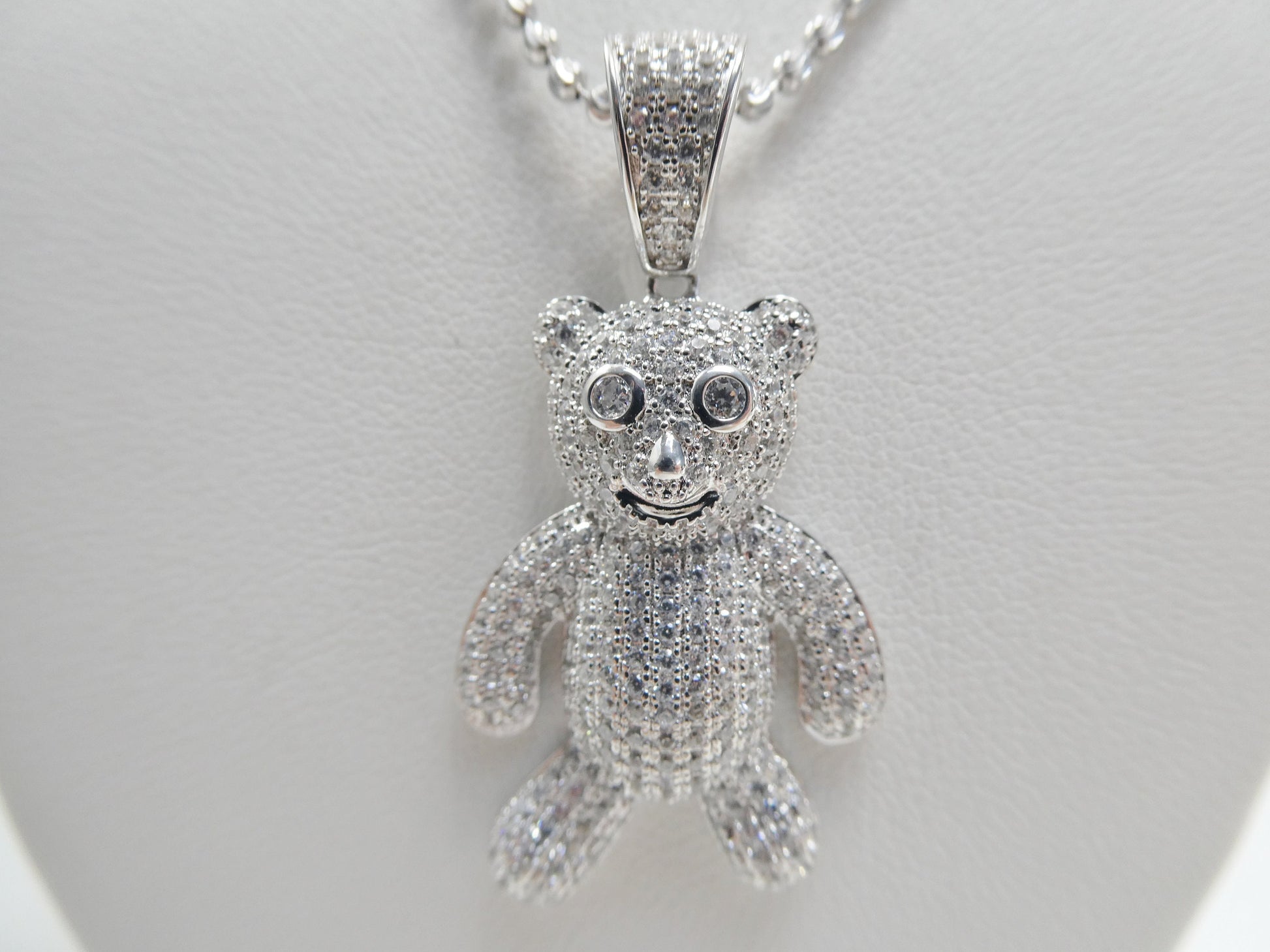 REAL 925 STERLING SILVER TEDDY BEAR PENDENT FULL ICE CUBIC ZIRCONIA SHINY STONE 18 INCH 2MM MOON CUT CHAIN LOBSTER CLASP LOCK PERFECT GOLD COLOR FINISH HIGH QUALITY HIGH POLISH RHODIUM PLATING FOR LASTING MARK AND STAMP COME IN NICE GIFT BOX