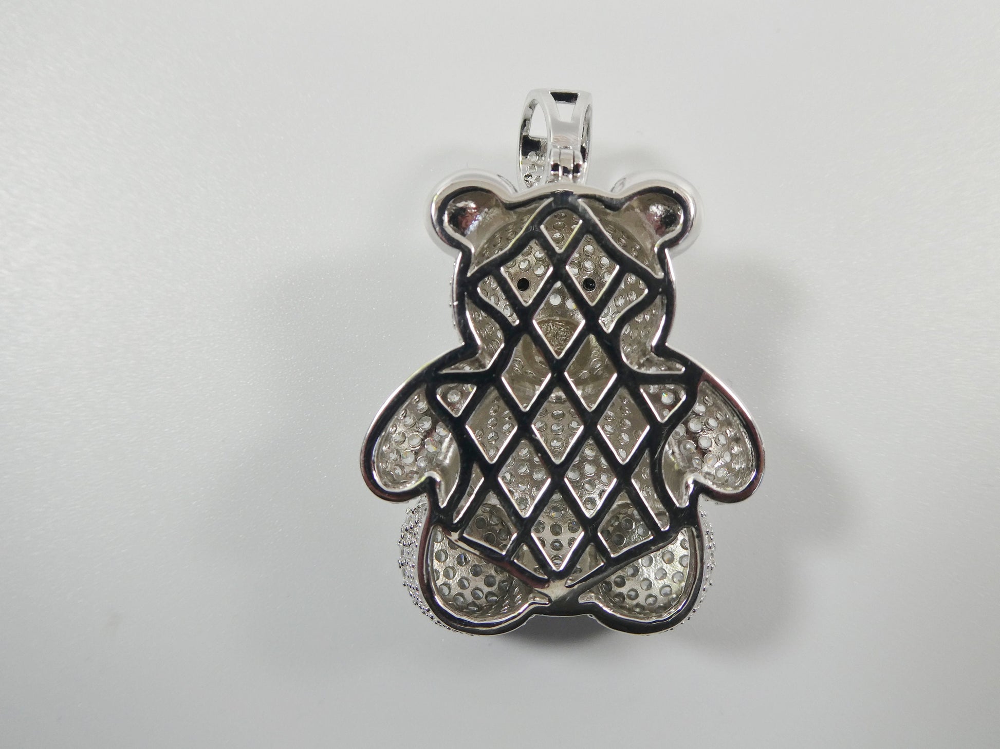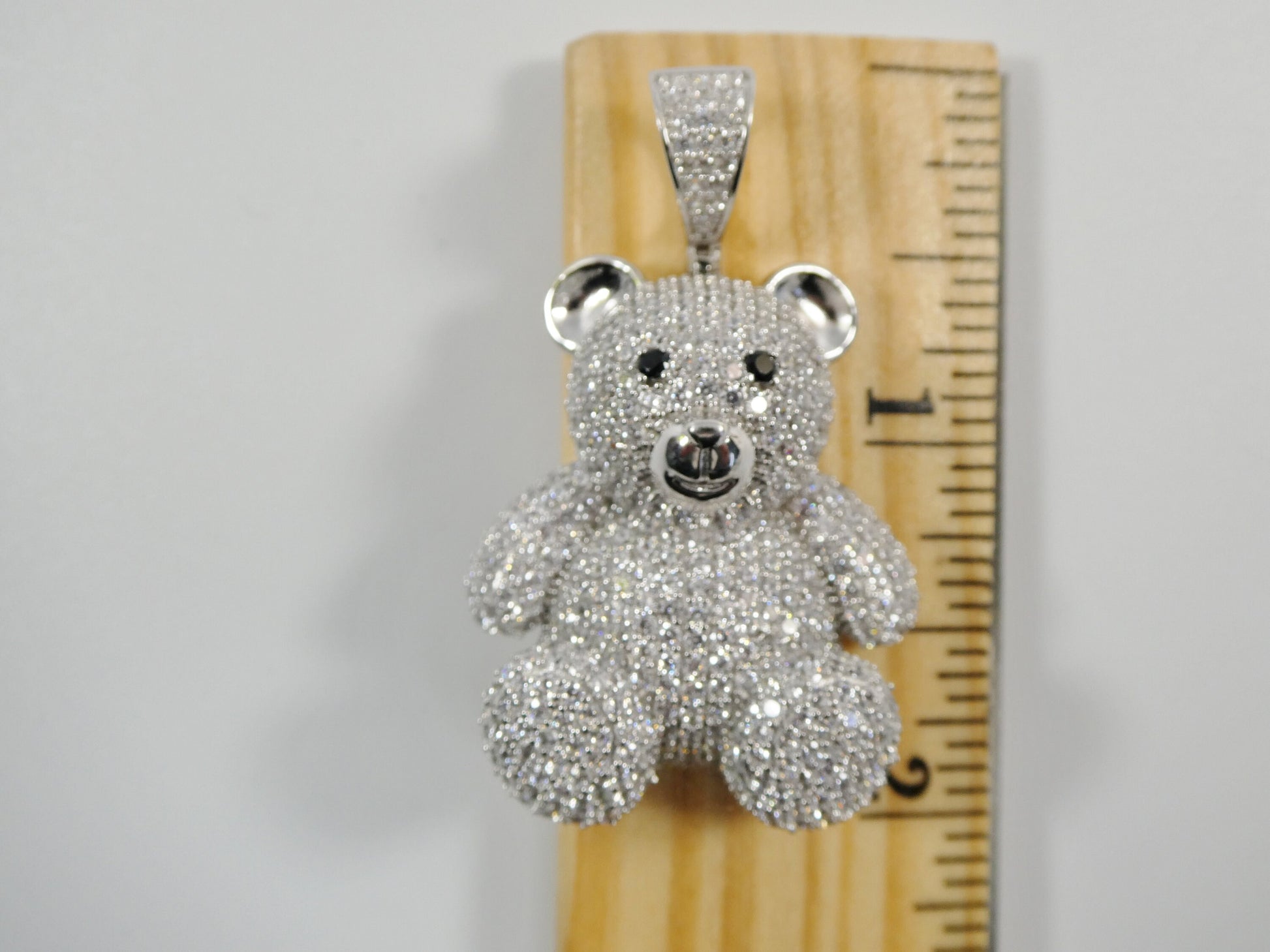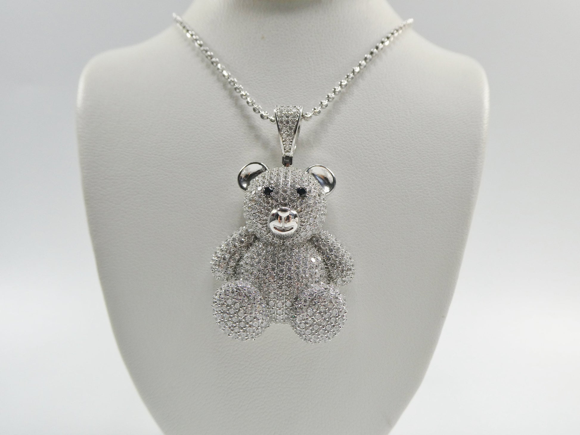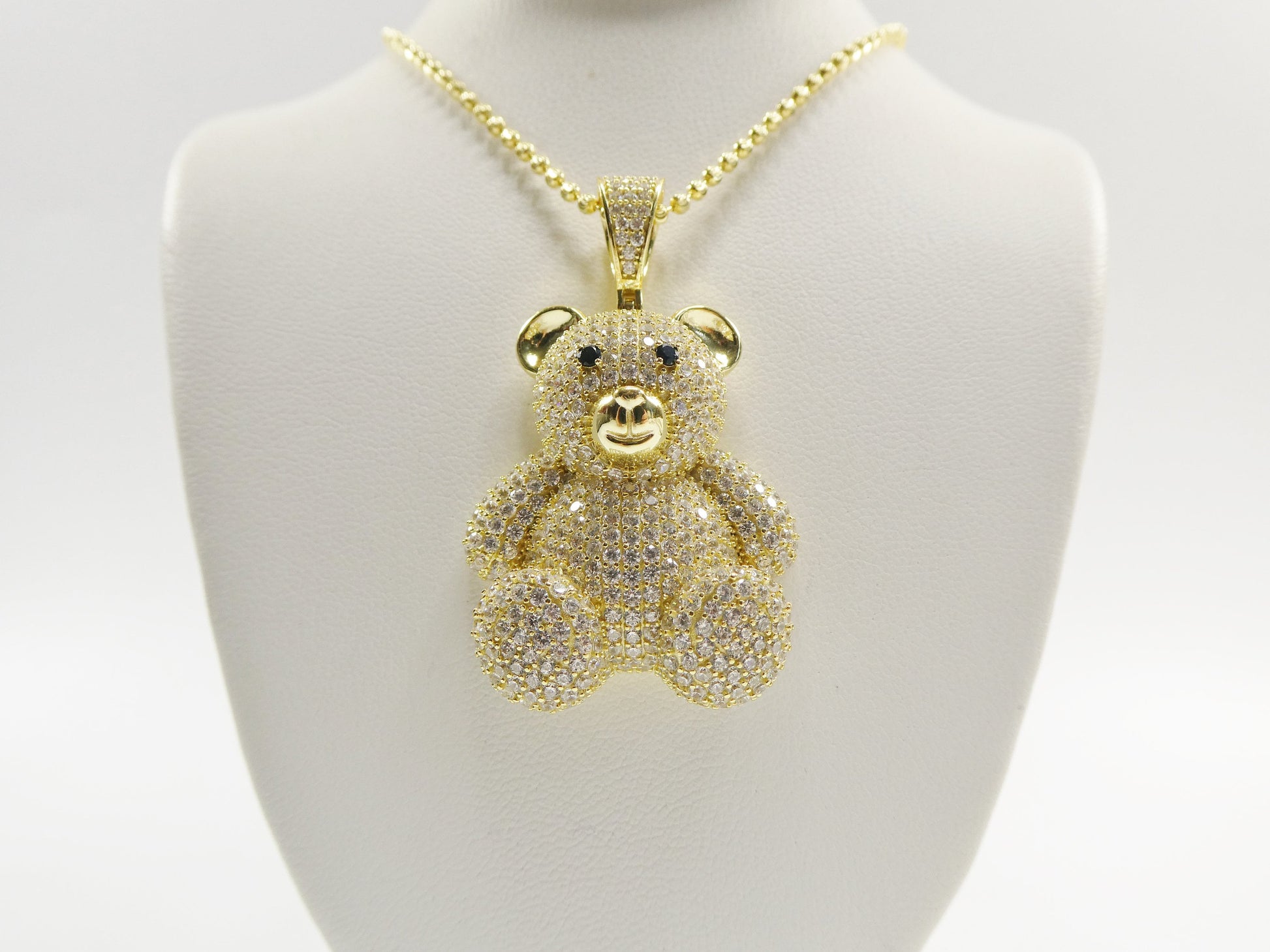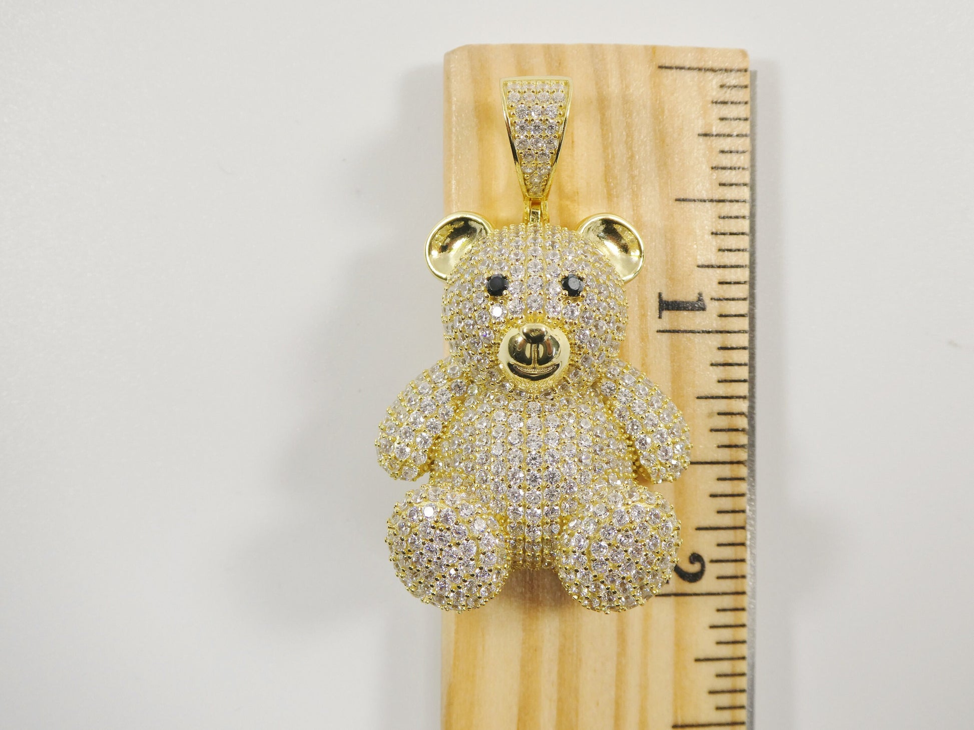 REAL 925 STERLING SILVER TEDDY BEAR PENDENT FULL ICE CUBIC ZIRCONIA SHINY STONE 20 INCH 2MM MOON CUT CHAIN LOBSTER CLASP LOCK PERFECT GOLD COLOR FINISH HIGH QUALITY HIGH POLISH RHODIUM PLATING FOR LASTING MARK AND STAMP COME IN NICE GIFT BOX