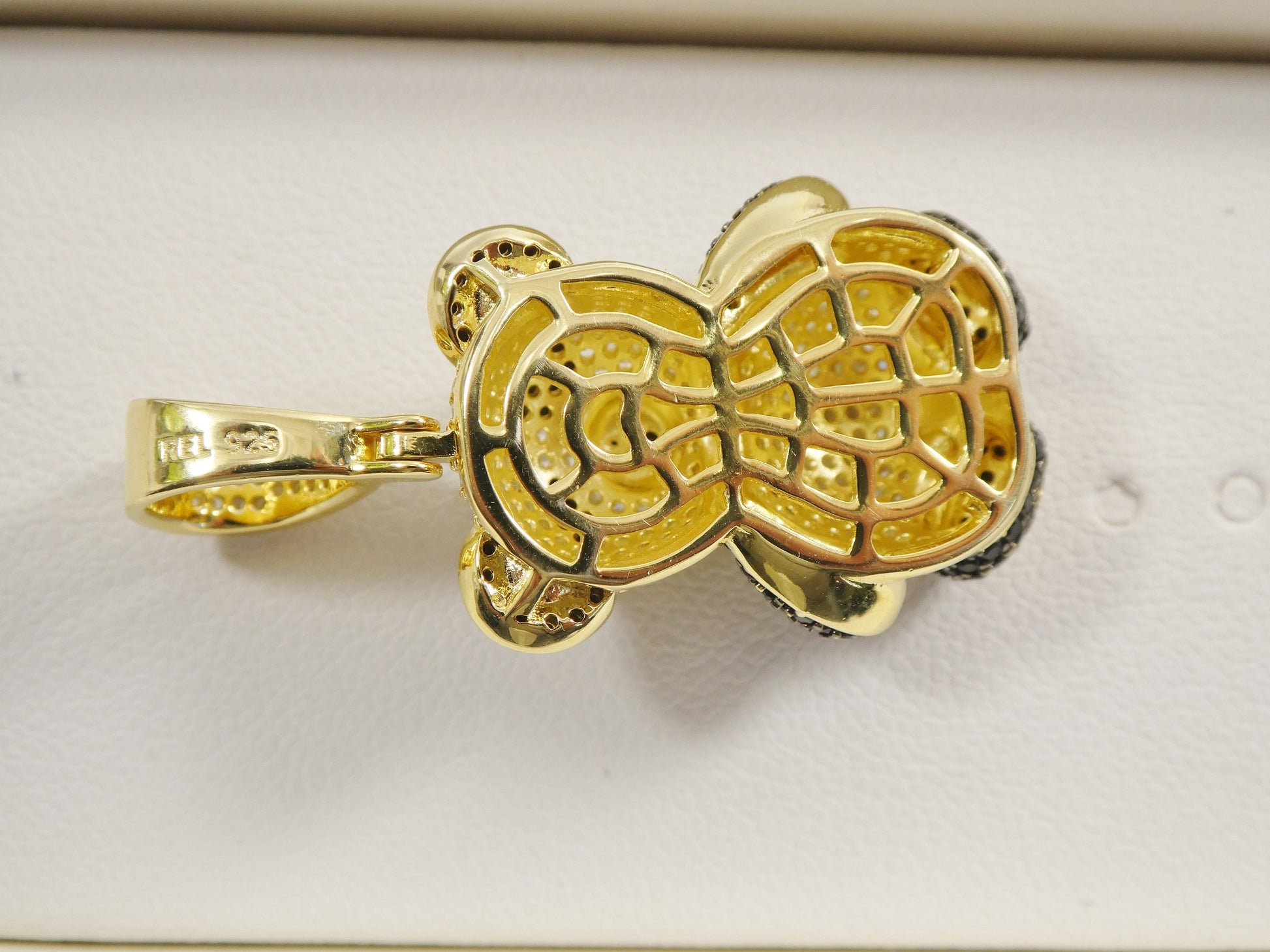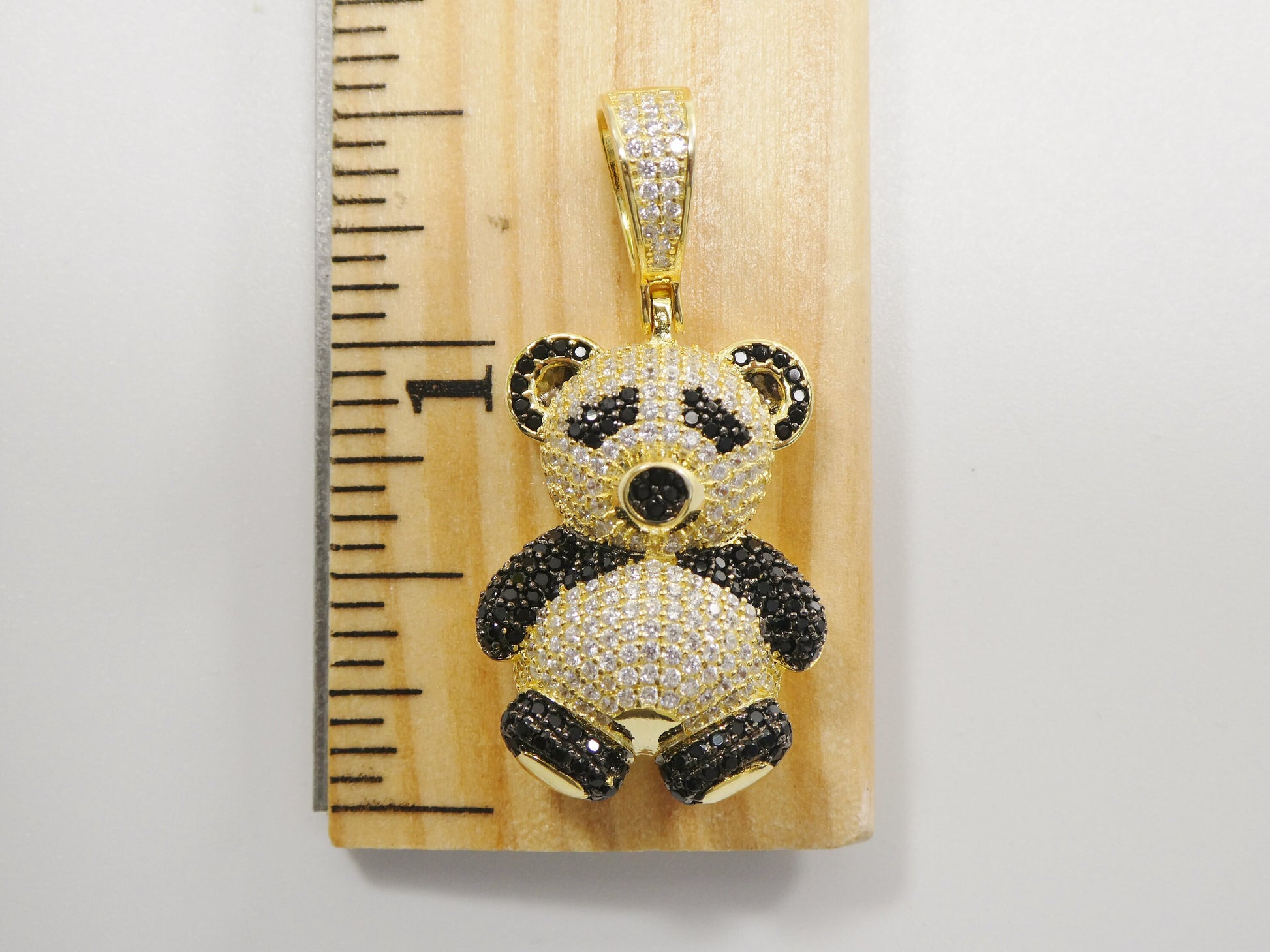 REAL 925 STERLING SILVER TEDDY BEAR PENDENT FULL ICE CUBIC ZIRCONIA SHINY STONE 18/20 INCH 2MM MOON CUT CHAIN LOBSTER CLASP LOCK PERFECT GOLD COLOR FINISH HIGH QUALITY HIGH POLISH RHODIUM PLATING FOR LASTING MARK AND STAMP COME IN NICE GIFT BOX