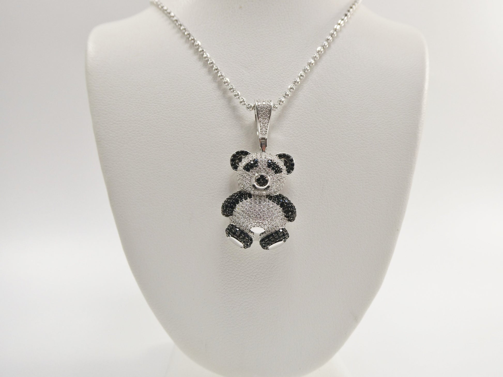 real 925 sterling silver teddy bear pendent and 2mm moon chain