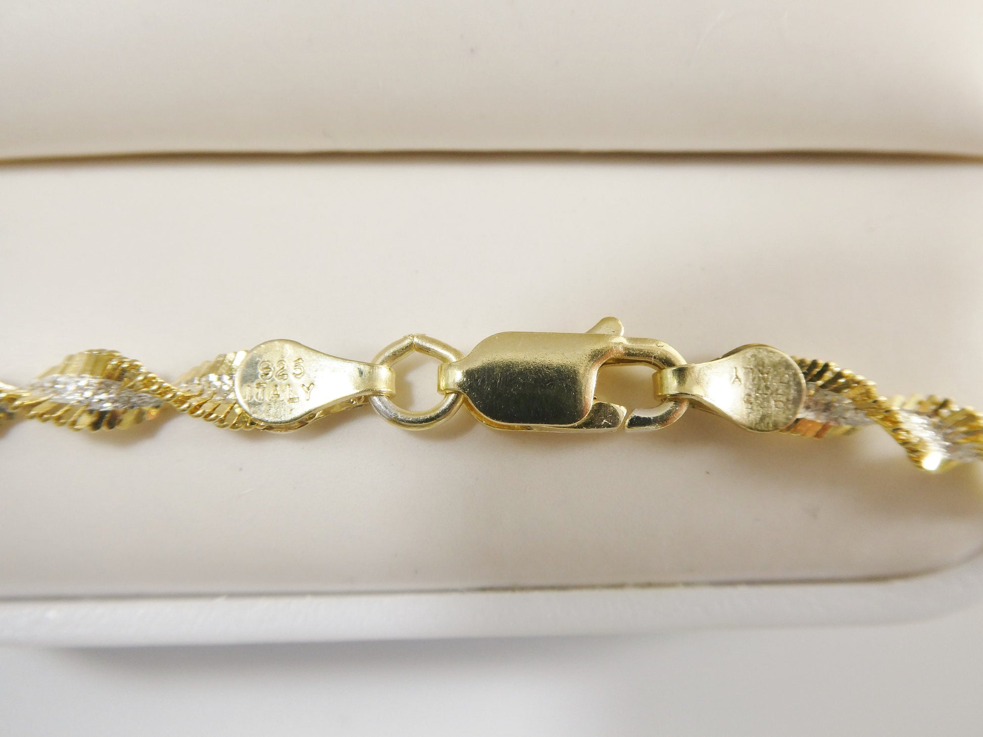 real 925 sterling silver twisted herringbone two tone chain14k yellow gold finish