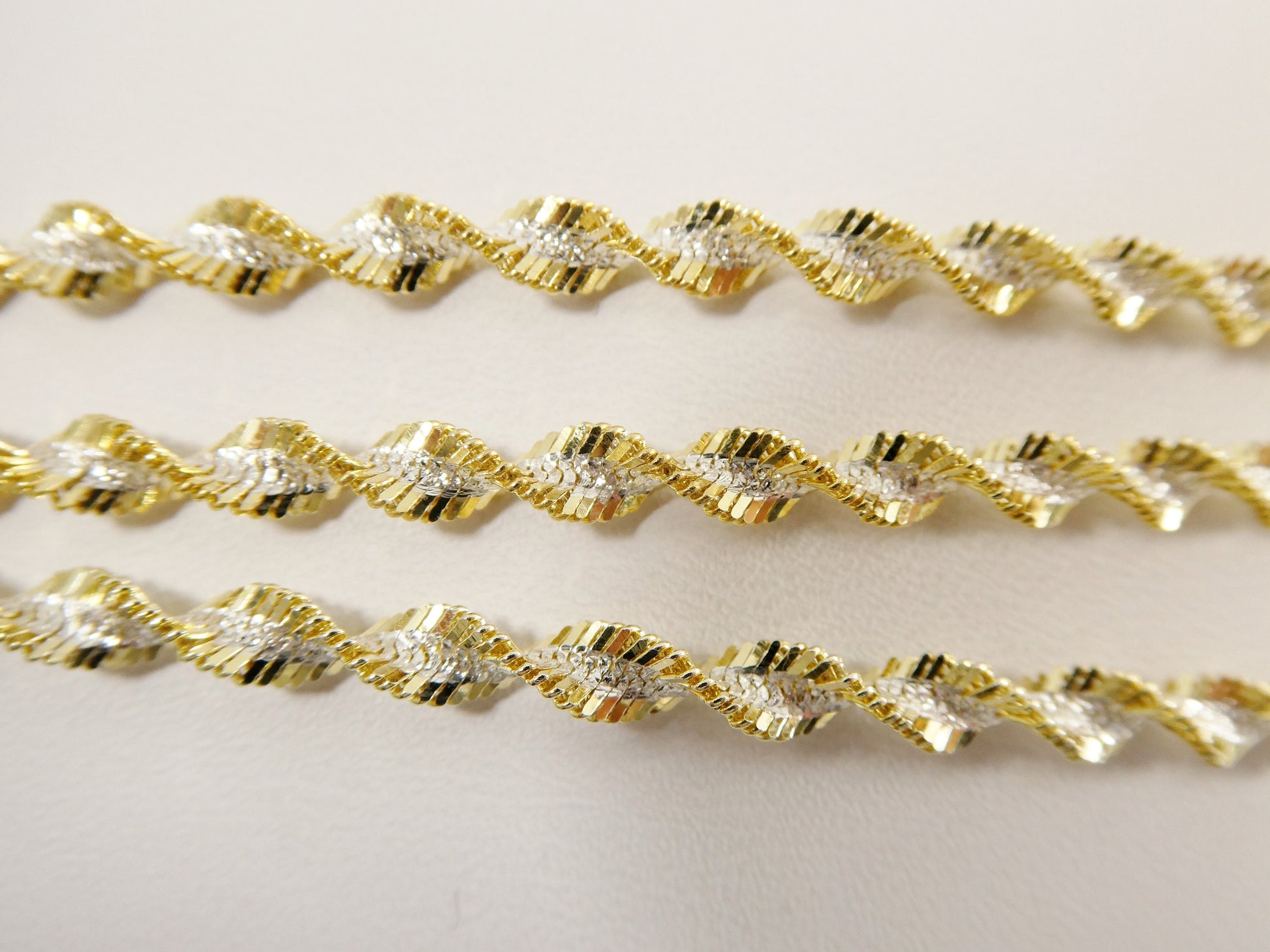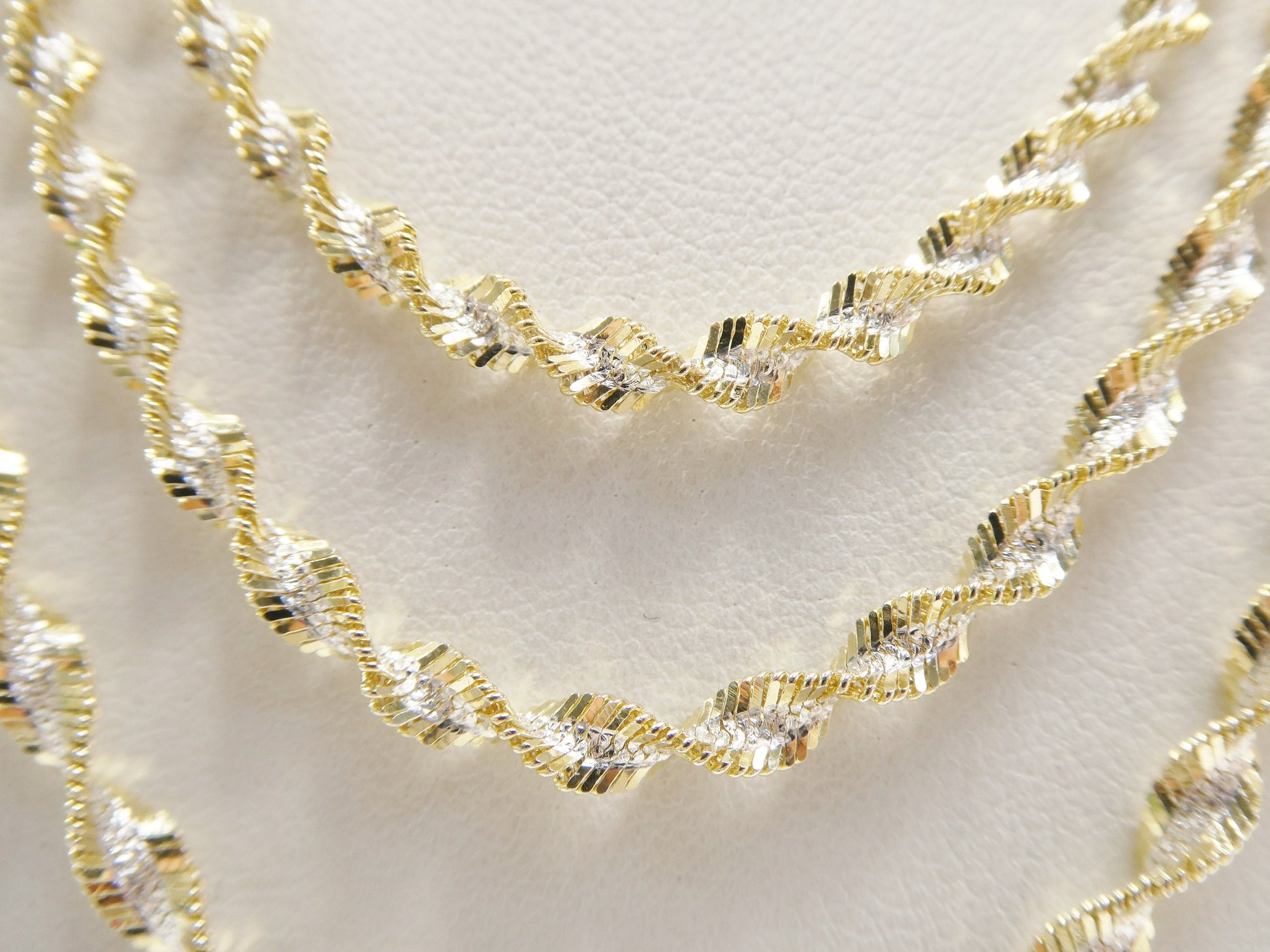 REAL 925 STERLING SILVER SPARKLY TWISTED HERRINGBONE CHAIN TWO TONE 14K YELLOW GOLD FINISH COME IN 16'18"20"22"24" HIGH QUALTY HIGH POLISH GREAT PRICE MADE IN ITALY LOBSTER LOCK CLASP LUXURY ATTRACTIVE LOOK
