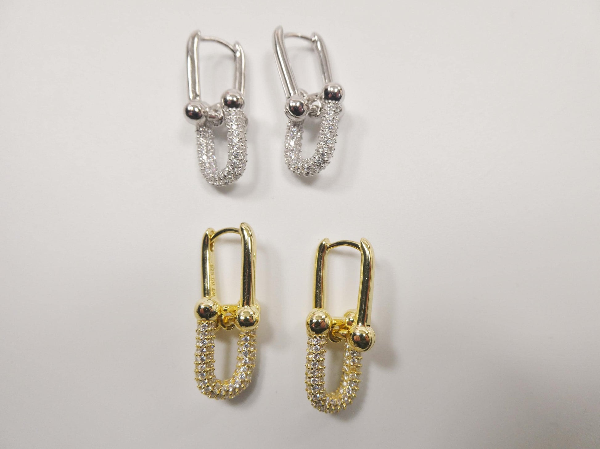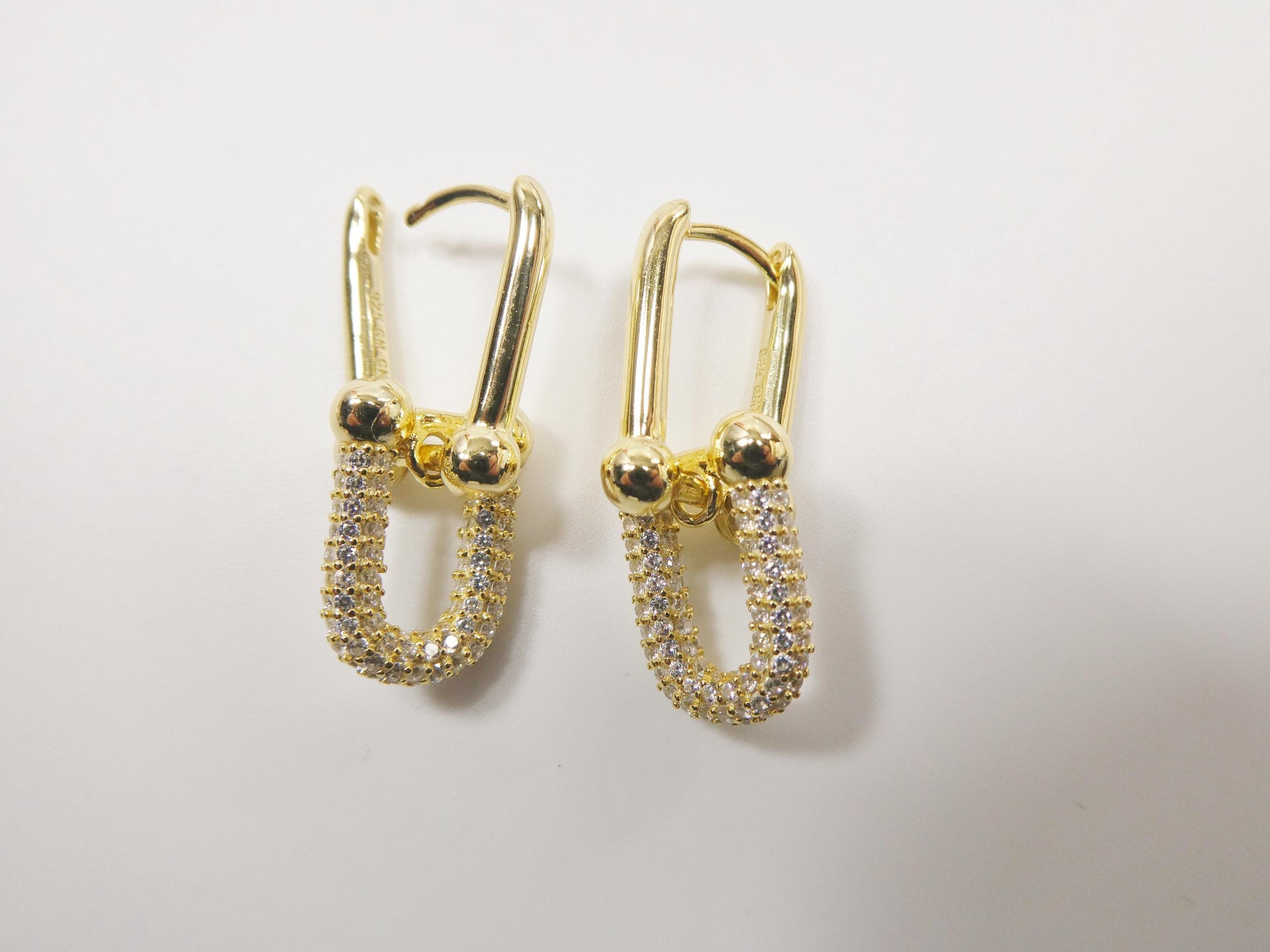 BRAND NEW NEW RELEASE YELLOW COLOR FINISH U-SHAPE PAPERCLIP EARRINGS REAL 925 STERLING SILVER EARRING SHINY MICRO FAVE STONE SETTING HIGH QUALITY HIGH POLISH GREAT GOLD COLOR FINISH LUXURY ATTREACTIVE LOOK COME IN NICE GIFT BOX MAKE IT GREAT GIFT FOR ANY OCCASION