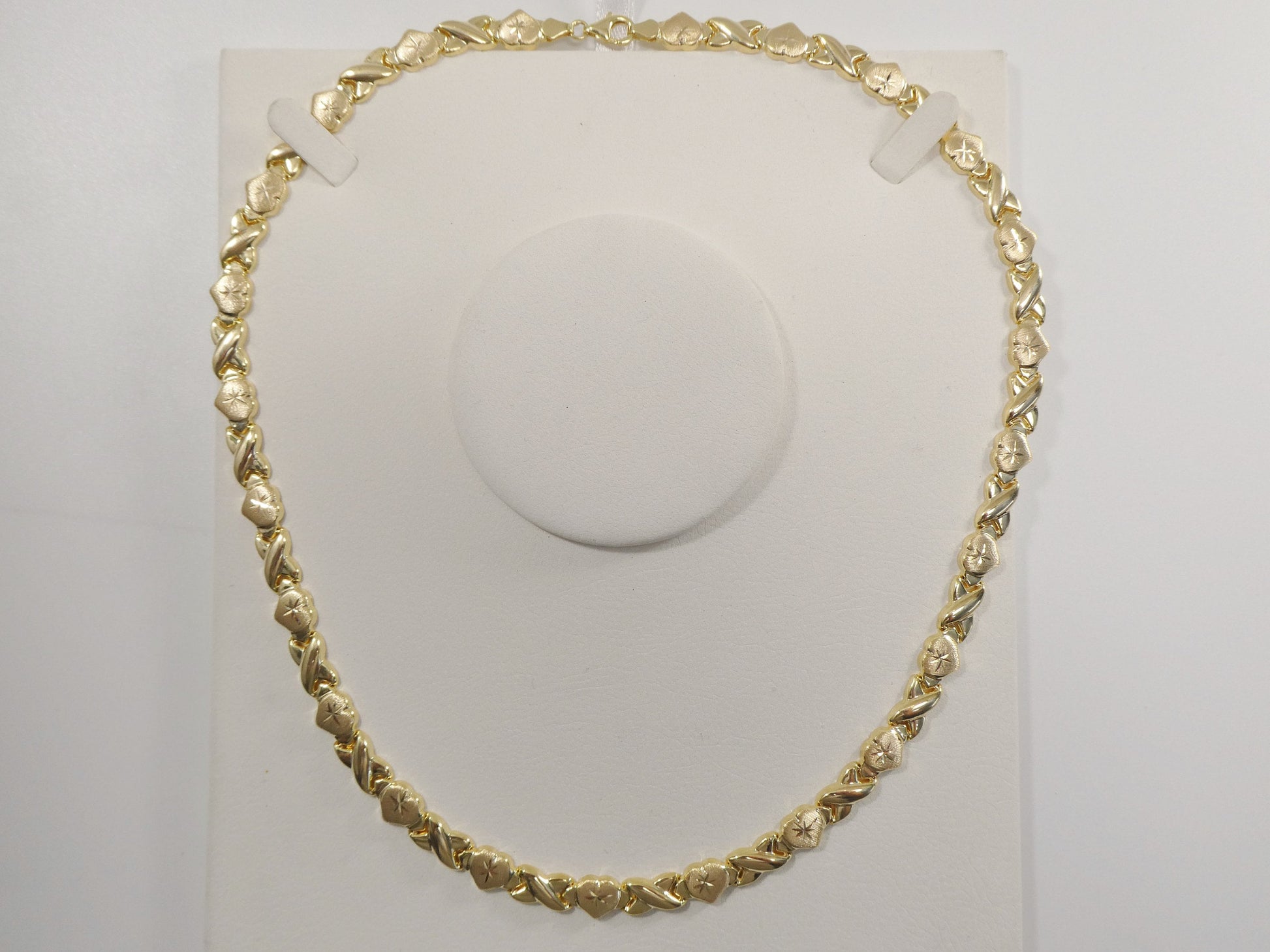 BRAND NEW NEW RELEASE REAL 925 STERLING SILVER XOXO HEART STAMPATO NECKLACE HUGS AND KISSES 14K YELLOW FINISH COME IN 20 INCH /22 / 24 INCH PERFECT GOLD COLOR FINISH SUPER HIGH POLISH LUXURY ATTRACTIVE LOOK LOBSTER CLASP LOCK COME IN NICE GIFT BOX MAKE IT PERFECT GIFT FOR VALENTINES DAY OR ANY OCCASION