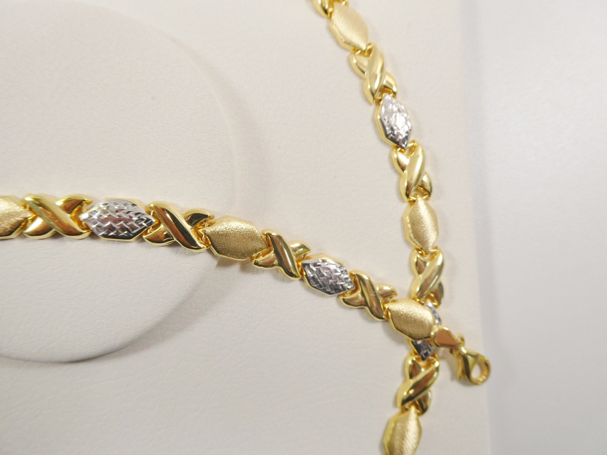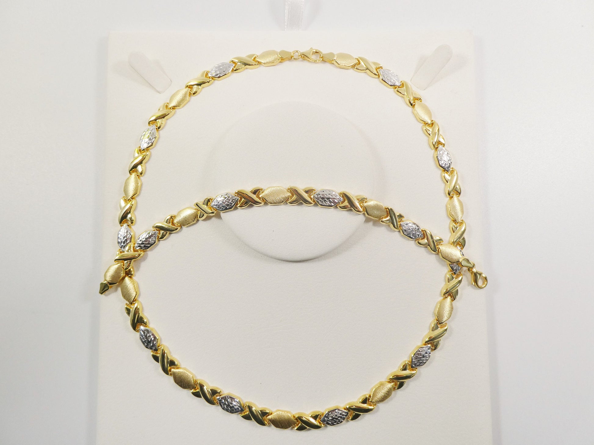 REAL 925 STERLING SILVER XOXO HUGS AND KISSES SET NECKLACE AND BRACELET 14K GOLD FINISH / TWO TONE SET/