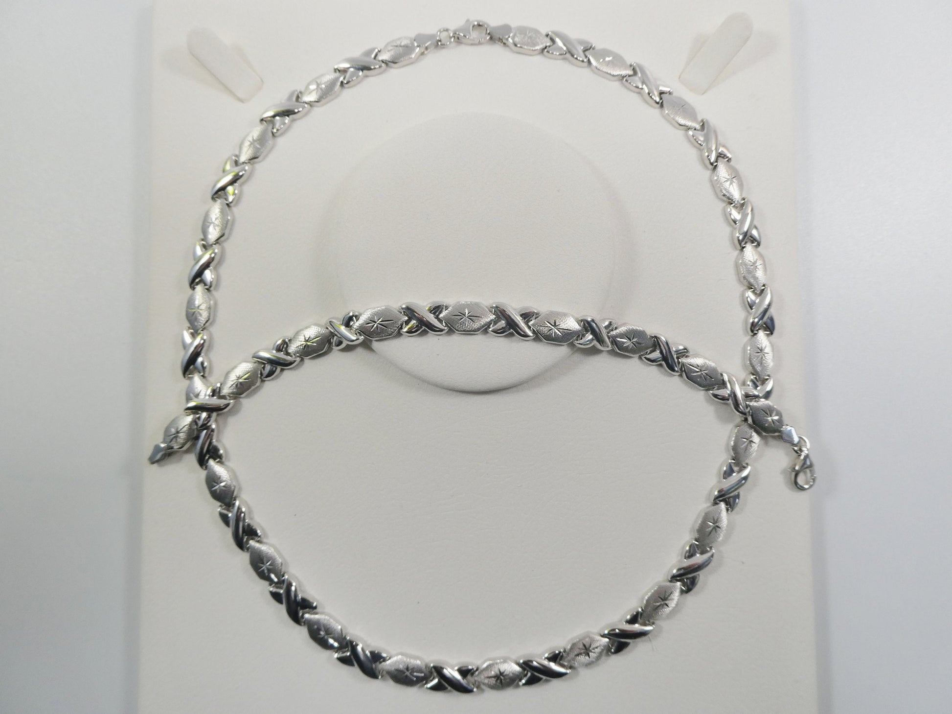 real 925 sterling silver xoxo hugs and kisses stampato set necklace and bracelet 14k gold color finish