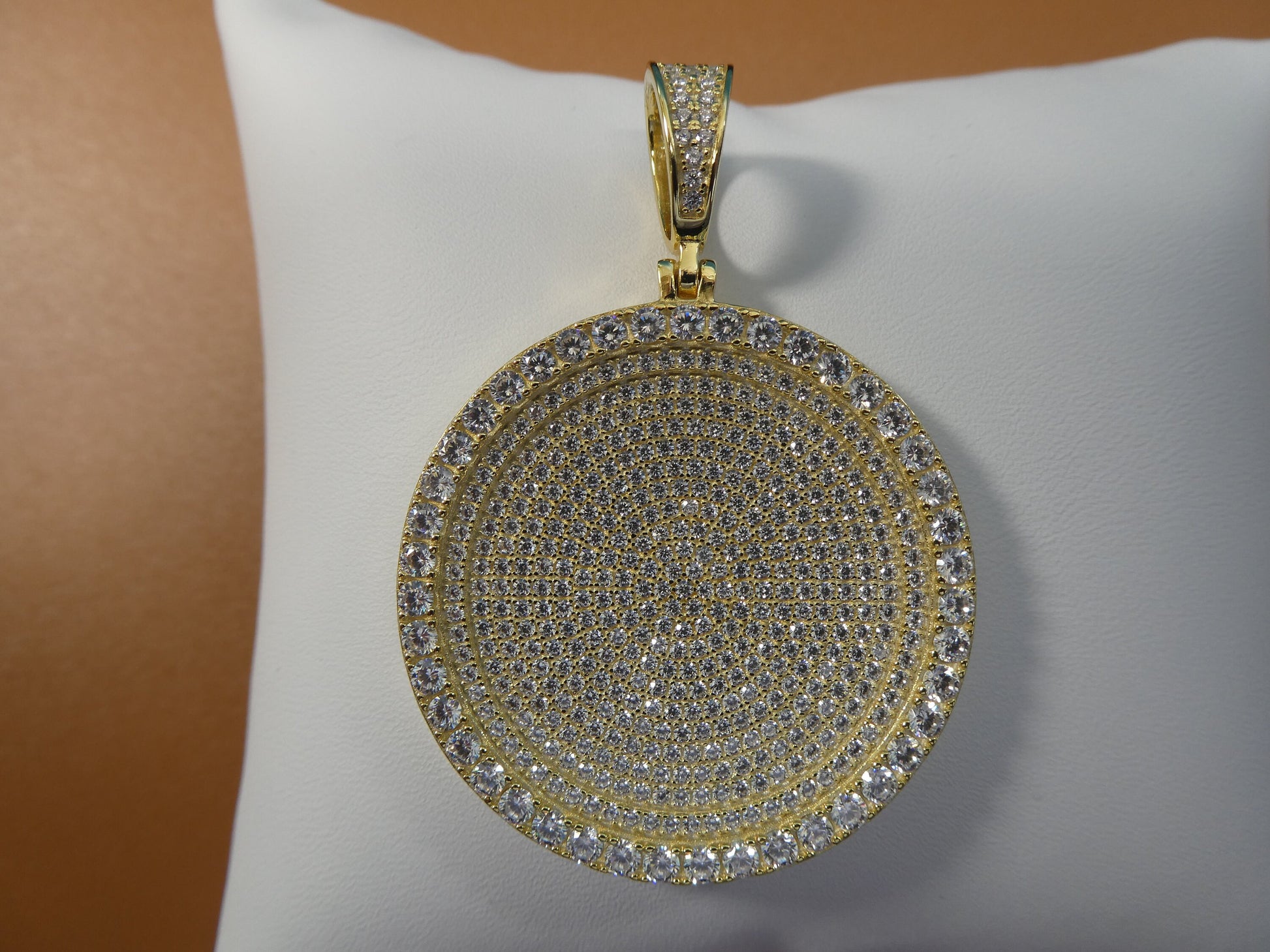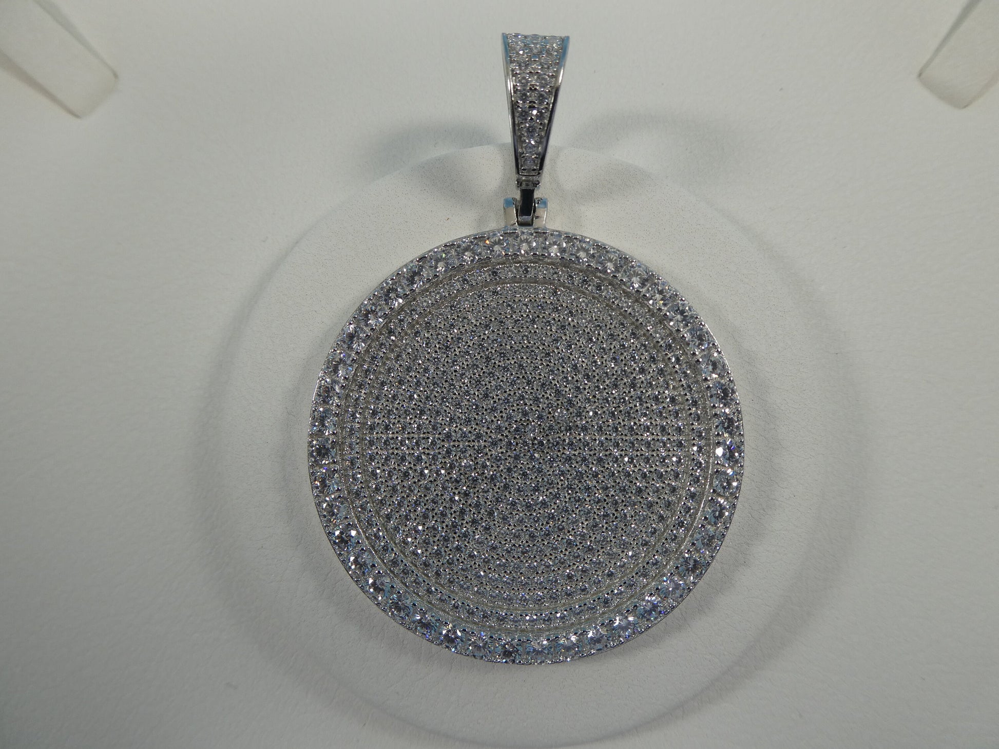 BRAND NEW REAL SOLID 925 STERLING SILVER HEAVE LARGE FULL ICE CIRCLE PENDENT PRONG SETTING HIGH POLISH AAA SHINY CUBIZ ZIRCONIA CZ LUXURY ATTRACTIVE LOOK FIT LARG CHAIN COME IN NICE GIFT BOX MAKE IT GREAT GIFT FOR ANY OCCASIN