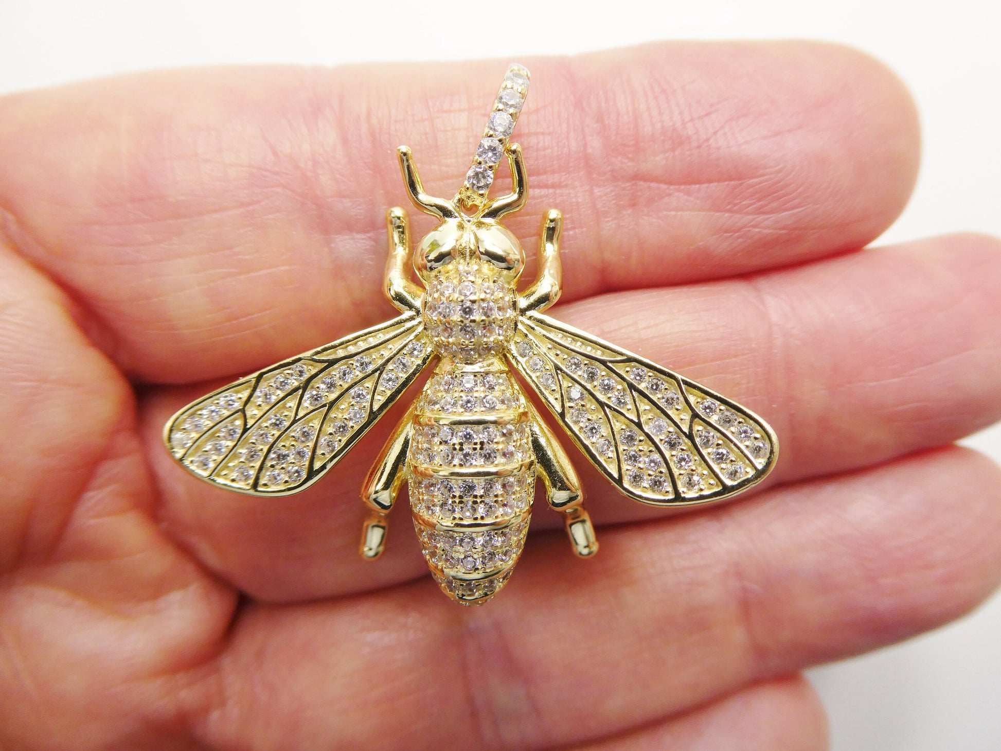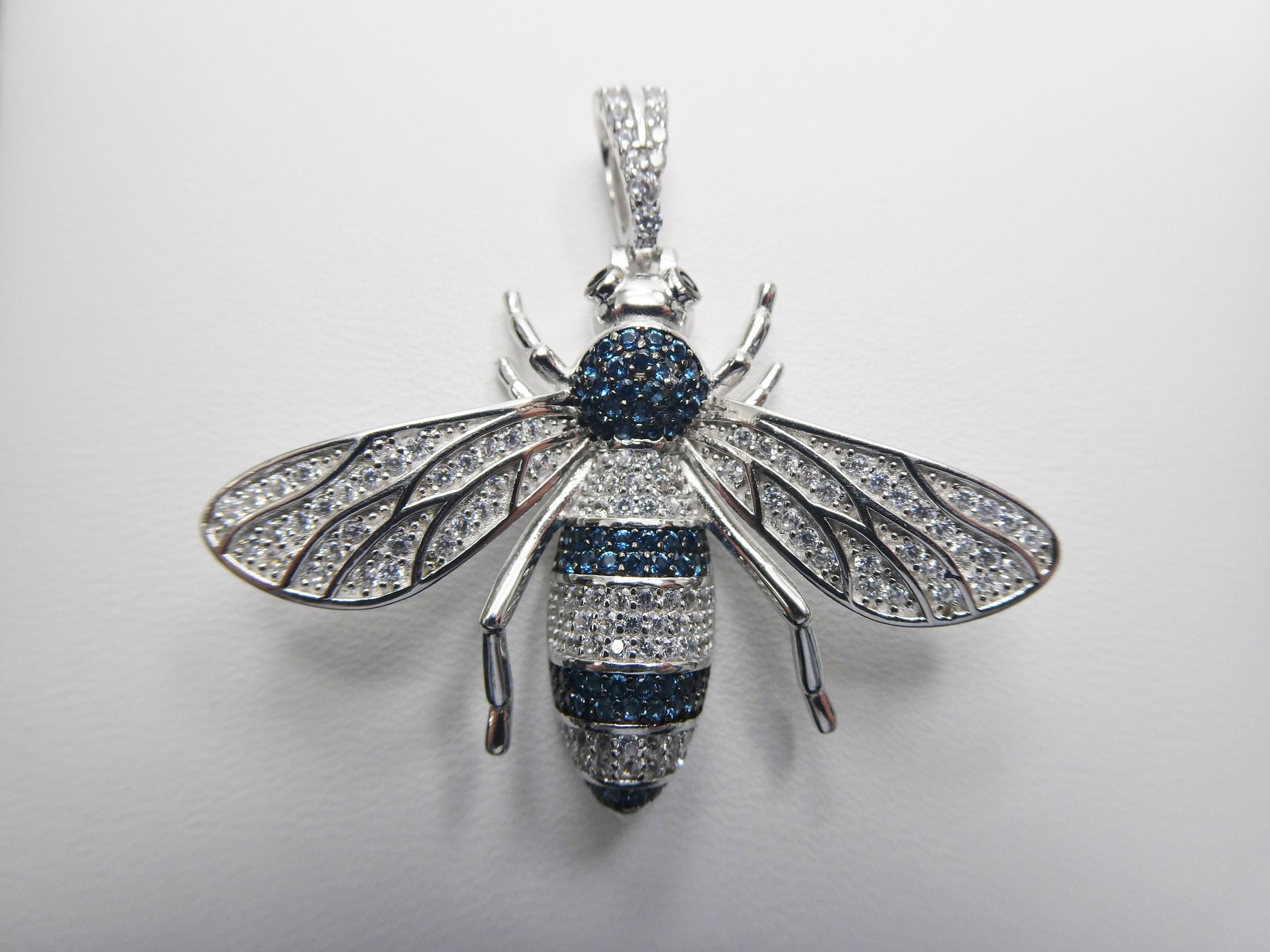 BRAND NEW REAL SOLID 925 STERLING SILVER HEAVE LARGE HONEY BEE PENDENT PRONG SETTING HIGH POLISH AAA SHINY CUBIZ ZIRCONIA CZ LUXURY ATTRACTIVE LOOK FIT LARG CHAIN COME IN NICE GIFT BOX MAKE IT GREAT GIFT FOR ANY OCCASIN