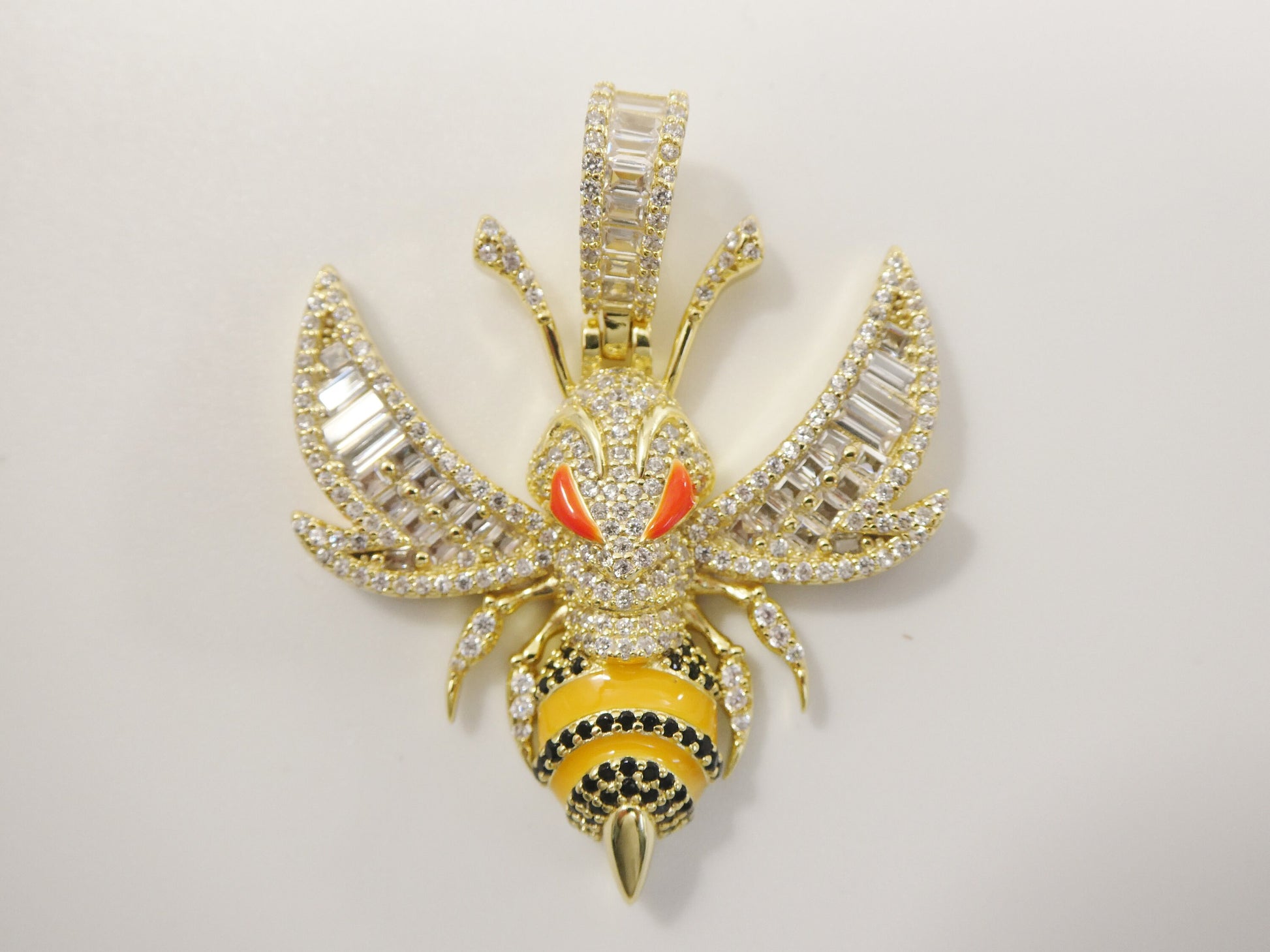 BRAND NEW REAL SOLID 925 STERLING SILVER LARGE HONEY BEE PENDENT BAGUETTE SETTING HIGH POLISH AAA SHINY CUBIZ ZIRCONIA CZ LUXURY ATTRACTIVE LOOK FIT LARG CHAIN COME IN NICE GIFT BOX MAKE IT GREAT GIFT FOR ANY OCCASIN