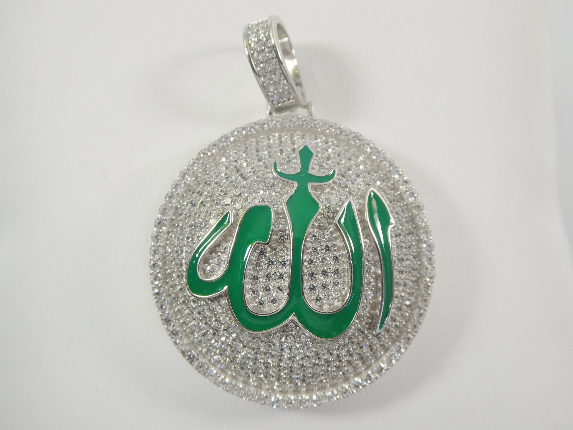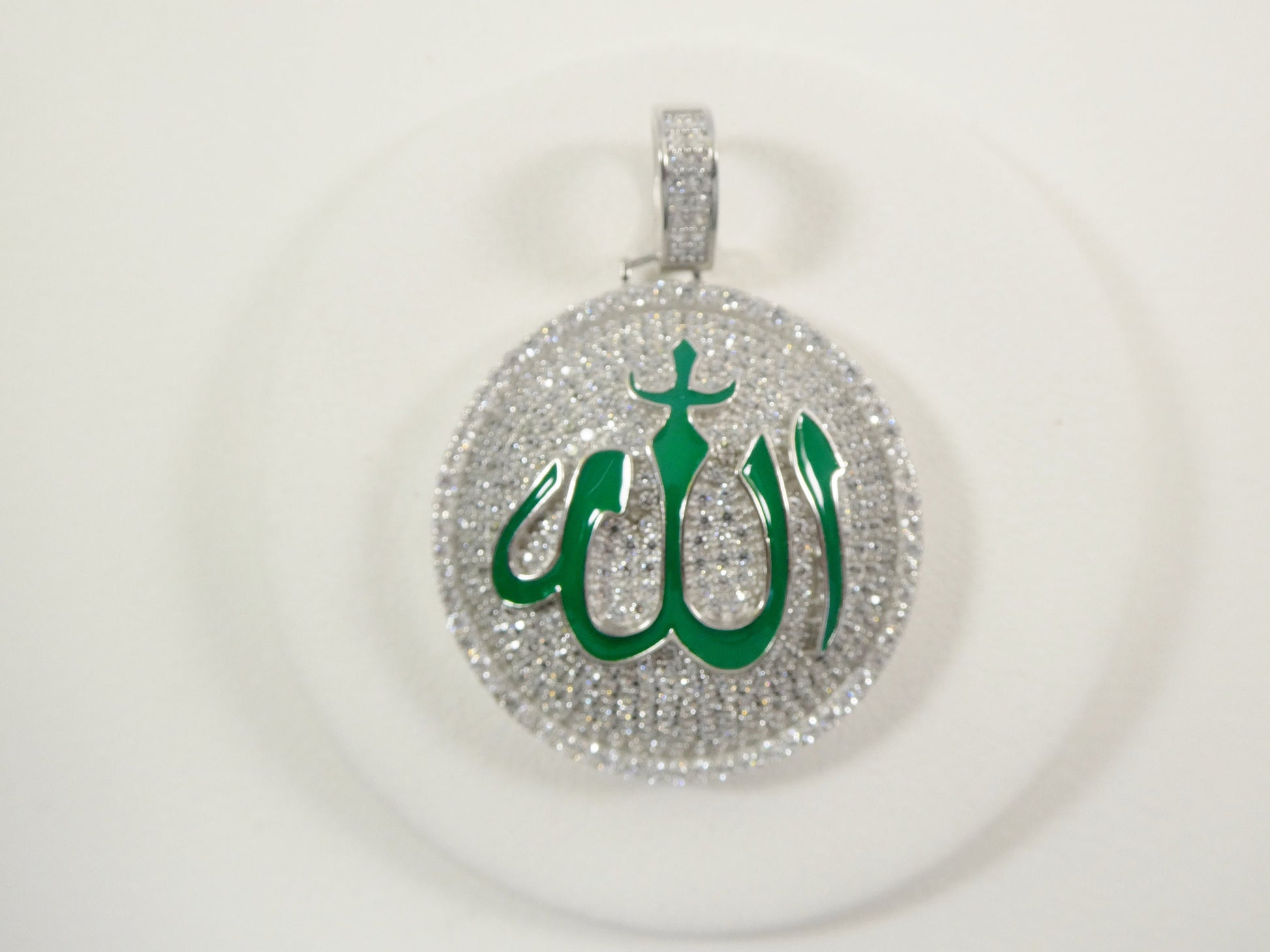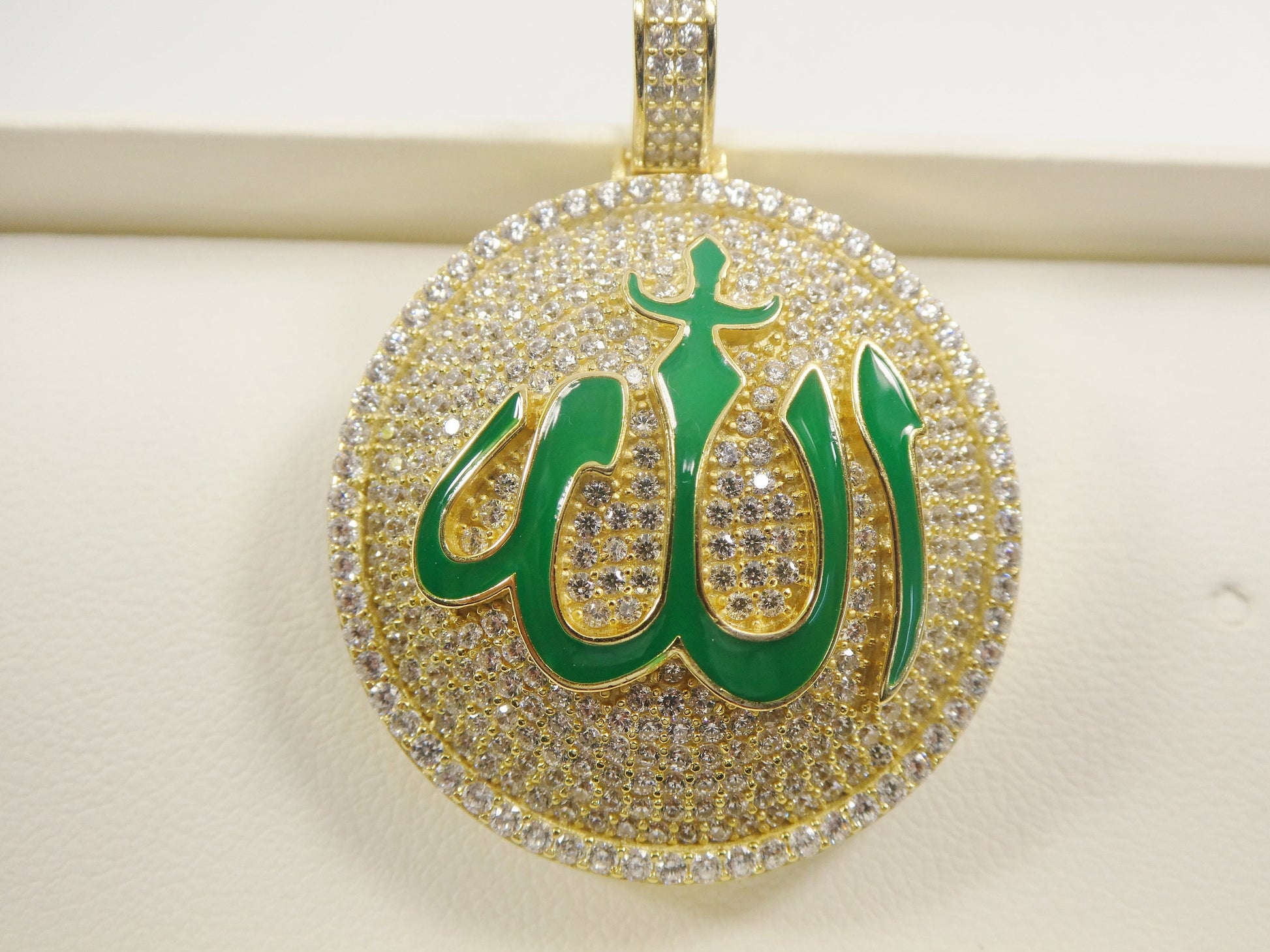 REAL 925 STERLING SILVR FULL ICE STONE MICRO FAVE SETTING ALLAH MUSLIM PENDENT HIGH QUALITY HIGH POLISH COME IN YELLOW GOLD AND WHITE GOLD COLOR PERFECT YELLOW GOLD COLOR FINISH COME IN NICE GIFT BOX