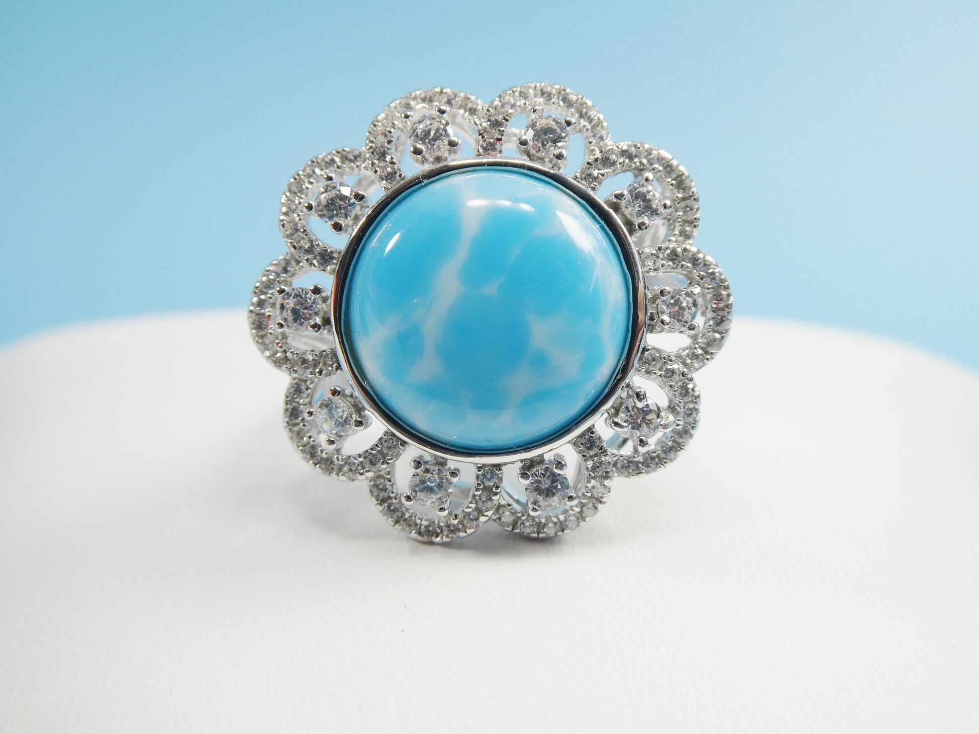 BRAND NEW LADIES TURQUOIS RING REAL 925 STERLING SILVER GREAT FINISH HIGH POLISH RHODIOM PLATED LUXURY ATTRACTIVE LOOK AAA SHINY CUBIZ ZIRCONIA STONE AROUND COME IN NICE GIFT BOX