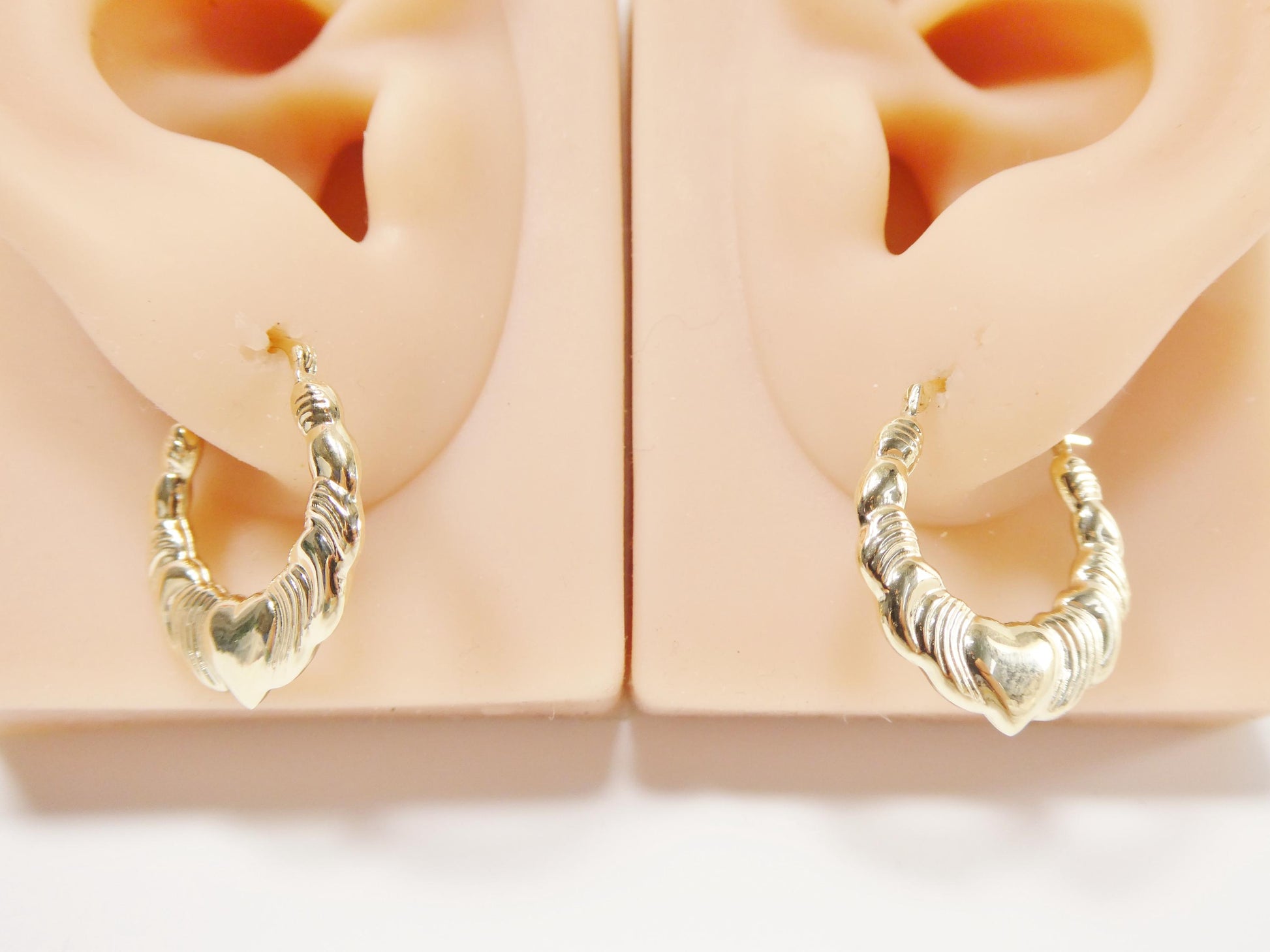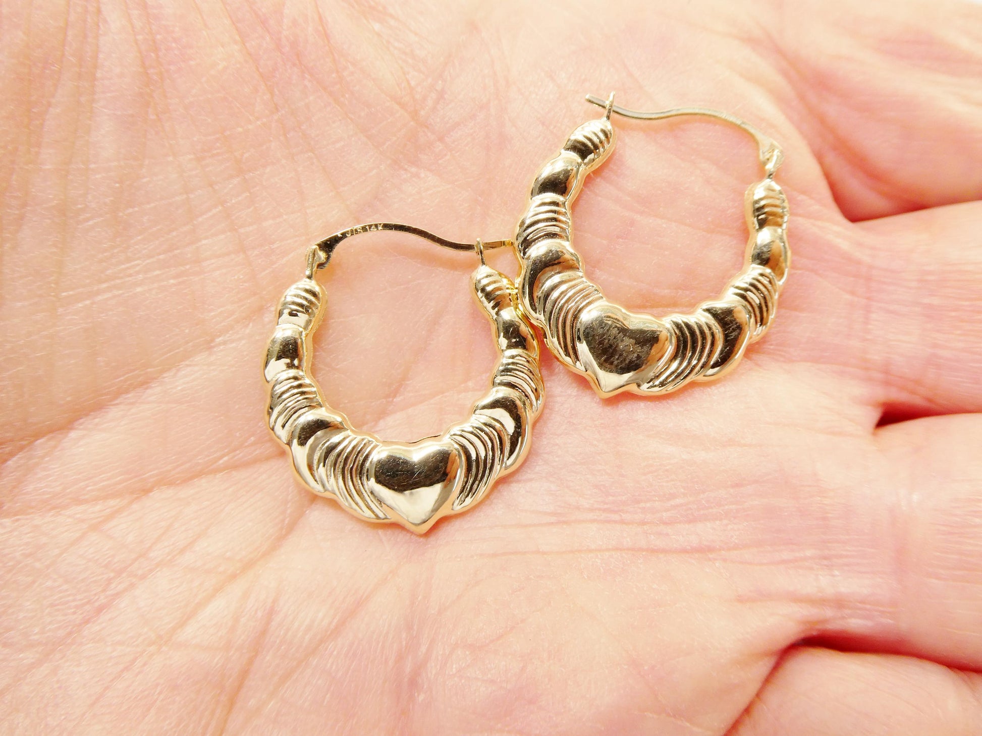 women 10k real solid yellow gold heart hoop earrings