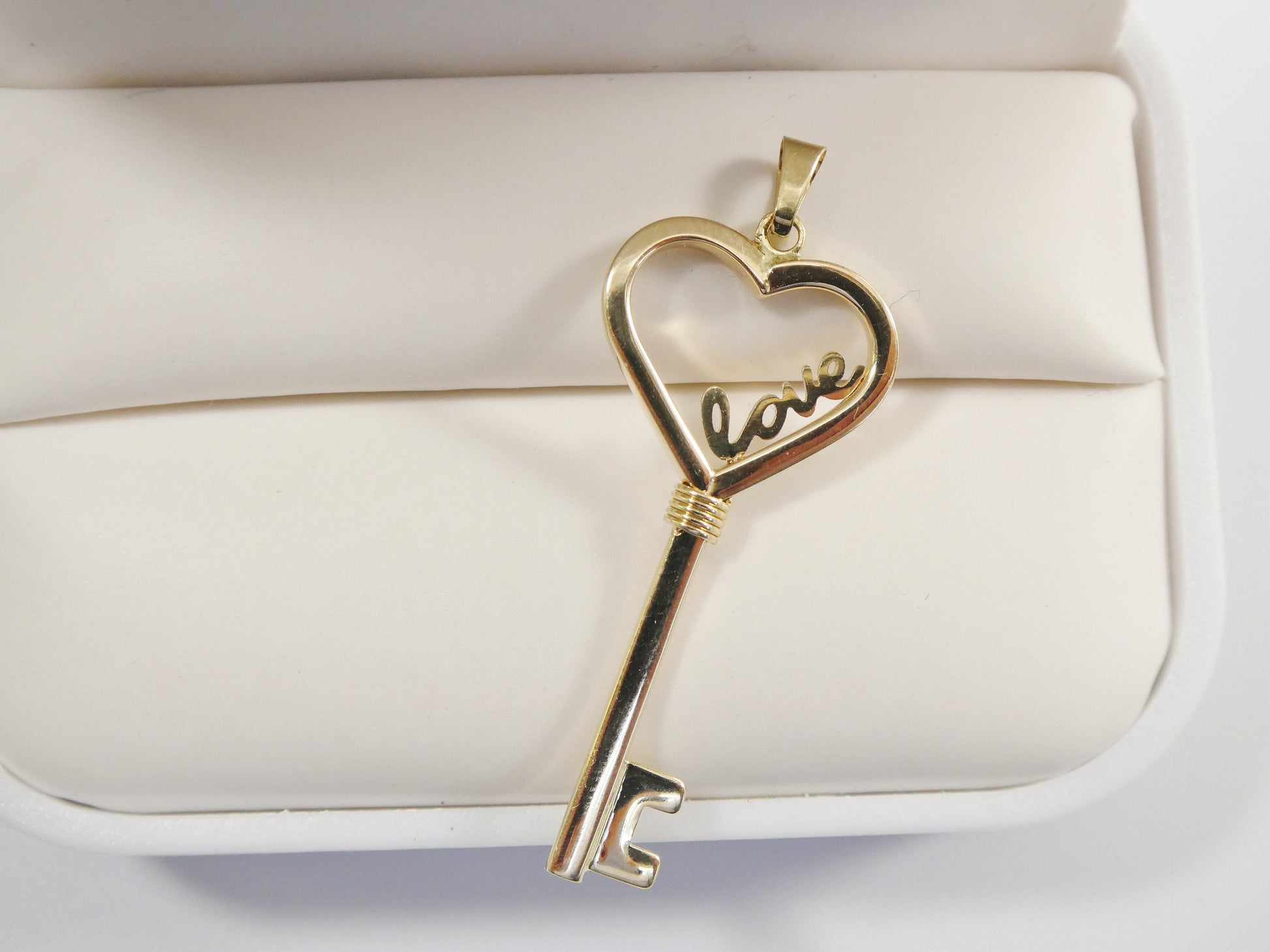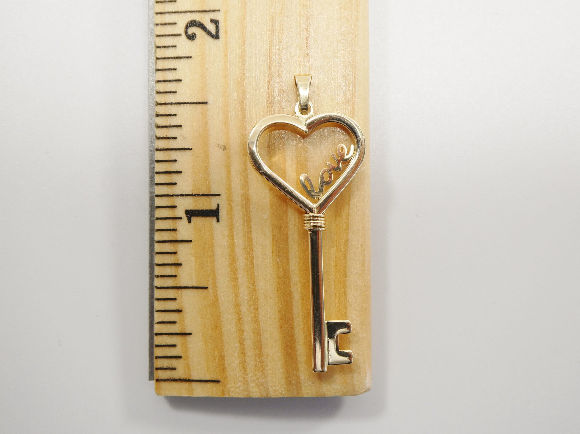 14K SOLID REAL YELLOW GOLD WOMEN'S LOVE KEY CHARM HIGH QUALITY SUPPER HIGH POLISH